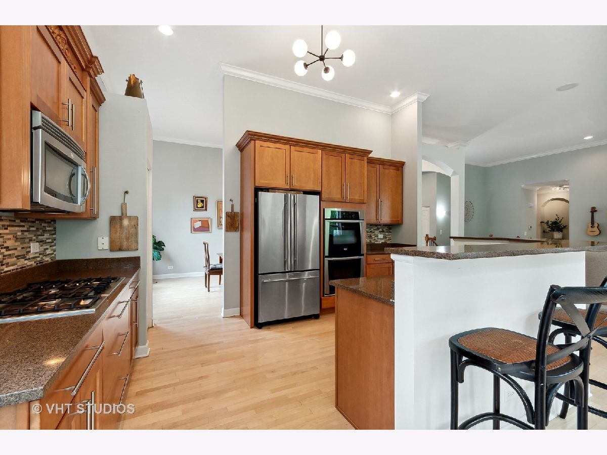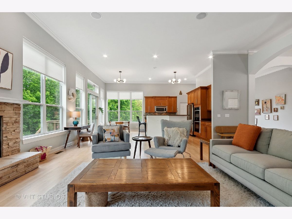 An absolutely gorgeous ranch style home in Cheswick Place with a fully finished walkout basement situated on a cul-de-sac location boasting a large fenced-in backyard with mature trees! The interior of this lovely home will surely not disappoint... An expansive and open main level with 12ft ceilings, decorative archways, newly refinished hardwood floors with a modern look, crown molding and oversized windows allowing plenty of natural light with custom window treatments. Terrific entertaining space with the kitchen open to the living area and features custom cabinetry, granite counters, stainless steel appliances, a double oven, a breakfast bar and an eating area with access onto back deck. Stone fireplace in the living room. Separate dining room and big enough to accommodate large gatherings. Spacious master suite with an arched entryway, a tray ceiling, a wall of windows overlooking the serene backyard, a walk-in closet, and a master bathroom with a double sink, separate shower and a soaking tub. Generously sized bedrooms with 2 more full bathrooms. 4th bedroom in basement is currently being used as an office, but makes for a perfect spare bedroom or in-law arrangement. Main floor laundry room is near bedrooms with cabinet/counter space and a sink. Fantastic deep pour walkout basement has a huge rec and bar area and access onto blue stone patio out back. Ample storage room in basement. 3 car garage with epoxy flooring. New furnace in 2021! Walking distance to neighborhood park/playground. Minutes from Northwestern Hospital Huntley, and Randall Rd corridor with loads of grocery stores, shopping and restaurants. Short drive to I-90 or one of the Metra train stations in Crystal Lake. Highly rated schools!