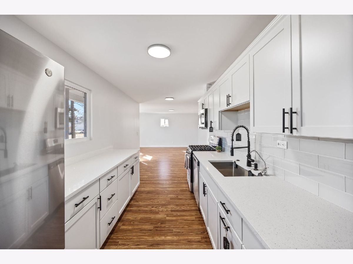 Welcome to this beautifully remodeled 3-bedroom, 1-bathroom ranch home, offering a perfect blend of modern updates and cozy living. Step inside and be impressed by the stunning new flooring, fresh paint, and abundant natural light streaming through the brand-new windows. The spacious kitchen is a true highlight, featuring brand-new white cabinetry, sleek granite countertops, a stylish subway tile backsplash, and a large stainless steel undermount sink. It's equipped with stainless steel appliances, a garbage disposal, a water filtration system, and a built-in utility sink for added convenience. With plenty of counter space, this kitchen is perfect for preparing meals and entertaining guests. The fully remodeled bathroom offers a fresh, modern design with all the upgrades you could ask for. New washer and dryer too! Enjoy the added convenience of a two-and-a-half car garage, along with a large freshly sealed driveway for plenty of parking. Located in a prime area close to shopping, dining, and expressway access, this home offers both comfort and convenience. Don't miss your chance to own this stunning home-schedule a tour today!