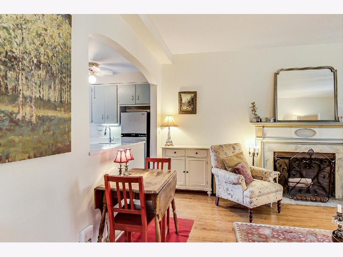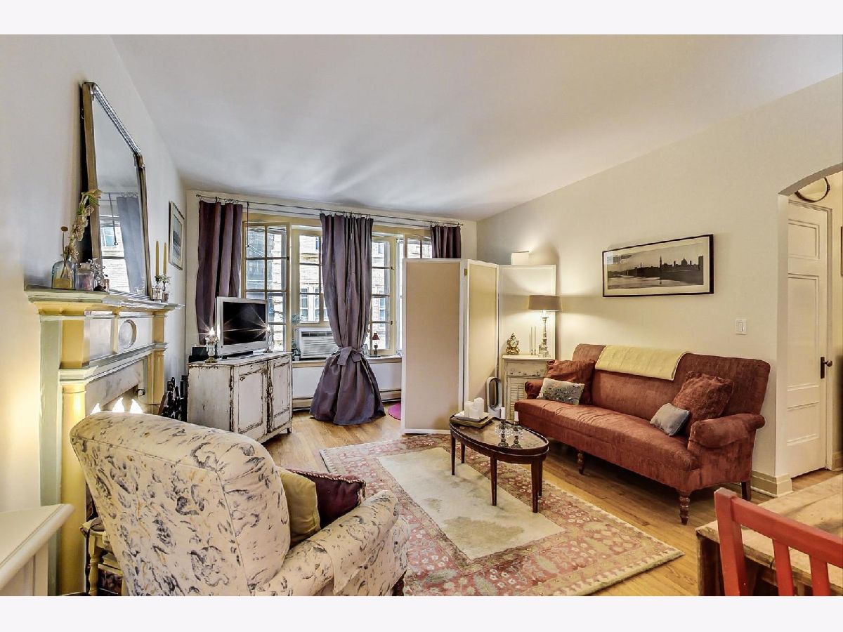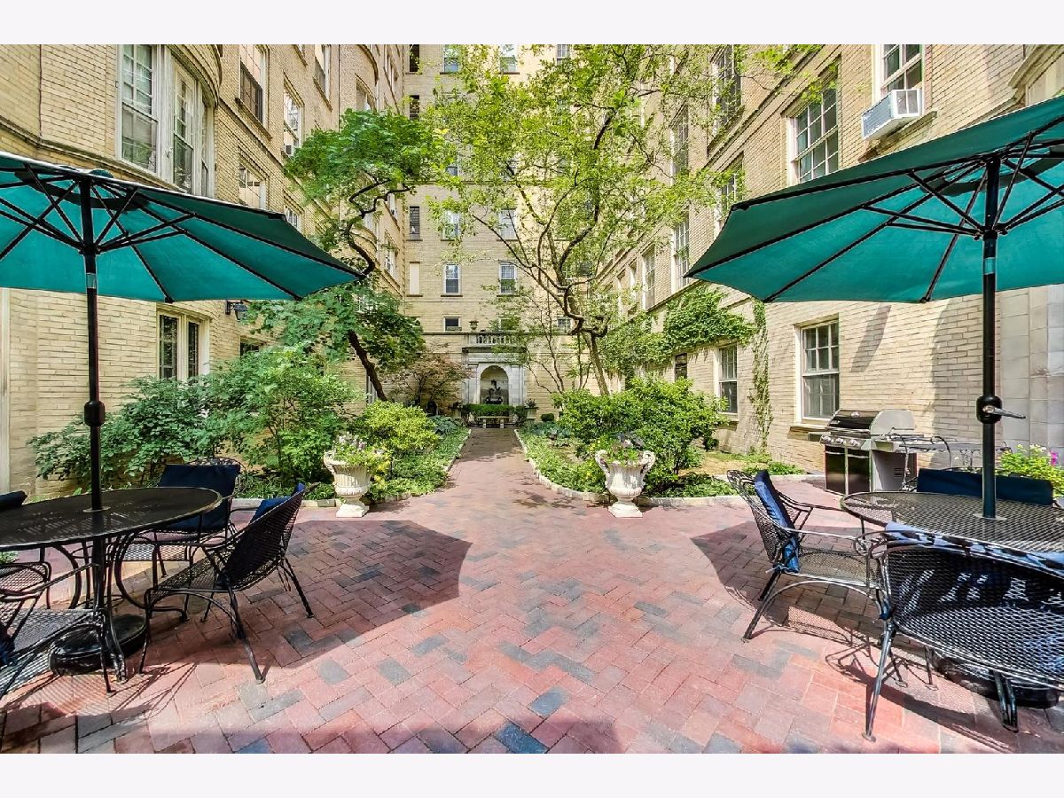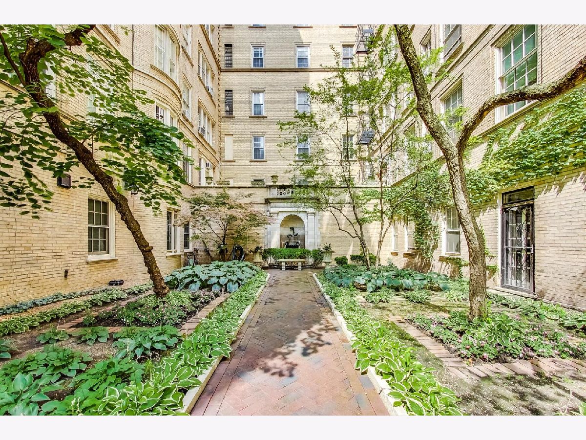 Transport to Paris while in Chicago....this beautiful vintage courtyard building is just steps from the lake and all that the Gold Coast has to offer. Three sets of original bay windows open onto a tranquil courtyard with a fountain and manicured landscaping. This 1BR/1BA unit, with 9-foot ceilings, has an abundance of natural light with at least one window in every room (bathroom included) with southeast exposures. Move-in ready with a sophisticated neutral palette. The living room features two sets of original bay windows and a wood-burning fireplace with a beautiful wood and marble mantle. The kitchen wall has been opened up to the dining area and living room. Large bedroom includes the third set of bay windows and offers a nook for reading or a desk. Updates to the kitchen include quartz countertops, a newer sink, and fixtures. The bathroom has an updated vanity with granite countertop and fixtures. Plantation shutters added to some windows as well as the full wall of closets in the bedroom. Large walk-in closet in the entry. This premiere Gold Coast building is quiet, impeccably maintained, and has low monthly assessments. Schedule your private tour today!