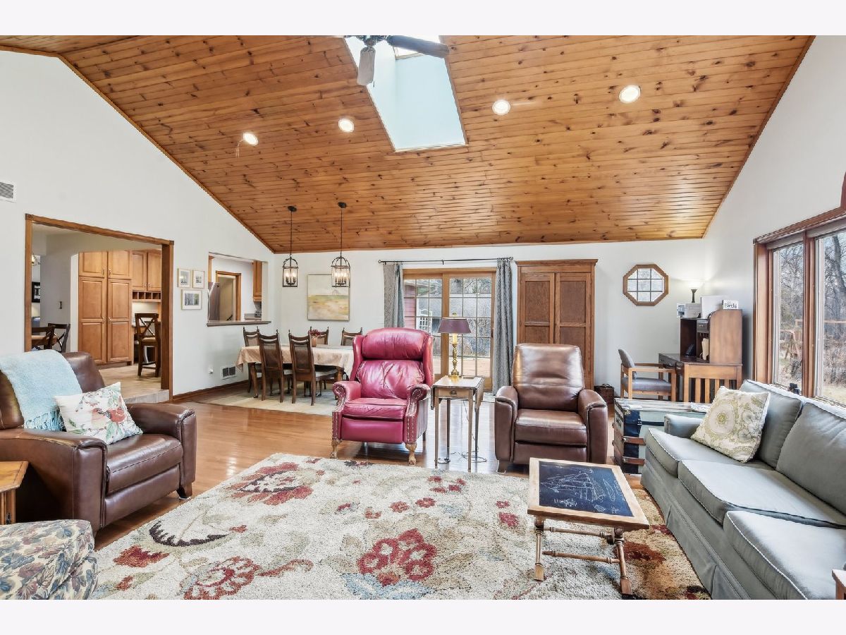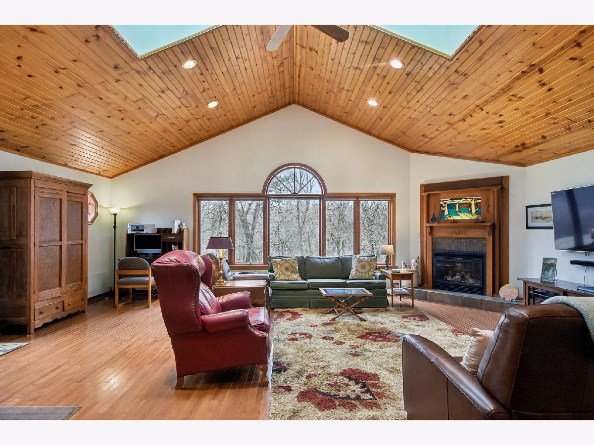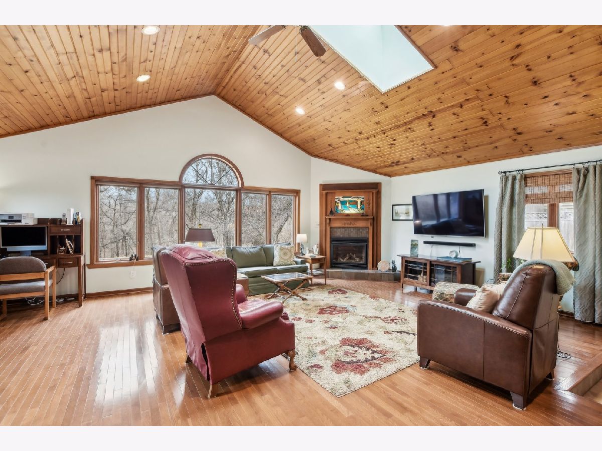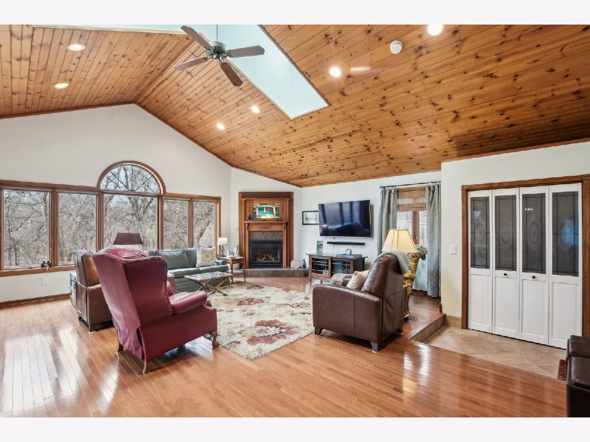 ***Multiple Offers Received*** Welcome to this exquisite 4-bedroom, 2.5-bathroom home, featuring a finished basement and a wealth of upgrades and thoughtful details throughout. Located in a highly desirable neighborhood with no HOA fees and an optional swimming pool membership, this property combines modern conveniences with natural beauty. As you step into the expansive family room, you'll be immediately captivated by the soaring vaulted ceilings with skylights, a cozy gas fireplace, and gleaming hardwood floors. The large wall of windows floods the room with natural light and offers stunning views of the wooded backyard, complete with a tranquil creek. From here, step through the doors onto the spacious deck - perfect for enjoying your serene surroundings or entertaining guests. The recently remodeled eat-in kitchen is a chef's dream, featuring custom maple cabinets, solid surface countertops, a breakfast bar, and newer stainless steel appliances (2018-2021). This beautifully appointed space is ideal for cooking and casual dining. The charming living room adds to the home's appeal, offering hardwood floors, a bow window with a cozy window seat, and a brick fireplace framed by custom built-in bookcases. The second floor is home to the large master bedroom with beautiful hardwood floors and dormer windows, along with a second bedroom that also has dormer windows. The updated hall bathroom features a double sink vanity, a whirlpool tub, and a separate shower, all with picturesque views of the wooded backyard. Two additional bedrooms are located on the main floor, providing ample space for family, guests, or a home office. The finished basement offers even more versatile living space with a second family room with a brick fireplace, a recreation room, a second kitchen area, and a workshop for your hobbies and projects. Step outside to the professionally landscaped backyard, where you'll find a lush collection of perennials, fruit trees, woods and the peaceful creek. The large deck offers beautiful views and a perfect spot for outdoor relaxation. This home is packed with recent updates for peace of mind: a new furnace and A/C in 2023, a new roof, skylights, and gutters in 2021, and a new circuit breaker panel with a whole-house surge protector in 2008. The home is ideally located near a natural state park and walking and bicycling trails, making it a true nature lover's paradise. Don't miss the opportunity to make this beautiful, move-in-ready property your new home!