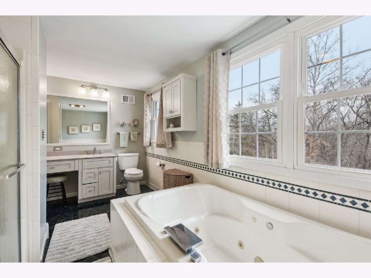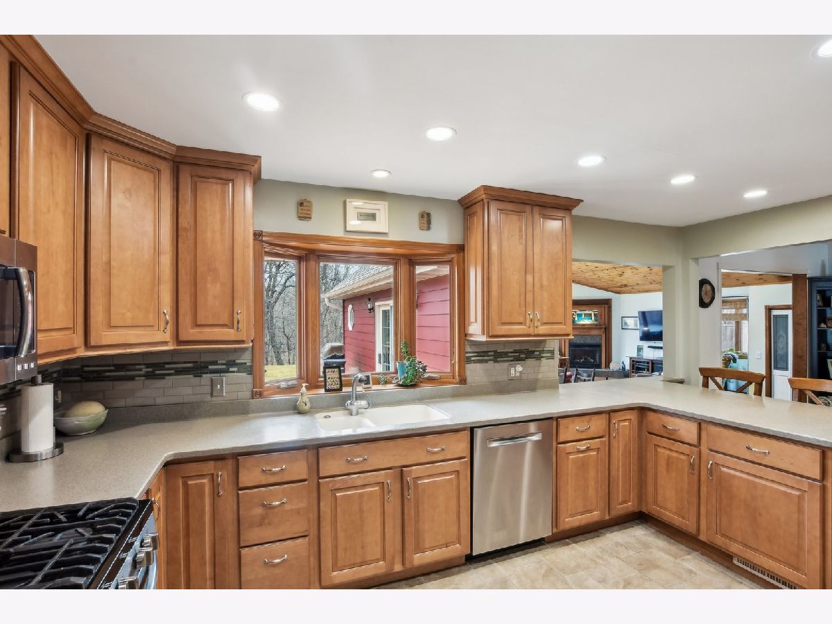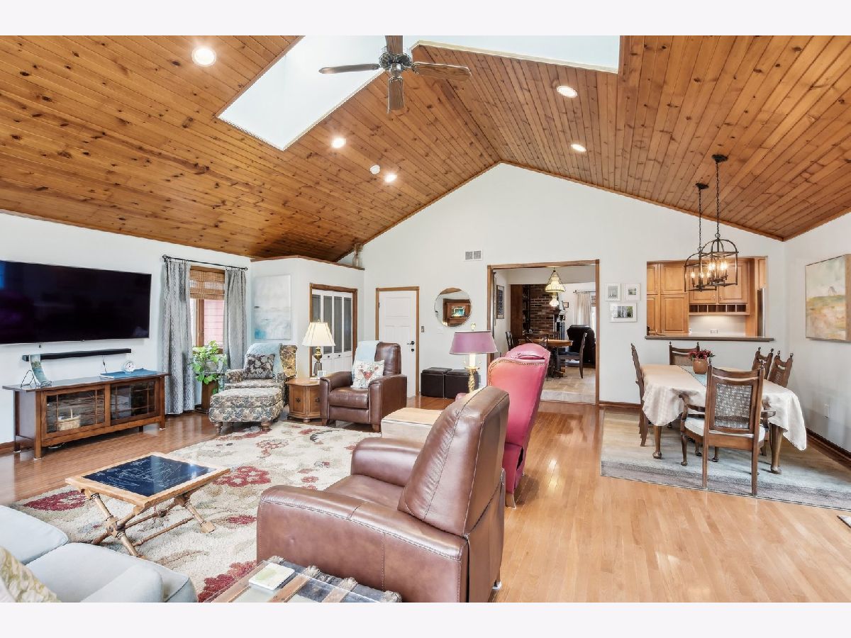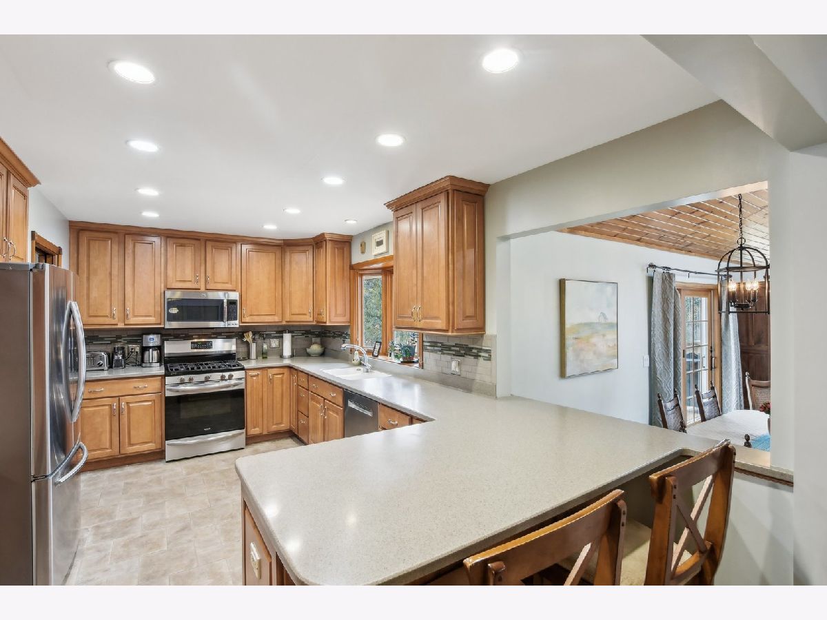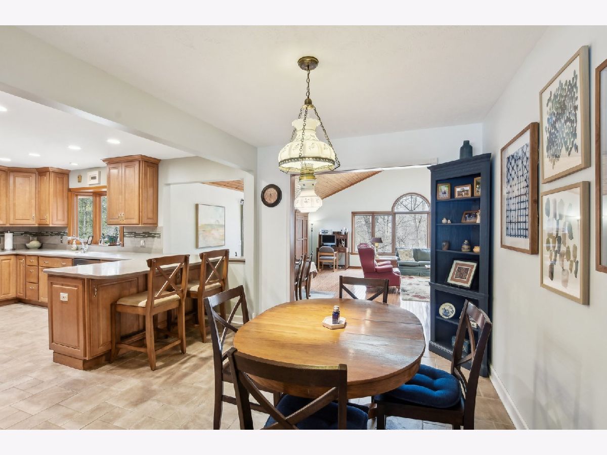***Multiple Offers Received*** Welcome to this exquisite 4-bedroom, 2.5-bathroom home, featuring a finished basement and a wealth of upgrades and thoughtful details throughout. Located in a highly desirable neighborhood with no HOA fees and an optional swimming pool membership, this property combines modern conveniences with natural beauty. As you step into the expansive family room, you'll be immediately captivated by the soaring vaulted ceilings with skylights, a cozy gas fireplace, and gleaming hardwood floors. The large wall of windows floods the room with natural light and offers stunning views of the wooded backyard, complete with a tranquil creek. From here, step through the doors onto the spacious deck - perfect for enjoying your serene surroundings or entertaining guests. The recently remodeled eat-in kitchen is a chef's dream, featuring custom maple cabinets, solid surface countertops, a breakfast bar, and newer stainless steel appliances (2018-2021). This beautifully appointed space is ideal for cooking and casual dining. The charming living room adds to the home's appeal, offering hardwood floors, a bow window with a cozy window seat, and a brick fireplace framed by custom built-in bookcases. The second floor is home to the large master bedroom with beautiful hardwood floors and dormer windows, along with a second bedroom that also has dormer windows. The updated hall bathroom features a double sink vanity, a whirlpool tub, and a separate shower, all with picturesque views of the wooded backyard. Two additional bedrooms are located on the main floor, providing ample space for family, guests, or a home office. The finished basement offers even more versatile living space with a second family room with a brick fireplace, a recreation room, a second kitchen area, and a workshop for your hobbies and projects. Step outside to the professionally landscaped backyard, where you'll find a lush collection of perennials, fruit trees, woods and the peaceful creek. The large deck offers beautiful views and a perfect spot for outdoor relaxation. This home is packed with recent updates for peace of mind: a new furnace and A/C in 2023, a new roof, skylights, and gutters in 2021, and a new circuit breaker panel with a whole-house surge protector in 2008. The home is ideally located near a natural state park and walking and bicycling trails, making it a true nature lover's paradise. Don't miss the opportunity to make this beautiful, move-in-ready property your new home!