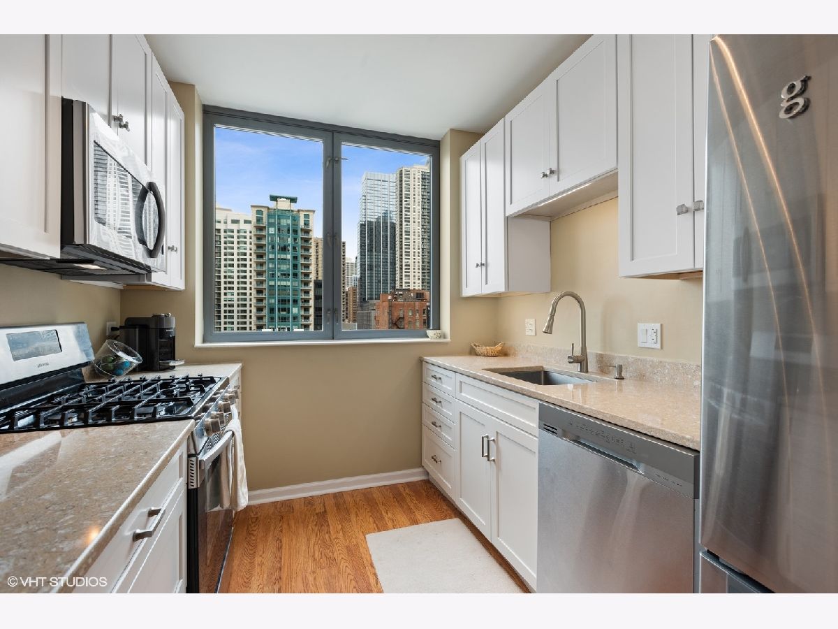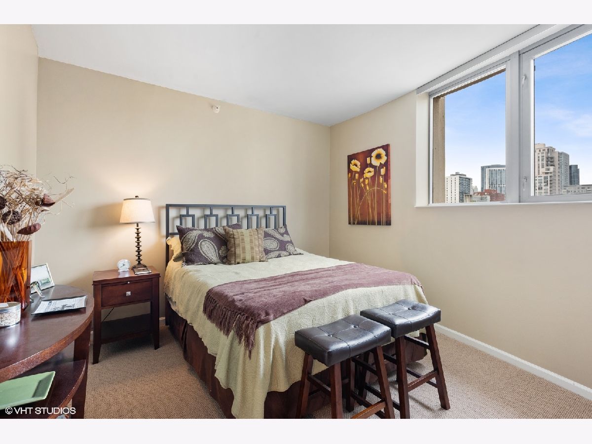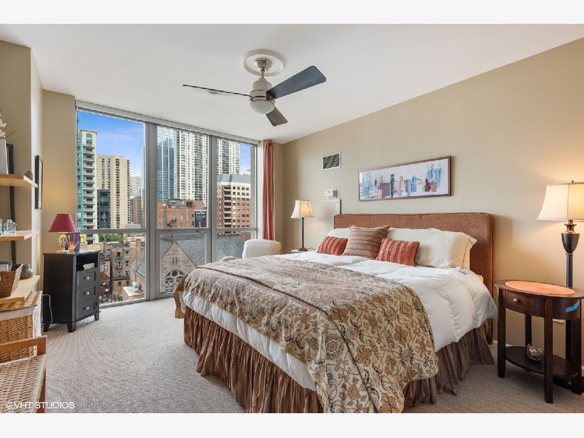 Live in the center of it all in this gorgeous, 2 bed 2 bath updated condo in Chicago's River North neighborhood. This CORNER UNIT sits on the northwest side of the building, offering spectacular views of the city and sunsets through its grand floor to ceiling windows. Recently updated white kitchen cabinets, stainless steel appliances, and stone countertops adorn the open kitchen - the perfect spot to cook a meal for yourself, or your guests. The split floor plan features hardwood floors in the living areas, and comfortable carpet in the bedrooms. Relax outside on your private, outdoor balcony space. Building includes 24 hr doorman, exercise room, and a party room. Schedule your showing today!!