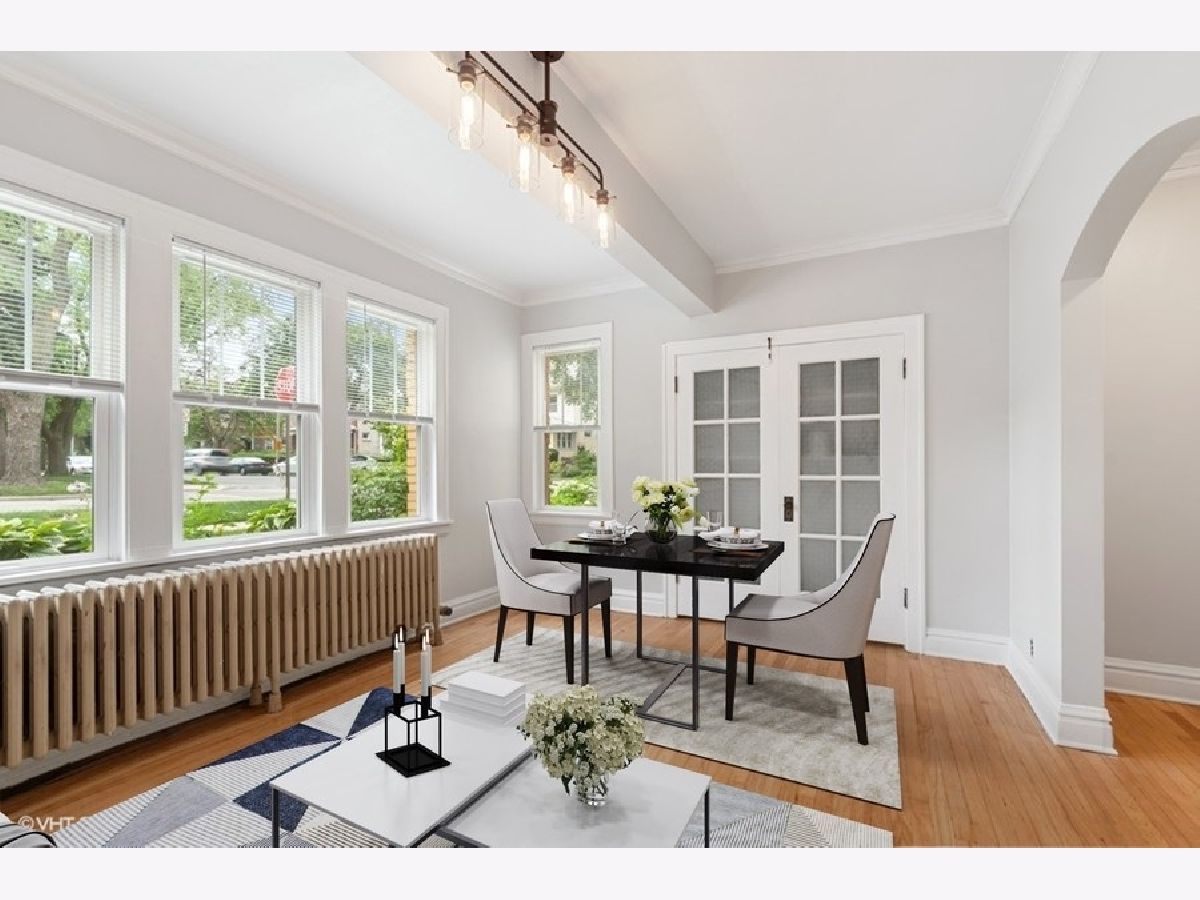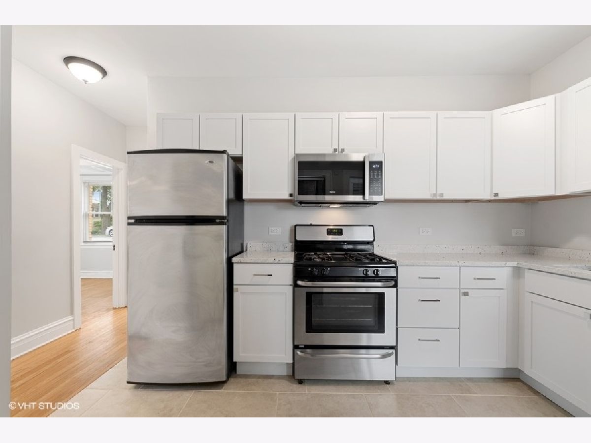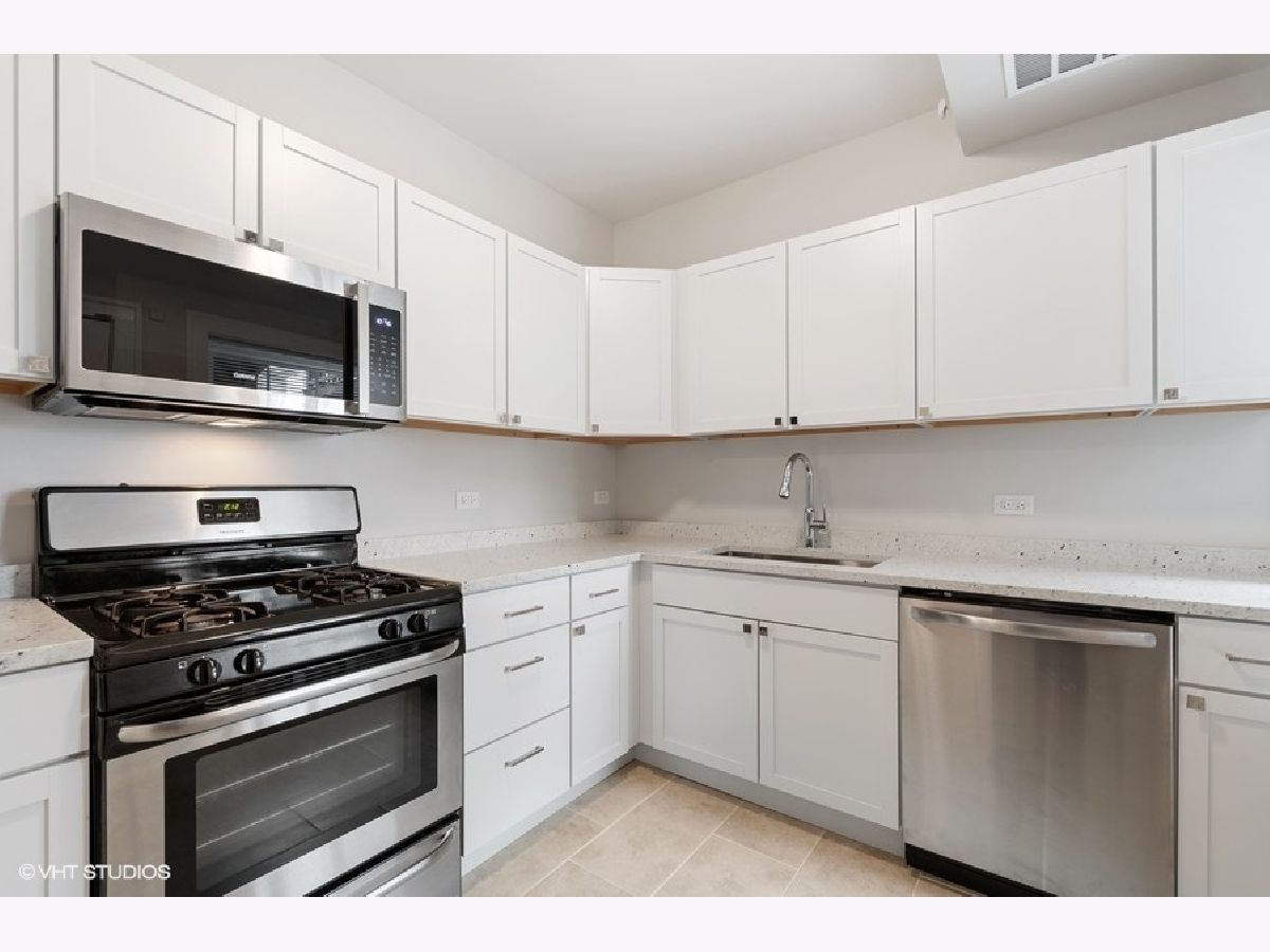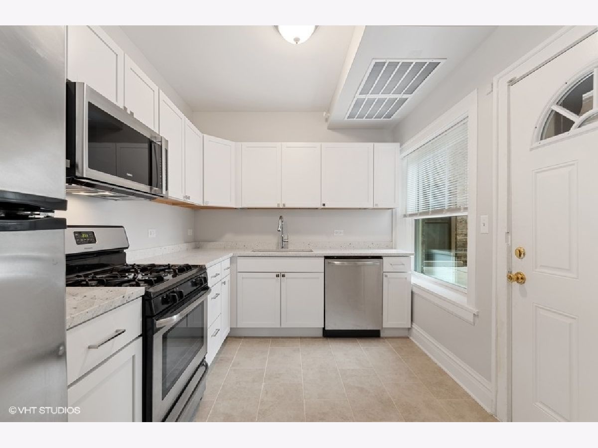 Incredibly charming rehabbed 2 bed 1 bath condo in beautiful Forest Park! This recently renovated first floor english garden unit features fresh paint throughout, crown molding, refinished hardwood floors, updated bath with newly glazed tub, new fixtures, and ceramic tile, kitchen with an abundance of white shaker custom cabinets, stainless steel appliances, under mount sink and quartz countertops, newer windows, new lighting fixtures, new electrical and plumbing, ample storage, serene outdoor space, and deeded parking included in the price! Assessments include heat, water, and trash. Laundry and storage adjacent to the unit. Amazing location with incredibly easy access to 290. Walk to Blue Line, and bustling downtown Forest Park featuring shopping, dining, bars, and restaurants.