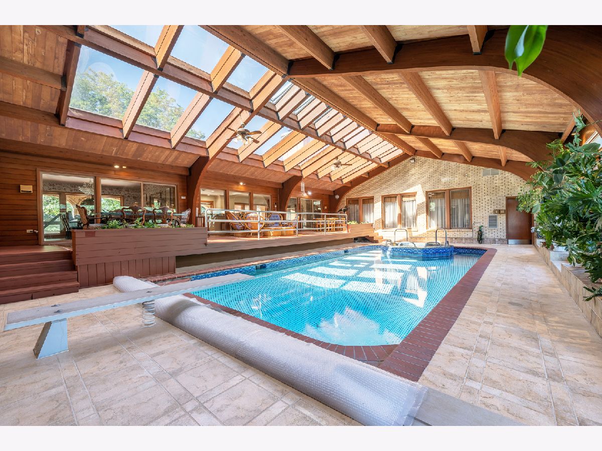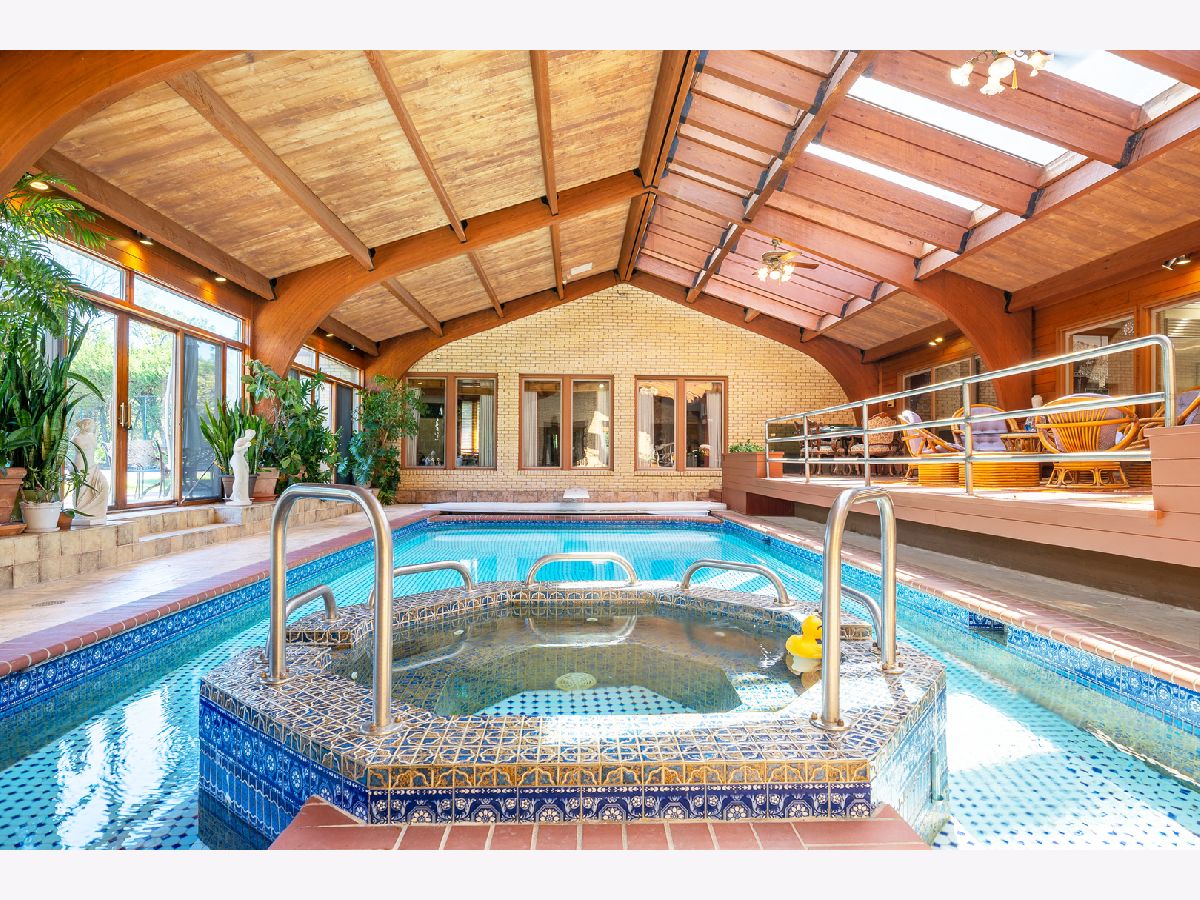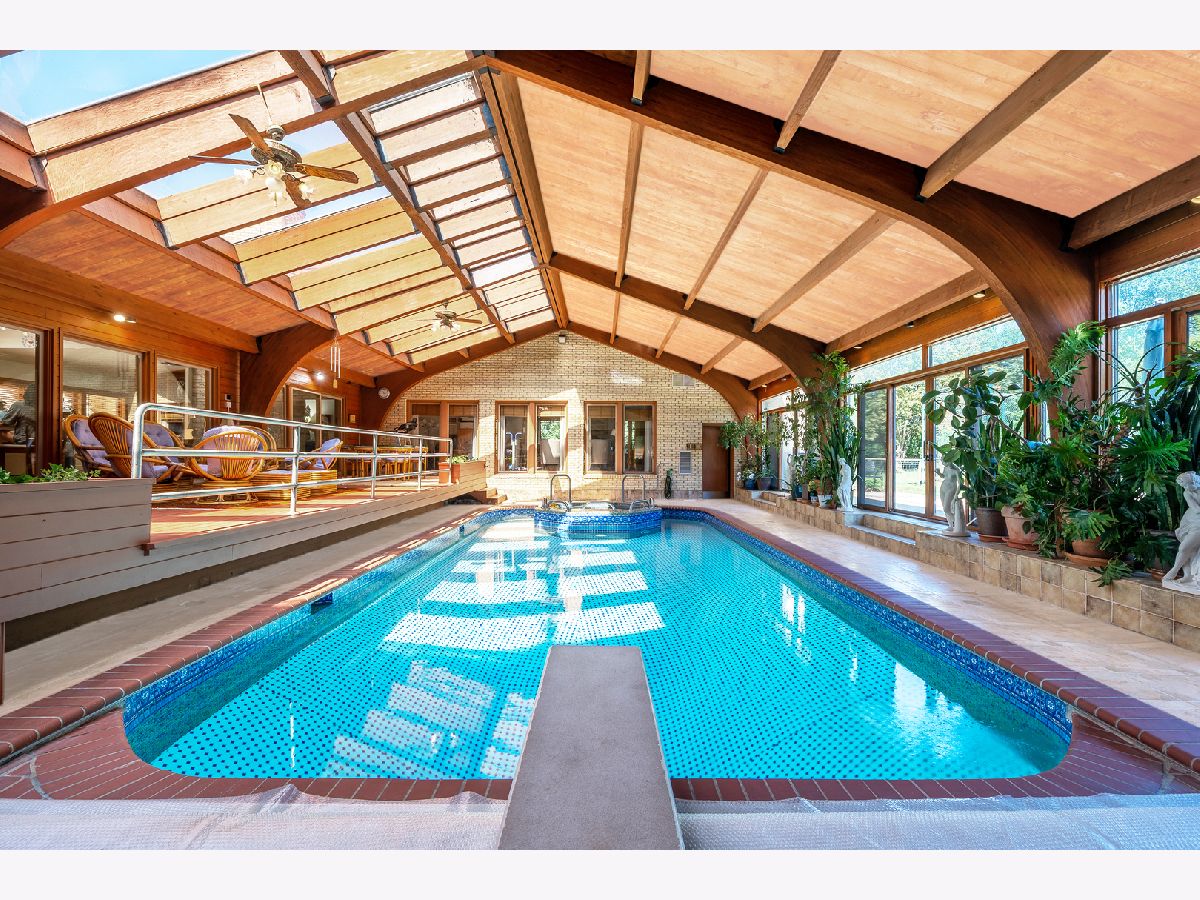 .HUGE PRICE REDUCTION for this sprawling luxury estate in Hunter Trails, 24 hour gated, guarded community. 1.19+ acre interior lot. Award-winning Oak Brook Butler School District 53 and Hinsdale Central High School. This 8,042 square foot plus 2,282 square foot basement, Mediterranean-style home is built for family living and entertaining. Walls of doors and windows. Rooms of grand proportions. Finest appointments throughout and great attention to detail. Hardwood flooring. Beautiful millwork, and molding. Impressive chandeliers and lighting fixtures. Amazing light filled indoor pool with hot tub, atrium, deck, skylights and patio doors to the yard. Enjoy all year around. First floor primary bedroom suite with primary bathroom and sitting area/office, large walk in closet and patio doors to the pool. The recently remodelled kitchen has high end stainless appliances, including Sub zero and Thermador, large island with breakfast bar, granite countertops, custom wood cabinetry, open to the family room with fireplace and views of and access to the pool. Impressive foyer with marble flooring and statement winding staircase leading to the of library which has a fireplace and built in custom cabinetry and the grand living room with windows proving views of the pool and the yard and landscaping and water feature and several beautiful chandeliers. The formal dining room and living room are large enough to host any event! Most of the interior overlooks the large indoor pool with numerous skylights and volume ceilings. First floor laundry room. The second floor has four spacious bedrooms with ensuite bathrooms and most all with balconies. Finished basement with with full bathroom, bedroom, bar and recreation space. Professionally landscaped with perennials, water features and mature trees. Clay roof. Bricker exterior. Three car garage. Circular driveway and motor court. Easy access to major roads and highways, Oak Brook Park District, Oak Brook Sports Core, Fullersburg Woods and Oak Brook Shopping center. PROPERTY APPRAISED AT $2.1M IN APRIL 2025