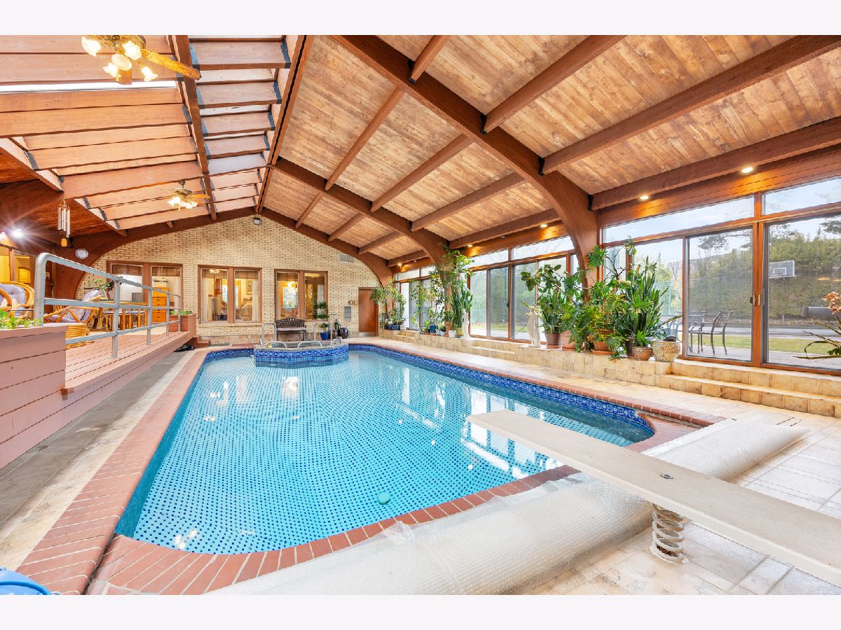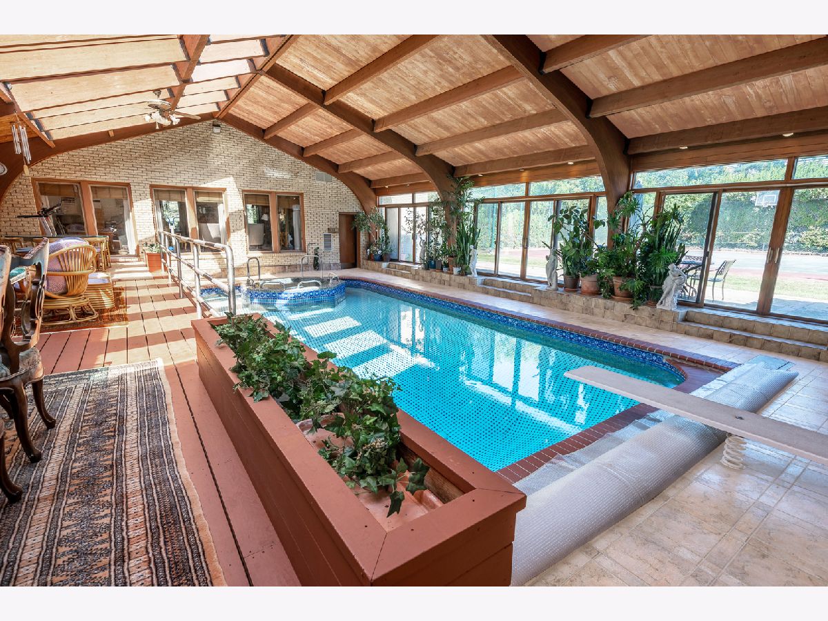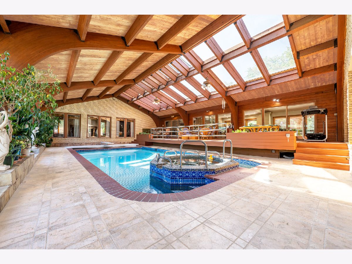 .HUGE PRICE REDUCTION for this sprawling luxury estate in Hunter Trails, 24 hour gated, guarded community. 1.19+ acre interior lot. Award-winning Oak Brook Butler School District 53 and Hinsdale Central High School. This 8,042 square foot plus 2,282 square foot basement, Mediterranean-style home is built for family living and entertaining. Walls of doors and windows. Rooms of grand proportions. Finest appointments throughout and great attention to detail. Hardwood flooring. Beautiful millwork, and molding. Impressive chandeliers and lighting fixtures. Amazing light filled indoor pool with hot tub, atrium, deck, skylights and patio doors to the yard. Enjoy all year around. First floor primary bedroom suite with primary bathroom and sitting area/office, large walk in closet and patio doors to the pool. The recently remodelled kitchen has high end stainless appliances, including Sub zero and Thermador, large island with breakfast bar, granite countertops, custom wood cabinetry, open to the family room with fireplace and views of and access to the pool. Impressive foyer with marble flooring and statement winding staircase leading to the of library which has a fireplace and built in custom cabinetry and the grand living room with windows proving views of the pool and the yard and landscaping and water feature and several beautiful chandeliers. The formal dining room and living room are large enough to host any event! Most of the interior overlooks the large indoor pool with numerous skylights and volume ceilings. First floor laundry room. The second floor has four spacious bedrooms with ensuite bathrooms and most all with balconies. Finished basement with with full bathroom, bedroom, bar and recreation space. Professionally landscaped with perennials, water features and mature trees. Clay roof. Bricker exterior. Three car garage. Circular driveway and motor court. Easy access to major roads and highways, Oak Brook Park District, Oak Brook Sports Core, Fullersburg Woods and Oak Brook Shopping center. PROPERTY APPRAISED AT $2.1M IN APRIL 2025