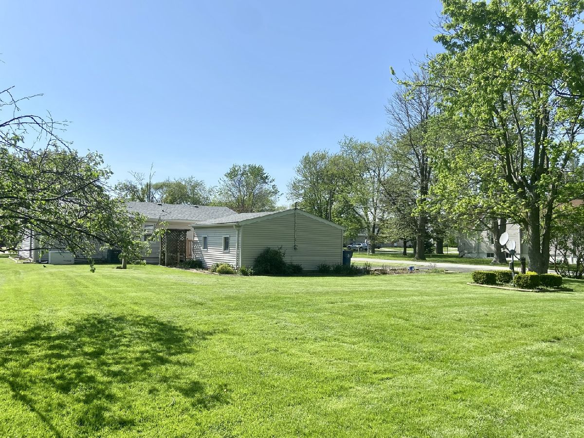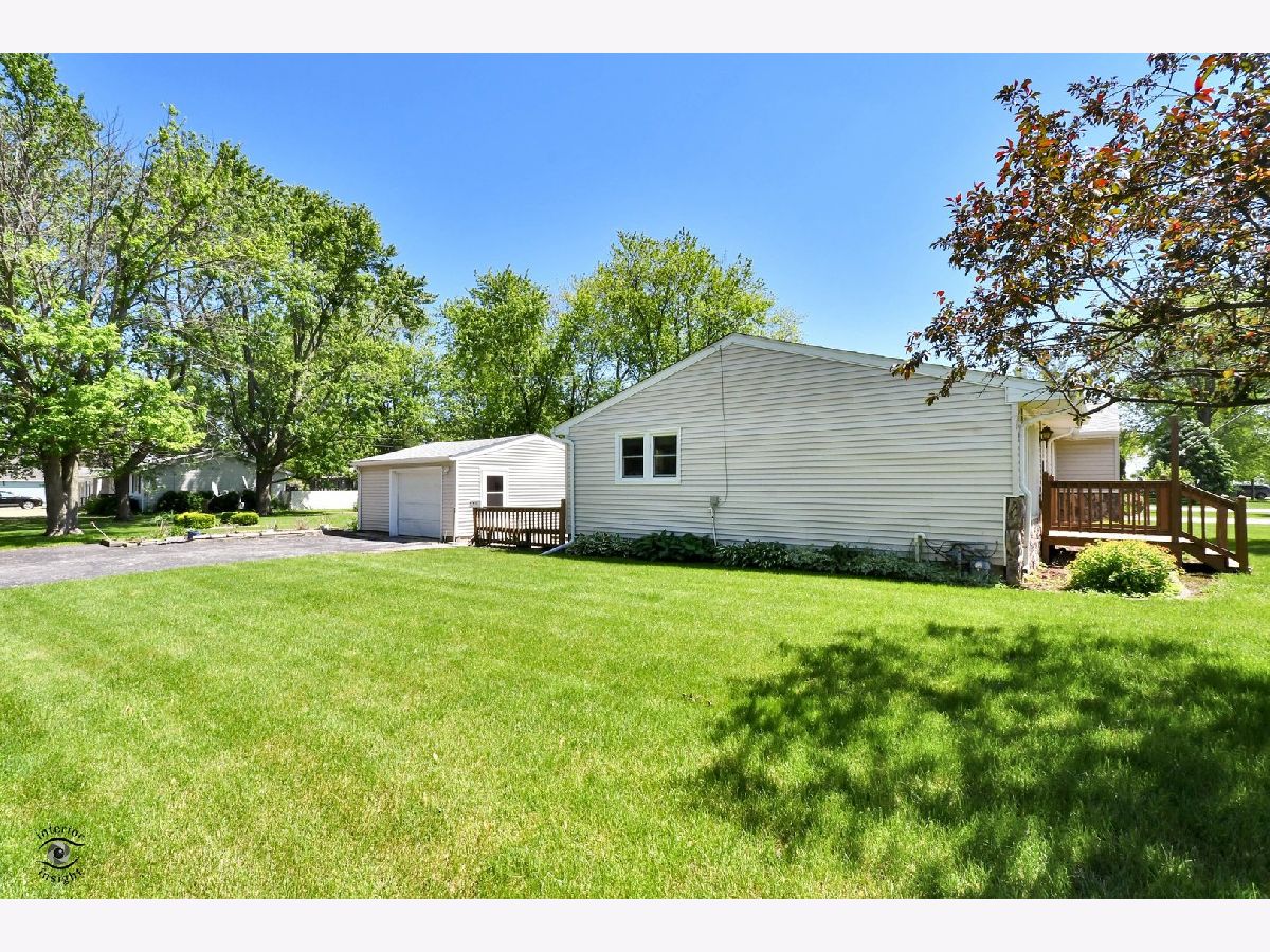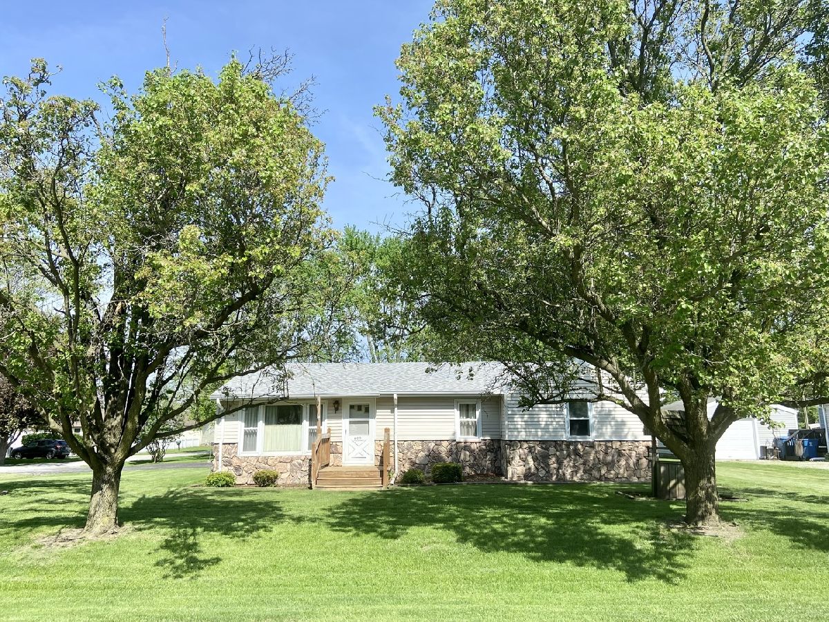 One owner ranch home on large corner lot! 29x13 living room(could include a formal dining area) with wood burning stove. 2 nice sized bedrooms plus an office that could convert to a 3rd bedroom. Beautiful lot features mature trees, deck and flower beds. Roof 2018. Furnace 2012. A/C 2015. Water heater 2021. 1.5+ car garage. Basement. 1.5 baths. Generator stays. Serene setting on a quiet street. Small town living only 50 minutes from Chicago. Call today!