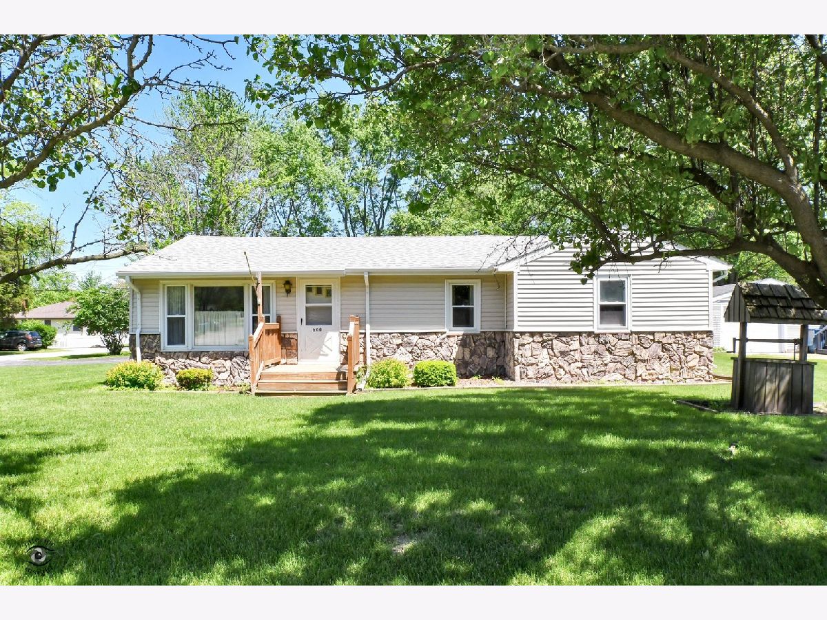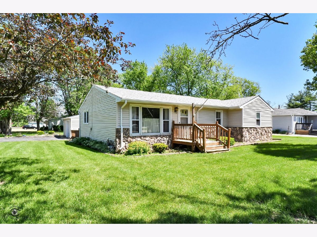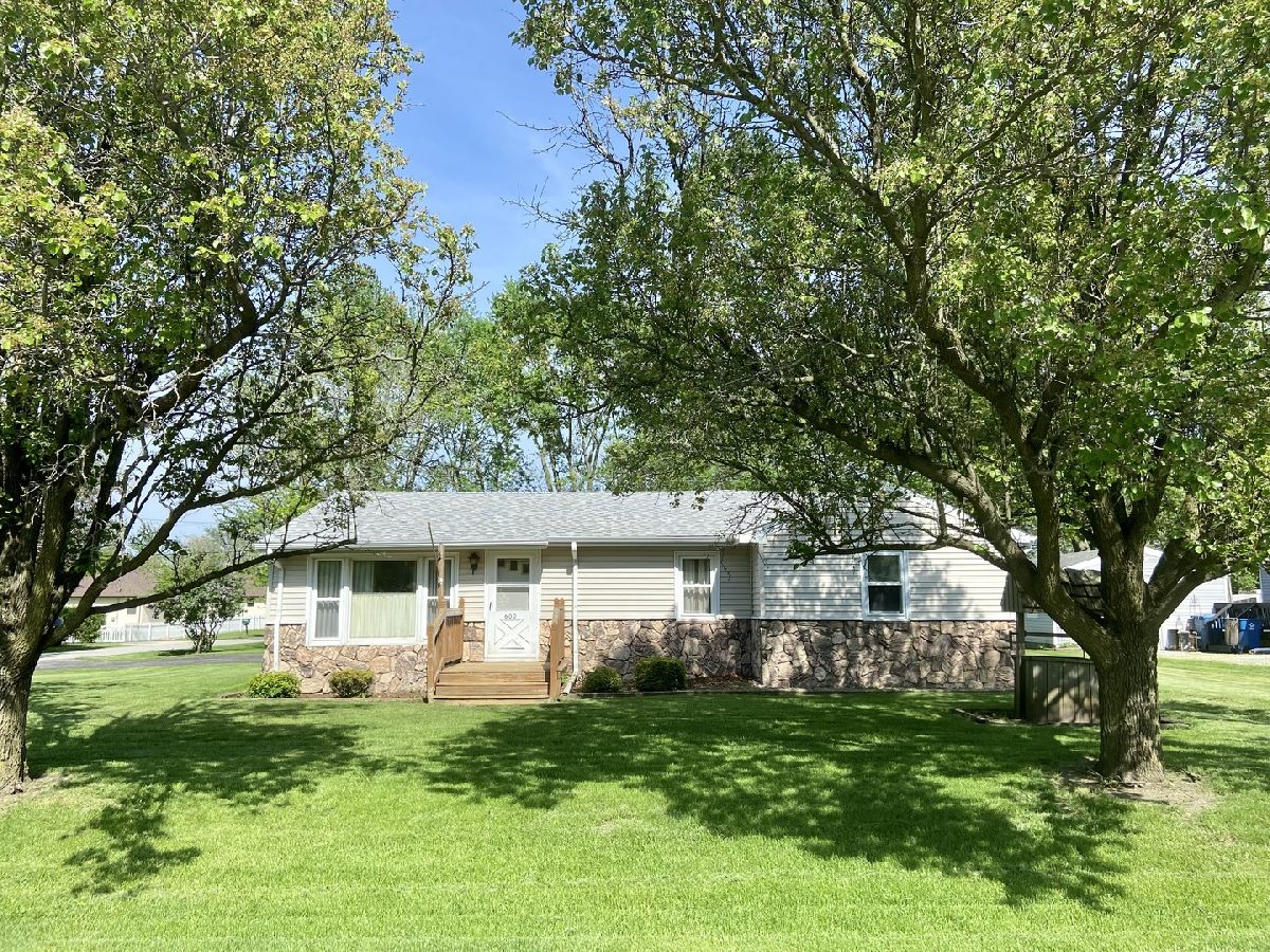 One owner ranch home on large corner lot! 29x13 living room(could include a formal dining area) with wood burning stove. 2 nice sized bedrooms plus an office that could convert to a 3rd bedroom. Beautiful lot features mature trees, deck and flower beds. Roof 2018. Furnace 2012. A/C 2015. Water heater 2021. 1.5+ car garage. Basement. 1.5 baths. Generator stays. Serene setting on a quiet street. Small town living only 50 minutes from Chicago. Call today!