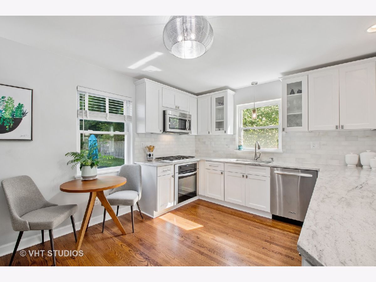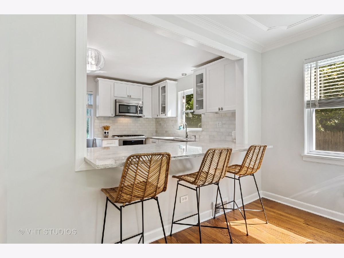 Amazing rehabbed home in fabulous location. From the moment you walk in, this home is filled with charm. Open concept stunning all new white kitchen, with soft close cabinets, granite, motion sensor faucet, and large pantry flows into the family room. Family room offers tons of character with amazing detail trim detail on the ceiling and wood burning fireplace. Stunning rehabbed full bath and three nice size bedrooms. This home has so much to offer with hardwood floors throughout, freshly painted, all newer windows, Nest system, updated electrical and brand new garage door. Lower level includes rec room, full bath, laundry and tons of storage. Large backyard with patio. Generous size one car garage and ample parking on driveway. Amazing location, close to Ravinia, town and beach.