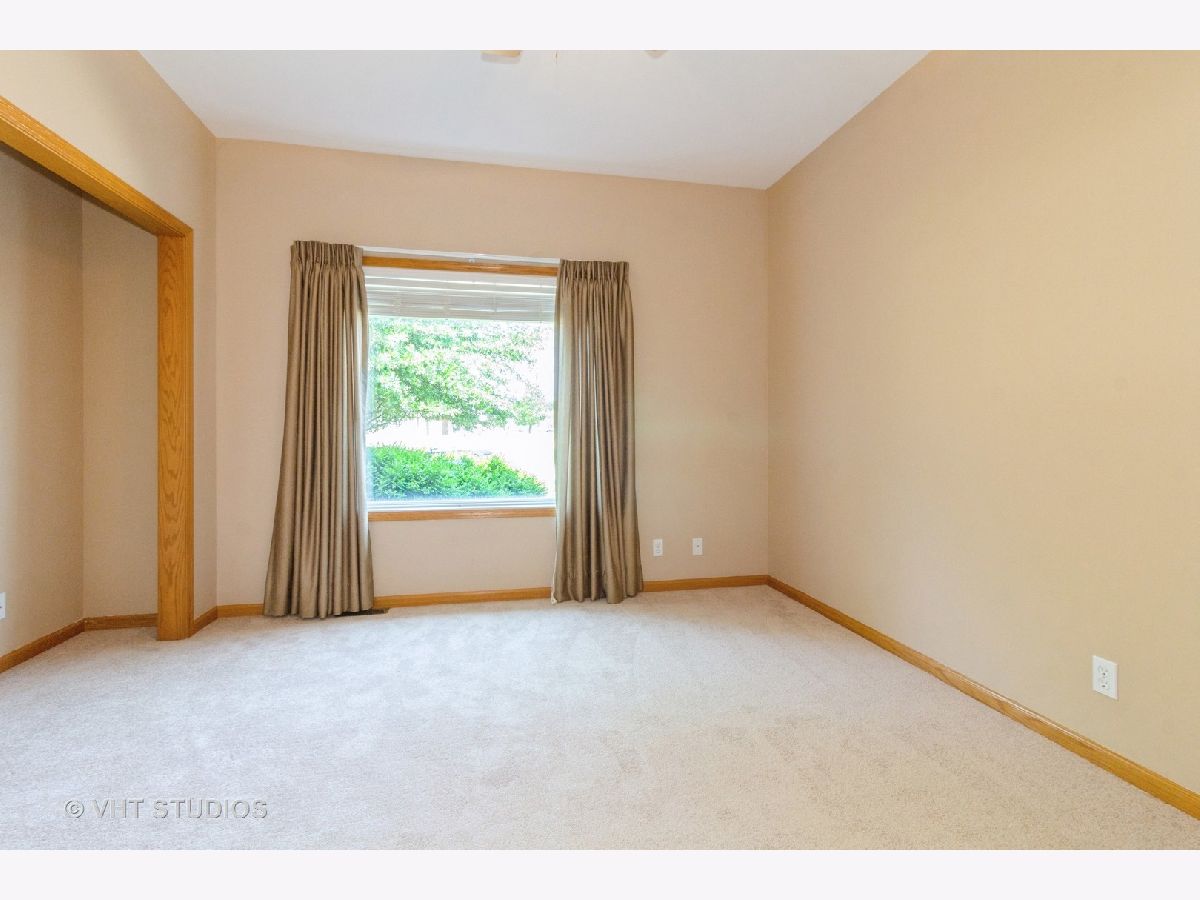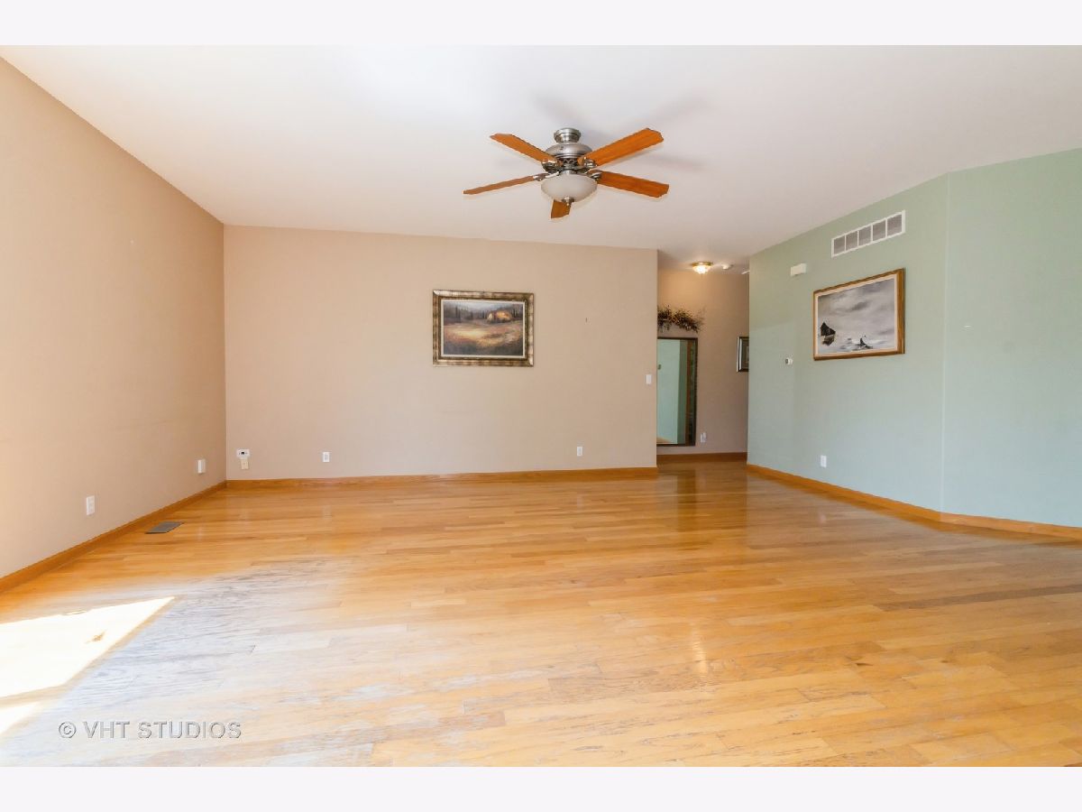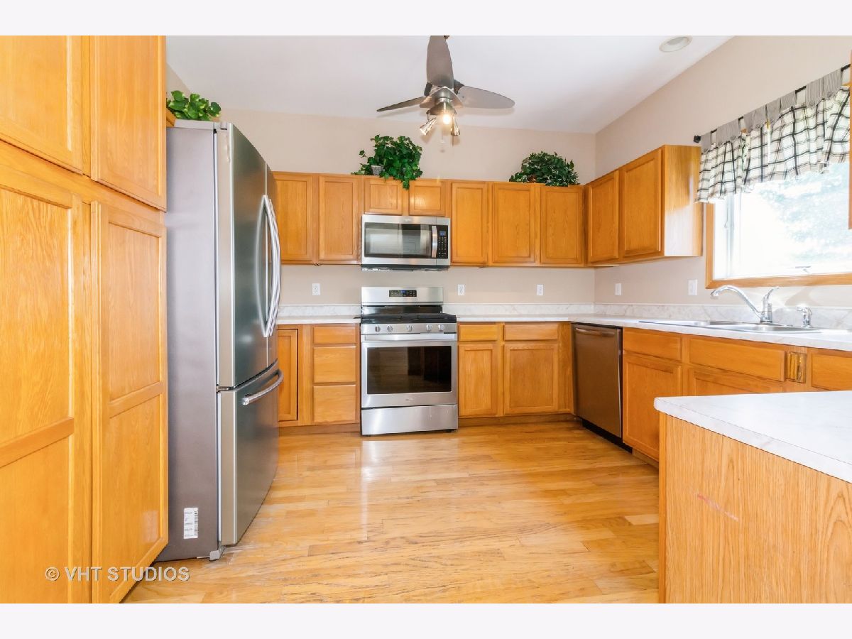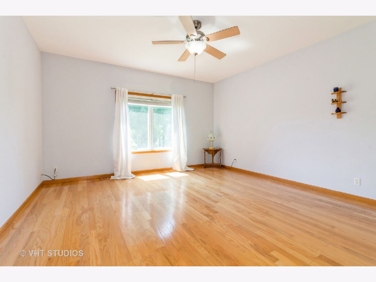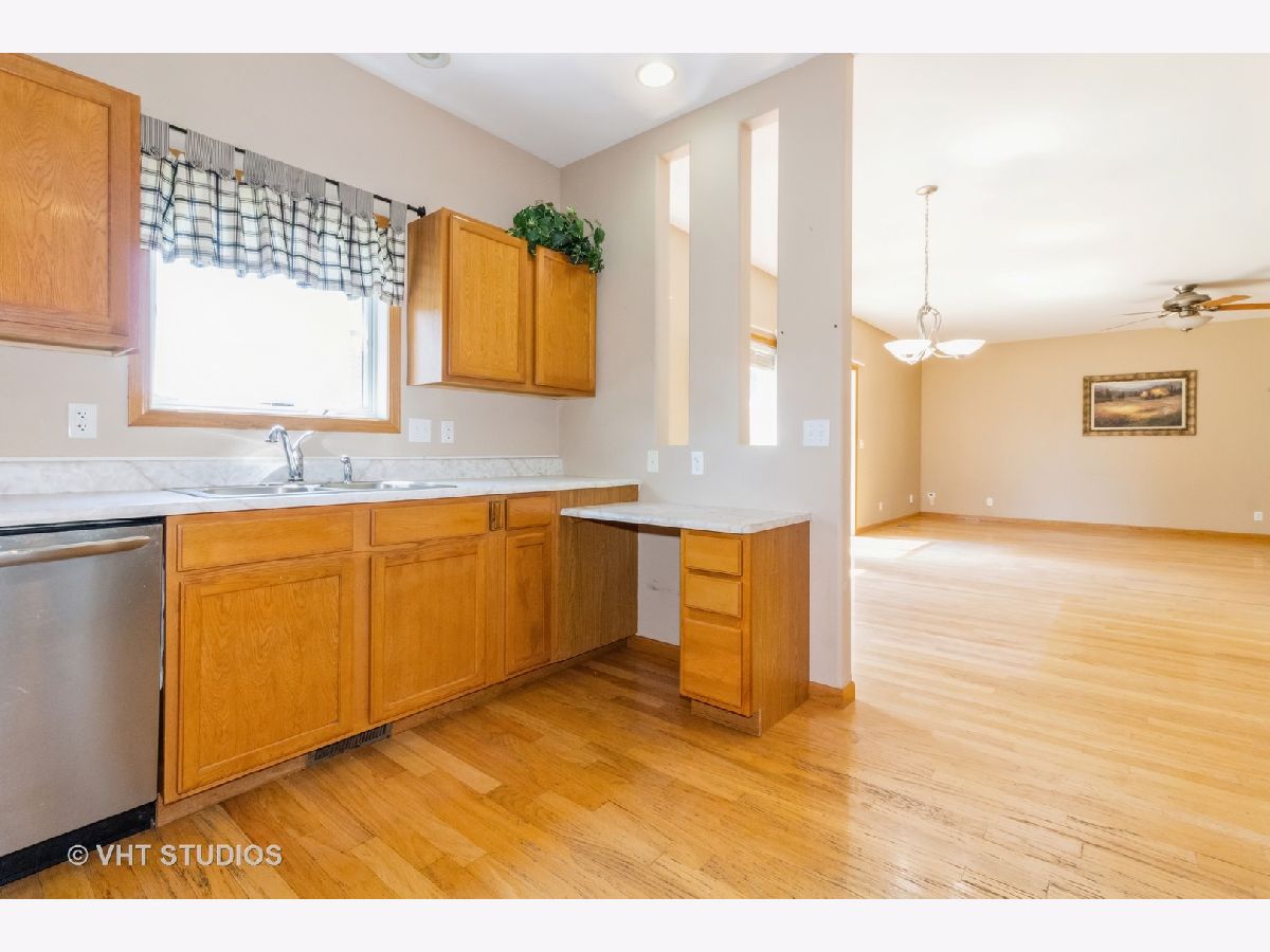 MULTIPLE OFFERS - Highest and best by noon on Monday 7/22. This wonderful 3 bed, 2 full bath ranch home is stair/step free making it an easily accessible home for everyone! This well maintained home features hardwood floors and rounded bullnose corners. Kitchen offers newer stainless steel appliances, pantry cabinet with pull out drawers, ample cabinet and counter space and sink window overlooking the tranquil backyard. Separate eating area off the kitchen. Spacious living room with ceiling fan and sliding glass doors to the cement patio. Hall bath with ceramic tile floors and tub/shower combo. Third bedroom is carpeted. Spacious primary bedroom with large walk in closet and ensuite that has a large shower with seat and grab bars. All 3 bedrooms have ceiling fans and nice sized closets. Washer and Dryer located off the garage. Washer is only 1 year old. NEW A/C in 2023! Home sits on a large corner lot and there are no neighbors behind you! You'll enjoy the peaceful and serene views of the pond (great for fishing) and nature from the 14x14 cement patio. Located in the popular Riverbend subdivision this home is close to the walking/bike path, Russell Woods Forest Preserve and downtown shops and dining.