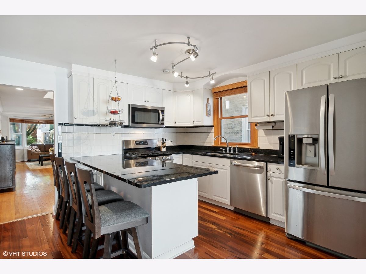 4+1 bedroom Chicago brick Bungalow, located in the heart of Norwood Park. Hardwood floors throughout, large living/dining room, Chef's kitchen opens to the family room with new gas fireplace and surround and sliders to the outdoor deck & yard. Two generous sized bedrooms with shared hall bath on the first floor double as an office or a nursery. Upstairs is the large primary bedroom with cathedral ceilings & a shared bath with a skylight & another bedroom down the hall. Basement features a laundry room, recreation room with a wet bar, bedroom, workroom, a full bath & lots of storage. New detached 2 car garage with storage, outdoor deck and generous sized backyard. Fantastic neighborhood with tree lined streets, great schools and nearby park district make this the perfect home for your growing family.