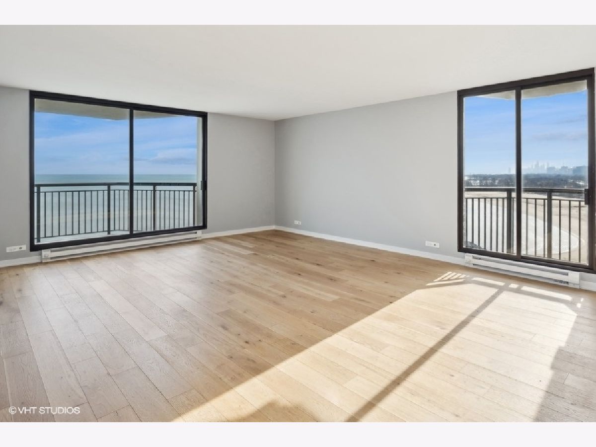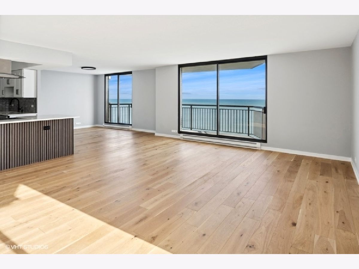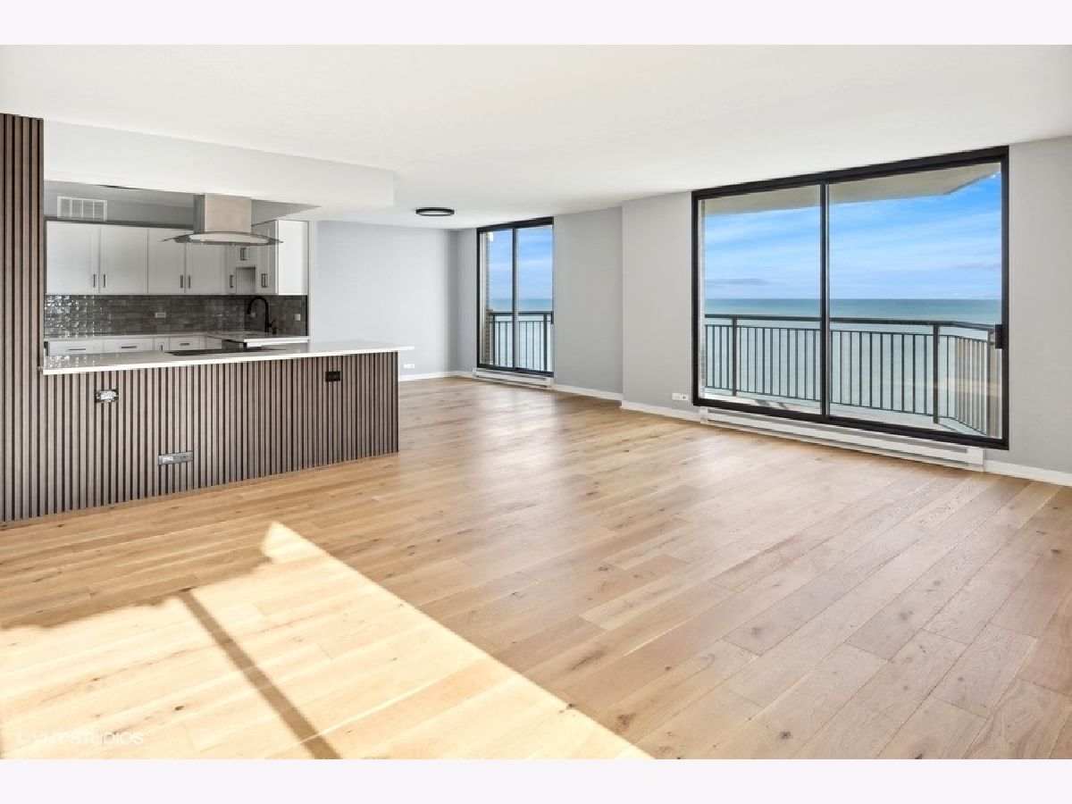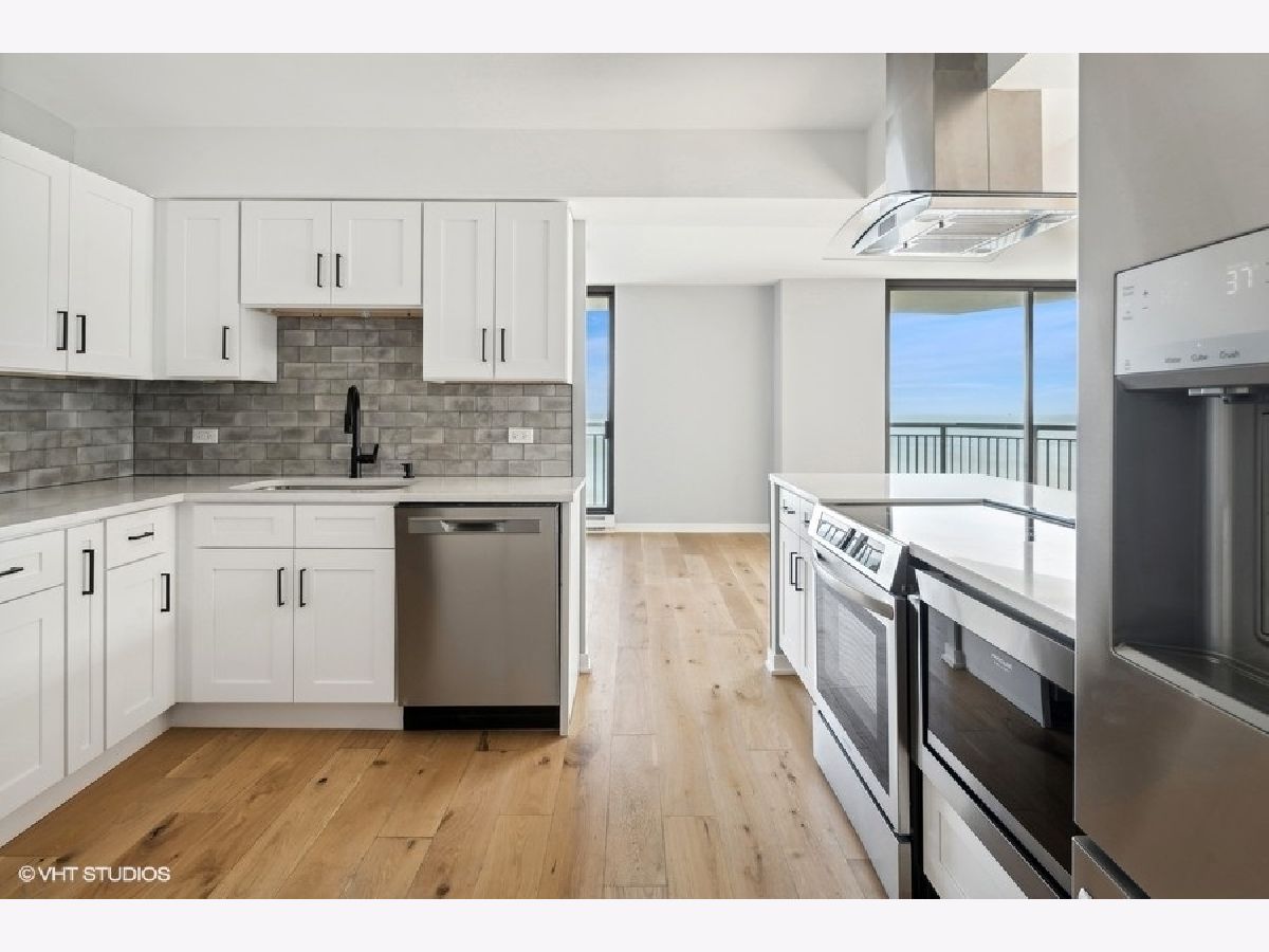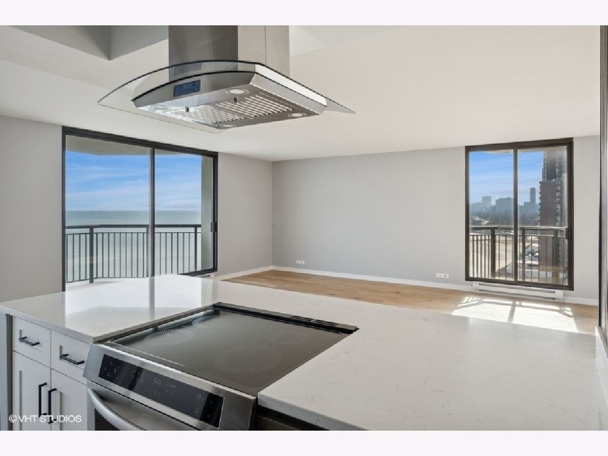 Experience Modern Elegance with Unmatched Views; Step into this fully renovated 2-bedroom, 2-bathroom unit and discover the epitome of city living. The moment you walk onto the expansive balcony, you will be captivated by breathtaking views of the serene lake and the sparkling city skyline. Whether you are savoring a morning coffee or unwinding at night, the sights and sounds are nothing short of magical. Inside, every detail has been meticulously designed. The open-concept layout highlights a brand-new kitchen with quartz countertops, sleek stainless steel appliances (complete with warranties), and elegant fixtures that add a touch of sophistication. The open flow seamlessly connects the living and dining spaces, perfect for entertaining or simply enjoying your home. Luxurious new flooring runs throughout, complementing the modern bathrooms outfitted with stylish finishes. This unit offers both comfort and convenience, with self-parking or valet options to suit your lifestyle. The HOA is managed by an onsite manager who is wonderful and accommodating, A 24/7 doorman offers around the clock attention. There is a outdoor swimming pool, sauna, sun deck, party room, dry cleaners, bike room, exercise room, 24/7 valet parking. Everything is steps away: Mariano's, Whole Foods, bus, train, Lake Michigan beaches, running path, and numerous restaurants!!! Ideal for those seeking the perfect blend of relaxation and city living; your dream awaits.