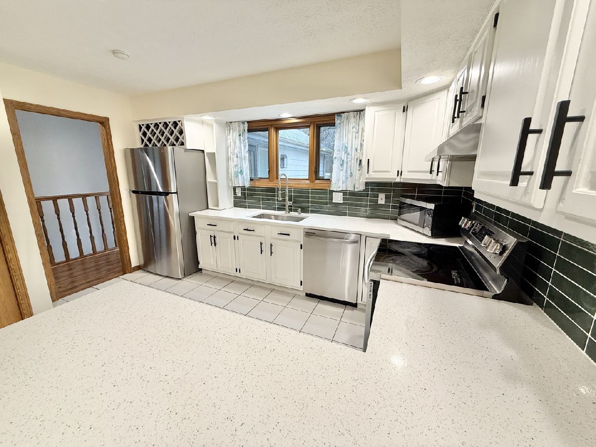 Beautifully updated custom-built home located on a cul-de-sac in a desirable east Rockford neighborhood. This 3 bedroom, 2.5 bath ranch home offers more than 2,600 sq ft of living space. Brand new durable & chic LVP flooring, lighting/fans & fresh paint can be found throughout. Living room with recessed lighting & large atrium windows/door out to a private deck. Formal dining room with bayed window and beautiful brushed gold chandelier with doorway into the just remodeled eat-in kitchen with fresh painted white cabinetry, black cabinet hardware, Quartz counters with oversized SS farmhouse sink with pulldown faucet, a rich green subway tile backsplash, pantry, planning desk & SS appliances. Adjacent family room with brick surround gas fireplace with 2 built-in bookcases for your personal library or decor and atrium windows/door out to the newer deck with built-in seating and a partially fenced backyard. Primary bedroom with walk-in closet, doors out to a private deck & recently updated full bath with tile walk-in shower with rain showerhead & handheld, double bowl floating vanity & tile flooring. The other 2 bedrooms share the 2nd updated bath with trendy tile flooring, subway tile tub surround and white vanity with Quartz top. The lower level has a rec room with wet bar for entertaining + office area. Roof/gutters 2019, water heater 2020, new Pella windows in 2 bedrooms, 1st floor laundry & epoxy coated floor in 2.5 car garage.
