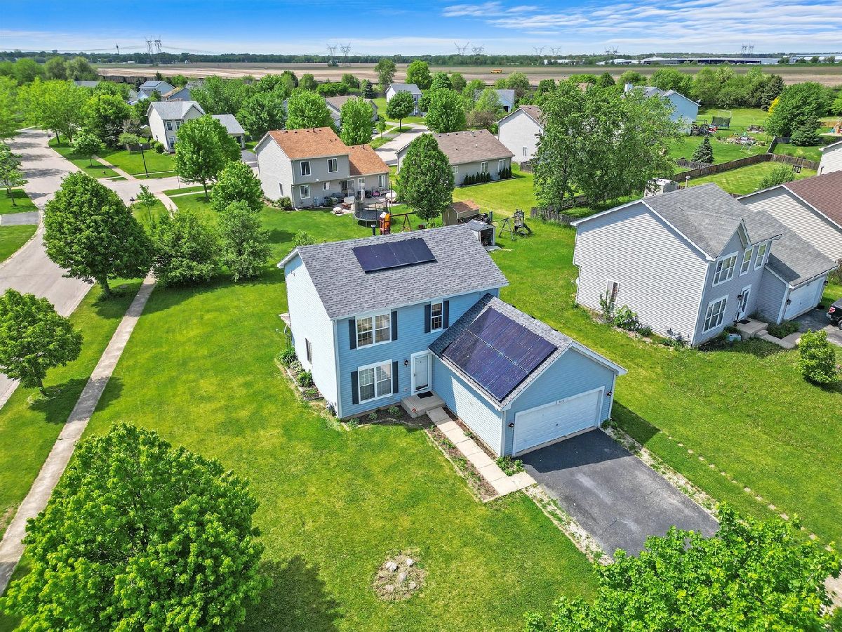 Welcome home! Check out this two story home sitting on a beautiful large corner lot that is ready for a new family! This home features 3 bedrooms upstairs with 2.1 baths throughout, white doors & trim. Recently updated gorgeous kitchen with maple cabinetry, new countertops, backsplash and fixtures with all new stainless steel appliances. Sliding doors lead to back yard. Entertain in the formal dining and living room or relax in the family room. Good sized yard with patio for entertaining and a full basement that can easily be finished for even more living space. Newer furnace and newer water heater. Solar panels are being rented for $40 a month that can stay or be removed. Electric bill is only $15 a month.