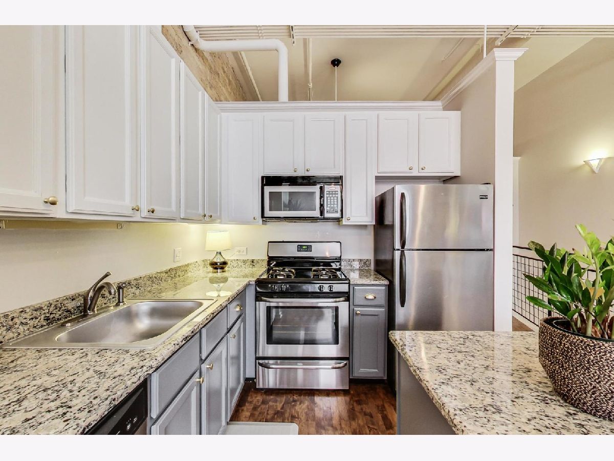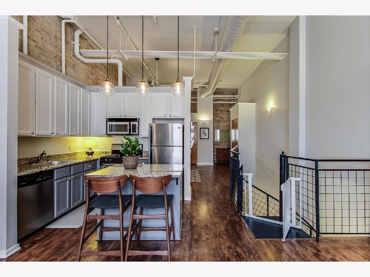 Walk to the Metra, CTA, restaurants, and the lake from this spacious duplex at New Biscuit lofts! Upstairs enjoy a spacious living room with high ceilings and large windows, which flows into the modern kitchen with granite countertops, stainless-steel appliances, and pantry closet. Additional space upstairs can be used for formal dining, den area, or office. A full bathroom is available on each floor, including a newly renovated upstairs bathroom in 2019. The lower level features brand new vinyl plank floors added in 2020. The large master bedroom has a private door to the downstairs bathroom which can also be accessed from the hallway. The downstairs office/den can easily accommodate a queen bed with nightstands if desired. The utility room rounds out the downstairs with washer/dryer, hot water heater replaced in 2017, furnace and storage shelving. The lower level door conveniently exits through the hallway onto Custer Street, near this unit's parking space #17. This unit is just steps away from the gorgeous, common courtyard with room for grilling and relaxing. Monthly assessment includes water, common insurance, exterior maintenance, scavenger, and snow removal. Taxes do not reflect the homeowner's exemption!