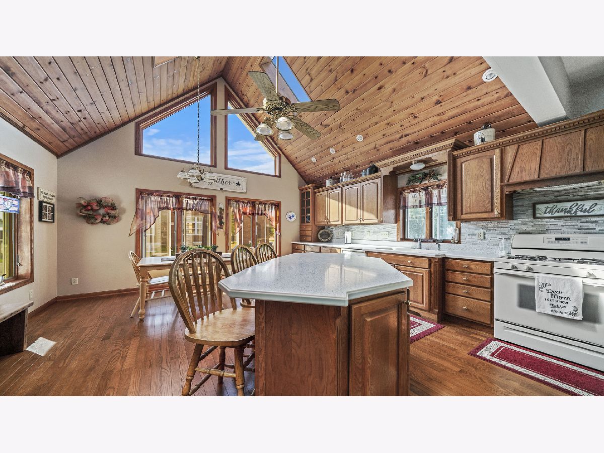 Welcome Home to this spacious 2 story home conveniently located blocks from schools & parks on a corner lot! Enjoy the welcoming kitchen with center island, eating area with cathedral wood ceiling & wall of windows & ample built ins, hardwood flooring & appliances that stay! Dining room leading to the living room with gas log fireplace and window with stained glass insert. Great room with built in bookcase and ample space for entertaining family & friends. Upstairs are 3bedrooms, full bath, den & landing perfect for computer space or play room, master bedroom with dressing room, and ample closets. Attic storage, detached 3 car garage w/opener & so much more! Being sold as-is.