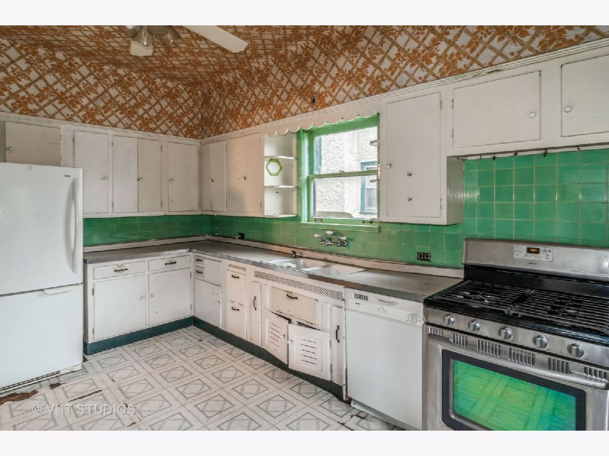 Rehabbers, this is a wonderful opportunity in beautiful Oak Park! This three story stucco Gunderson, centrally located, has tall ceilings, large room sizes, original leaded glass. Classic Gunderson floor plan, with enclosed front porch, double parlor living room with bay window, four beds plus tandem on the 2nd floor, finished third floor. Basement is finishable. Located across the street from Longfellow park, on a corner lot, it has tons of sunshine. Master suite possible on 2nd floor by combining two eastern bedrooms with tandem; third floor has non-functioning bath--another possibility for a Master suite. House in need of major updates including plumbing, electrical, kitchen and baths, but roof is newer, and was a tear off. Rehabbed homes in this neighborhood sell quickly! Sold as is, no exceptions.