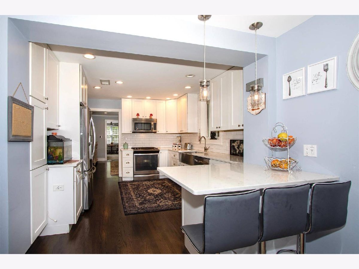 Stunning English Tudor Featuring 4 Bedroom & 3 Bath one on Every Level, this is one of the best blocks in South Edgebrook! This highly updated 2 story home will meet all of your client's wants and needs.The light filled home has gleaming hardwood floors, surround system. Living Room with fireplace, spacious dining room. Stunning newer kitchen with breakfast bar, plenty of cabinets & pantry space, quartz counter tops and SS appliances looking over nice addition used as additional eating space and or family room. Large 1st floor bedroom, 3 more bedrooms up. Lower level is all newly finished w/ bath, lots of closets & storage with shelving, laundry and exterior access. Anderson picture window, brick patio, flood control X-Pert. Recently redone roof, oversized gutters & downspouts-June 2020. Newer 2.5 Car Garage with party door. Close to Indian Rd Park and Bike Trails. Nothing to do but move in and enjoy!