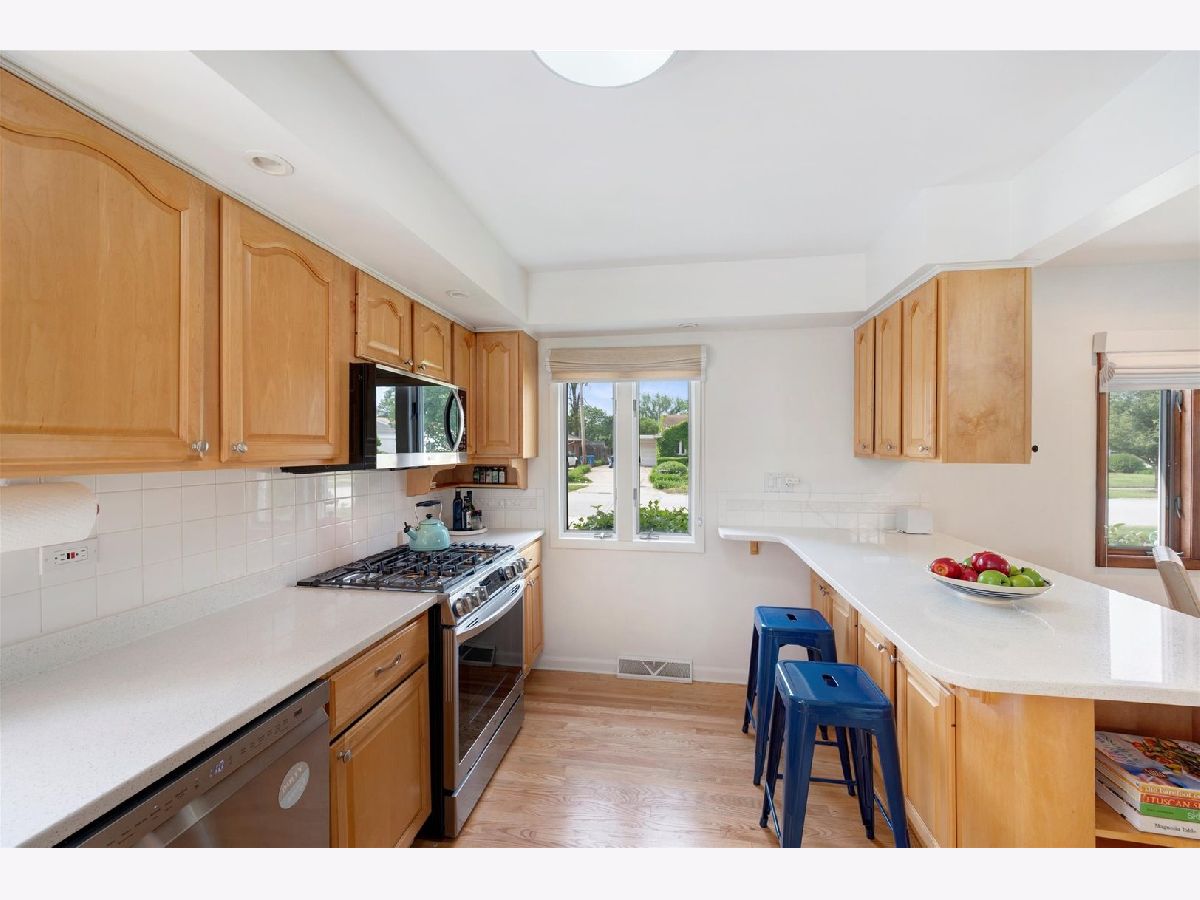Beautifully updated split-level home located in the highly sought-after Brynhaven neighborhood! This 3 bedroom, 2 bath home is just a short walk to parks, elementary, and junior high schools, downtown and train station. Step inside to discover a bright and inviting interior with newly refinished hardwood floors throughout the first and second floors. Custom blinds in living room. The kitchen features updated maple cabinets, quartz counter-tops, stainless-steel appliances, and additional storage over kitchen island. The open concept layout on the first floor is perfect for cooking and entertaining. Upstairs, you'll find three spacious bedrooms and an updated bath with a deep soaking tub. The finished lower level provides additional living space, including a family room ideal for relaxing or entertaining, another newly remodeled full bath as well as a laundry room with utility sink and additional shelving providing ideal convenience. A large crawl space provides even more storage options. Another standout feature of this home is the patio and private fenced-in backyard. Central air is 6 years old.
