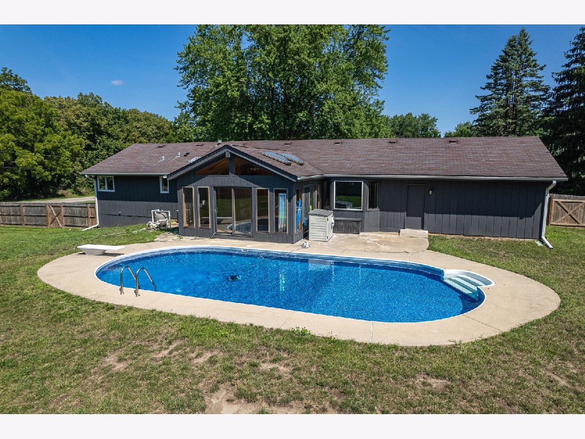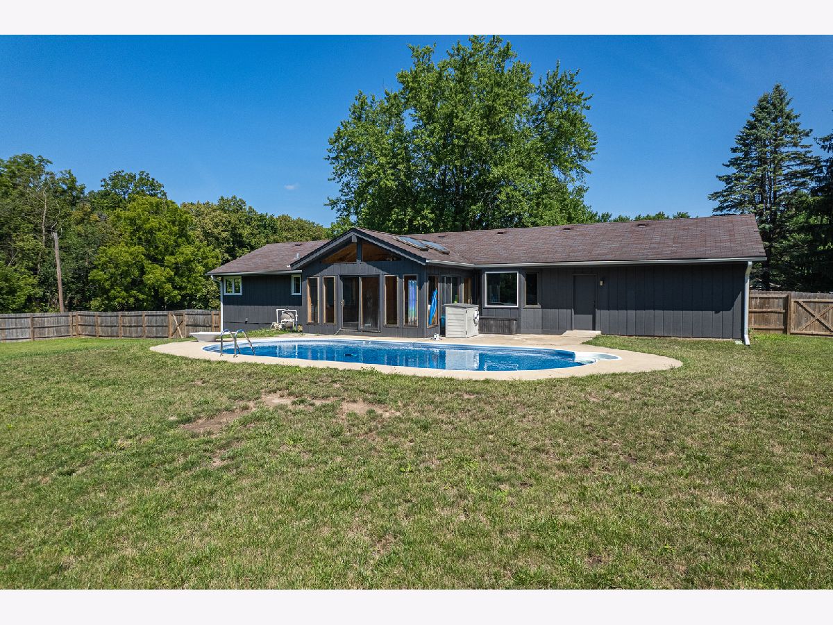 Located in rural Cherry Valley this property is in an excellent location. This ranch home boasts lots of updates. Entering the home you have a nice flow from the living room that is combination with the dining room area. Leading into the updated kitchen you will be in awe of the grey cabinets, granite countertops, stainless steel appliances. Eat-in kitchen has room for bar seating and a smaller table. Open from the kitchen into the family room with wood burning fireplace and mounted TV. Down the hall you have an updated bathroom for the 2nd and 3rd bedroom. Both bedrooms are good size. The master bedroom has its own updated master bathroom. Double doors off the family room take you out to the sunporch that leads out to the in-ground pool with a new liner. Large fenced-in backyard is a great area to entertain. The lower level has tons of potential for additional living space. Has the space for a rec room, bonus room, workout space. You will love this country subdivision on a corner lot in close proximity to the Kishwaukee River and Forrest preserve. Quick access to restaurants and shops, and 10 minutes to I-39.
