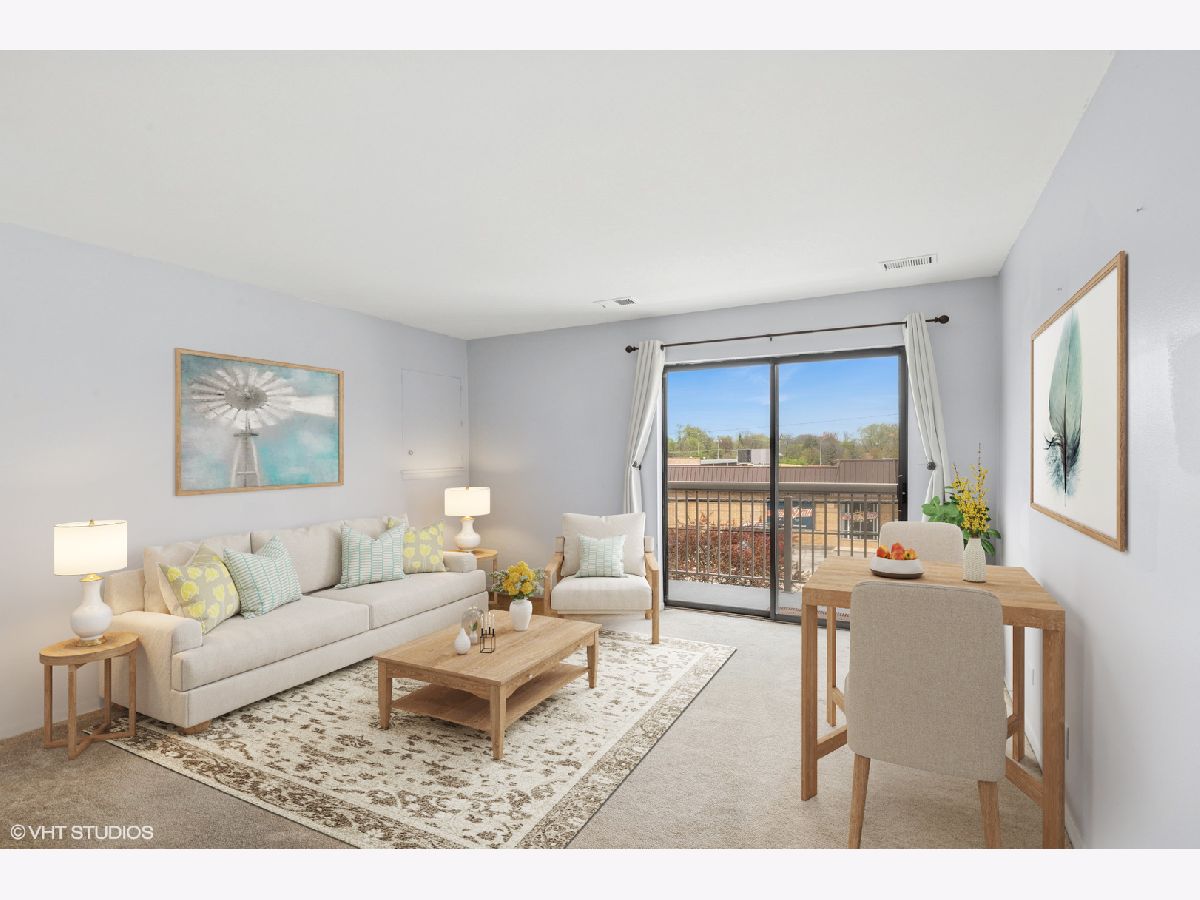 Adorable and Affordable MAINTENANCE FREE, Investor Friendly active adult 55+ condo available in Central Village. This 1 bed, 1 bath condo is bright and clean and painted in neutral colors. The nice sized balcony off the large living room, is perfect for people watching while enjoying a glass of lemonade or meal with friends and family as well as feeling the cool night breeze. The galley kitchen has newer SS appliances (5 years old), Pergo floors and is open to the living room with plenty of storage and functionality including a versatile pantry/storage mechanical room. The bedroom is spacious with a nice size walk-in closet and large window letting light in. The in-unit laundry features a washer and dryer set less than 5 years old and hidden living room storage space which is so convenient. The location is fantastic; walking distance to the Metra, library, shops, restaurants and downtown! PLEASE NOTE: Occupants and/or tenants must be 55 years or older BUT Investors can buy these units and then rent them out to tenants who are 55 years or older. Unassigned parking available. Lawn care, snow removal, water, scavenger and exterior maintenance all included. Quick close possible..available now!