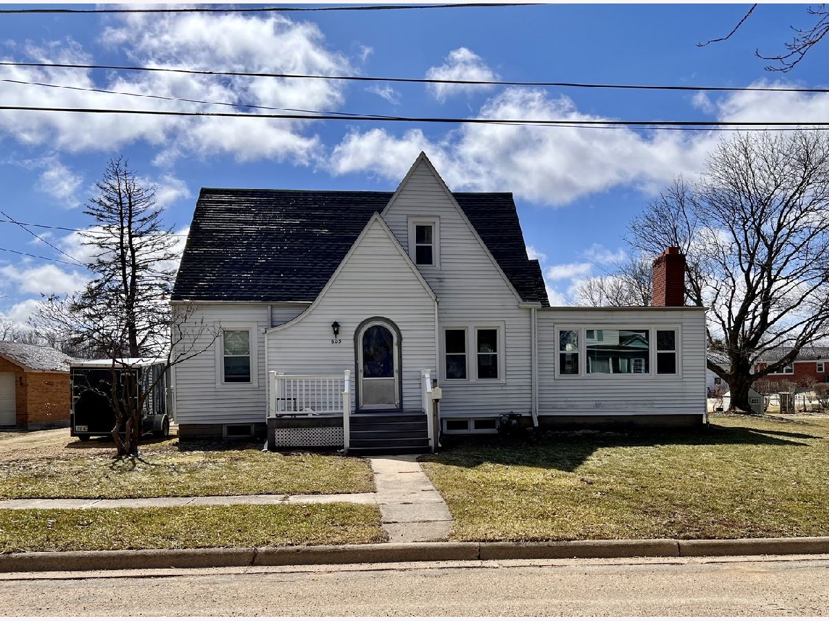 Charming details in this 4 bedroom/1.5 bath home on a double lot in Polo. Updates include ALL newer windows with transferable warranty, attached 3 car heated and insulated garage, carpet in the large light filled living room and in the upstairs, and air conditioner all in 2017. The dining room has antique light fixture and hardwood floors. Freshly painted living room, dining room and master bedroom. New fixtures ready for new owner to install for main bath in basement including tub, surround and vanity. Microwave is also in basement. Property being sold As-Is. Multiple PIN numbers.