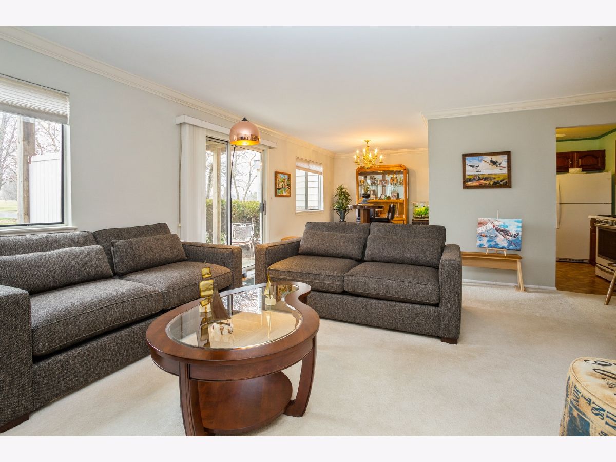 Clean 1st floor home in Schaumburg East of Roselle Road with a premium location backing to the golf course with a large backyard. Features include crown molding in the living room and dining room, fresh paint, first floor with no stairs, laundry in unit, top down bottom up blinds throughout including black out blinds in the front, master bedroom walk-in closet, and newer refrigerator and stove. The association has planned for hall renovation including new carpet, paint, lighting and mailboxes. There is additional guest parking with permits for overnight parking. Gatewood subdivision has an outdoor pool and a rentable clubhouse for parties and gatherings. Playgrounds are onsite and there is space for play right outside the sliding glass door which opens to the patio. Also, there is an attached garage. Conant High School!