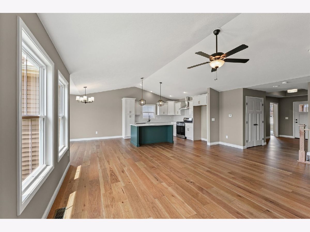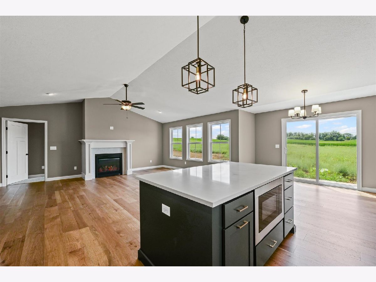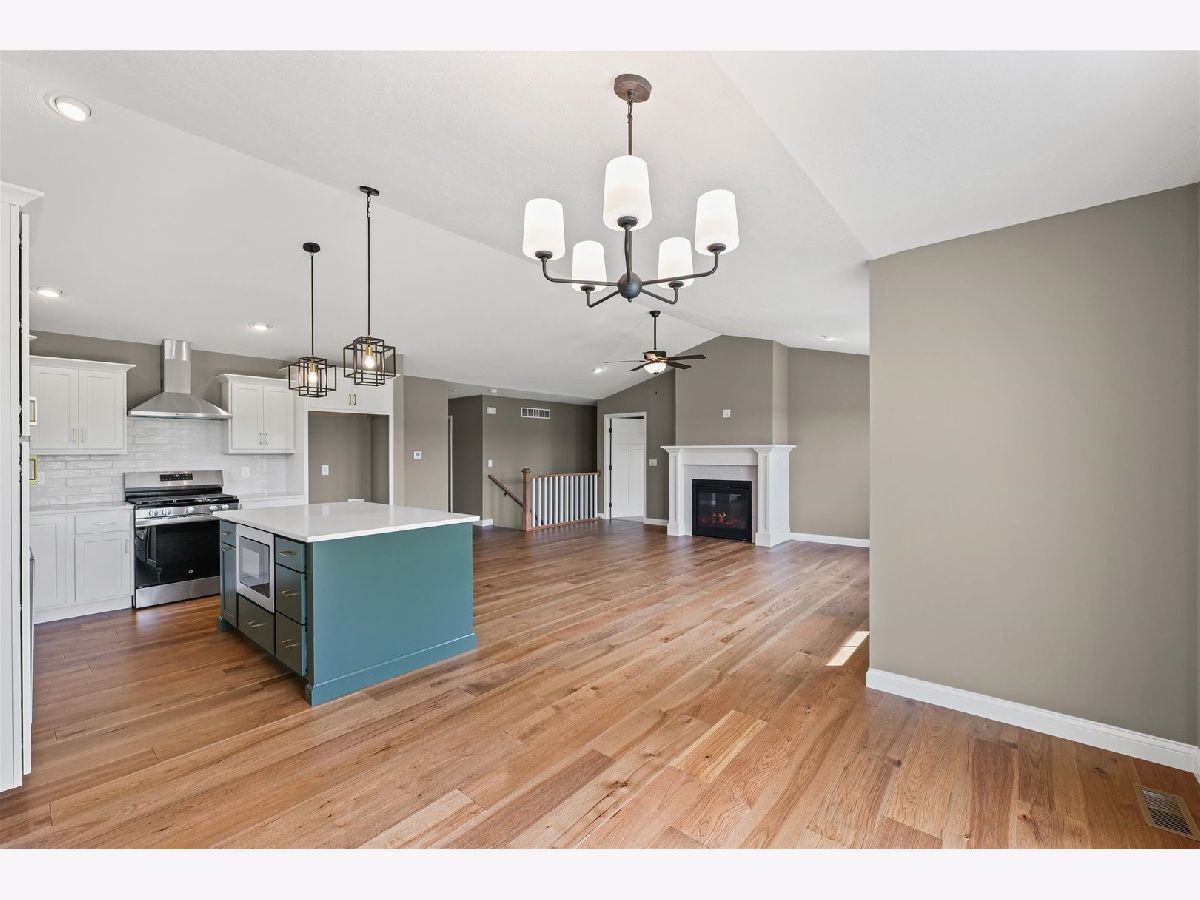 Welcome to this stunning, just-completed new construction ranch in the newly developed and highly sought after Sangamon Fields of Mahomet. This home blends style, functionality, and exceptional design in one of Mahomet's most desirable subdivisions. Step into an open-concept floor plan flooded with natural light and anchored by soaring vaulted ceilings in the great room. The split bedroom layout ensures privacy, with the spacious primary suite tucked away, featuring a luxurious spa-like bathroom with a tiled shower, dual vanities, and a large walk-in closet. The heart of the home is the designer kitchen, complete with crisp white cabinetry, quartz countertops, stainless steel appliances, and a bold, custom-painted oversized island that makes a statement without overwhelming the space, perfectly off-set and tastefully done. Adjacent is a bright dining area with backyard views and easy access to the patio. Additional highlights include: Gorgeous hardwood-style plank flooring, Elegant fireplace with custom mantle, Oversized 3-car garage, convenient built-in drop-zone, Full unfinished basement with bathroom rough-in, and Located in the Mahomet-Seymour School District. Outside, enjoy a clean, welcoming facade with stone accents and modern color contrast. This is the kind of custom quality you rarely find in spec homes, ready for immediate occupancy, so you can start enjoying it today.--