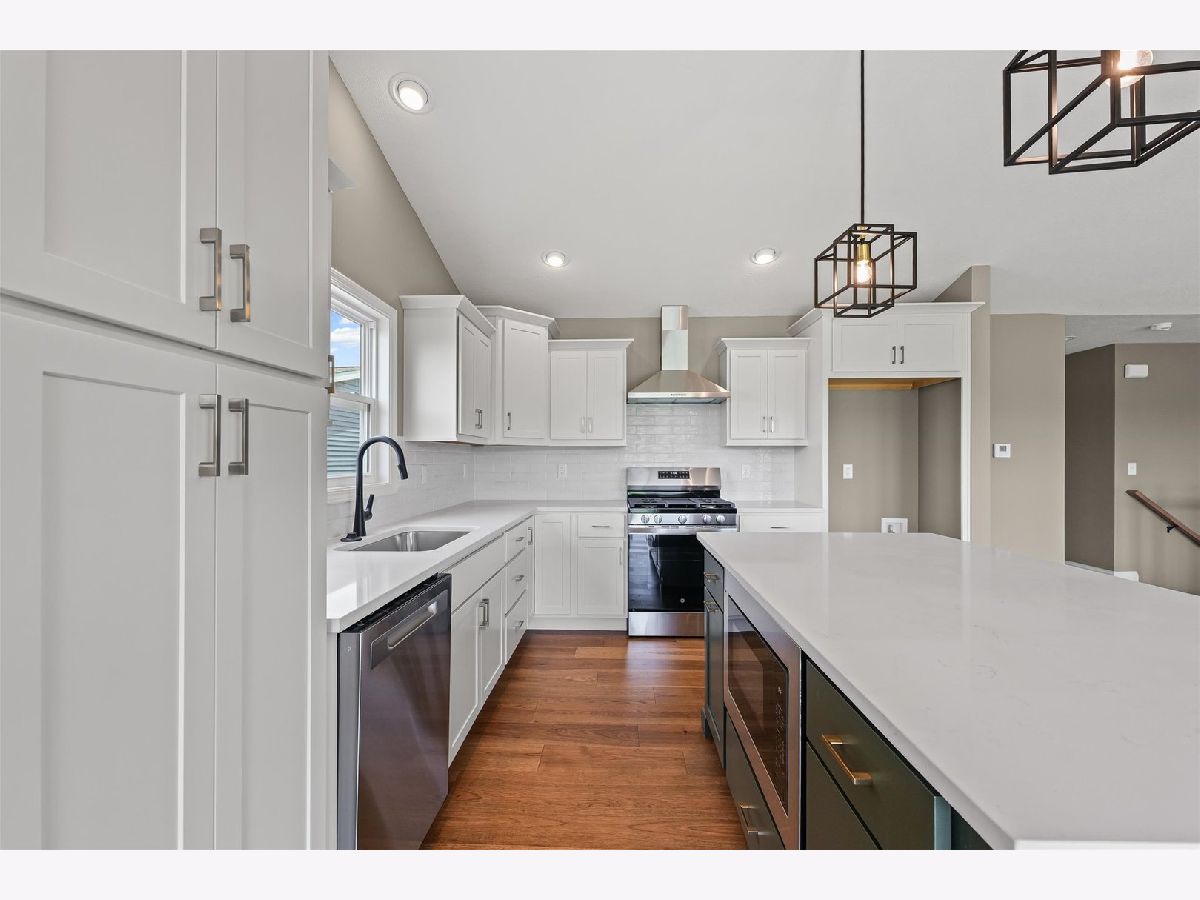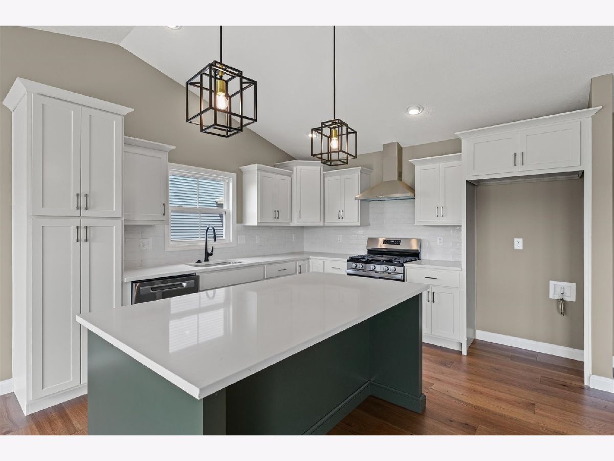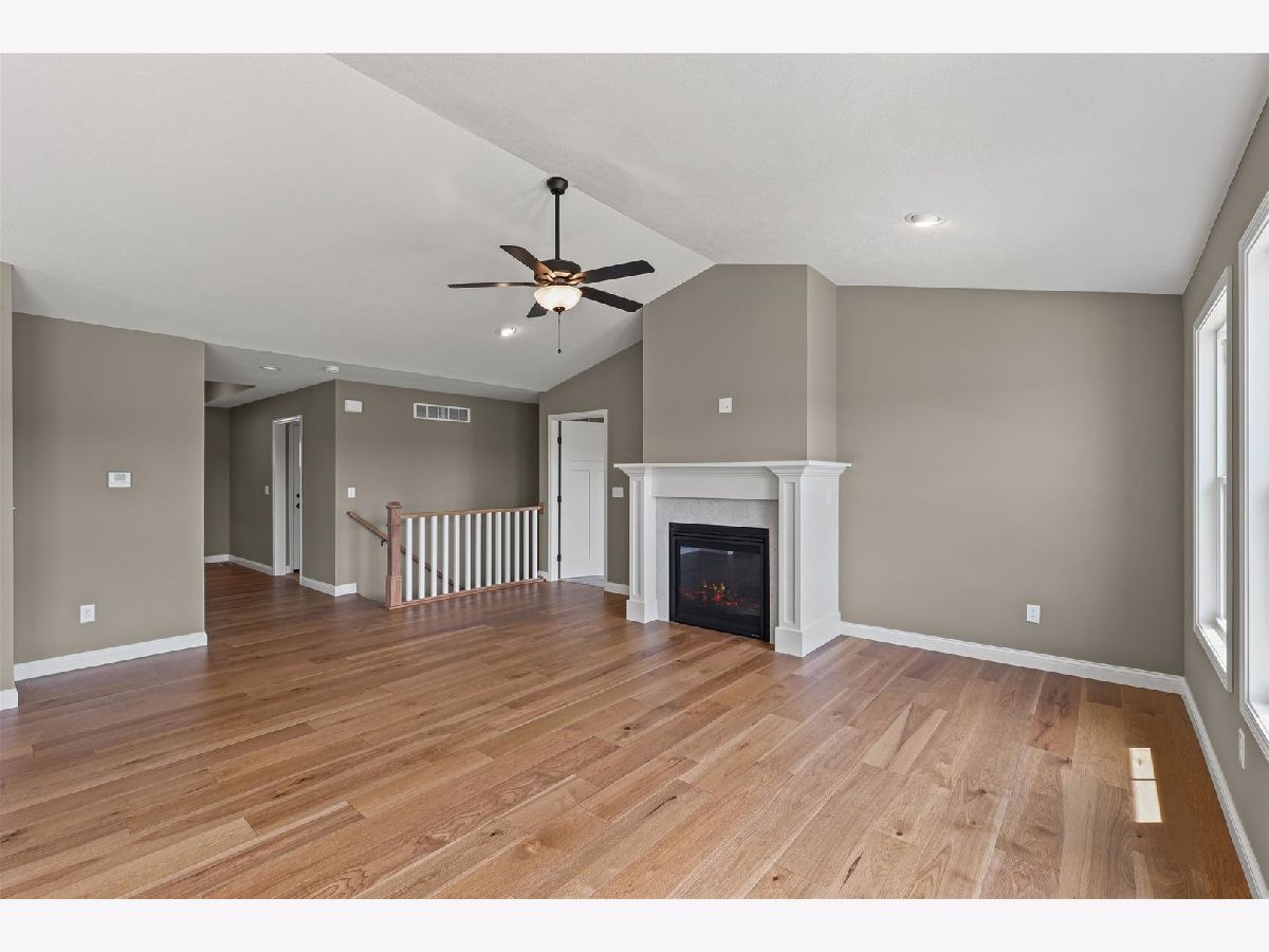 Welcome to this stunning, just-completed new construction ranch in the newly developed and highly sought after Sangamon Fields of Mahomet. This home blends style, functionality, and exceptional design in one of Mahomet's most desirable subdivisions. Step into an open-concept floor plan flooded with natural light and anchored by soaring vaulted ceilings in the great room. The split bedroom layout ensures privacy, with the spacious primary suite tucked away, featuring a luxurious spa-like bathroom with a tiled shower, dual vanities, and a large walk-in closet. The heart of the home is the designer kitchen, complete with crisp white cabinetry, quartz countertops, stainless steel appliances, and a bold, custom-painted oversized island that makes a statement without overwhelming the space, perfectly off-set and tastefully done. Adjacent is a bright dining area with backyard views and easy access to the patio. Additional highlights include: Gorgeous hardwood-style plank flooring, Elegant fireplace with custom mantle, Oversized 3-car garage, convenient built-in drop-zone, Full unfinished basement with bathroom rough-in, and Located in the Mahomet-Seymour School District. Outside, enjoy a clean, welcoming facade with stone accents and modern color contrast. This is the kind of custom quality you rarely find in spec homes, ready for immediate occupancy, so you can start enjoying it today.--