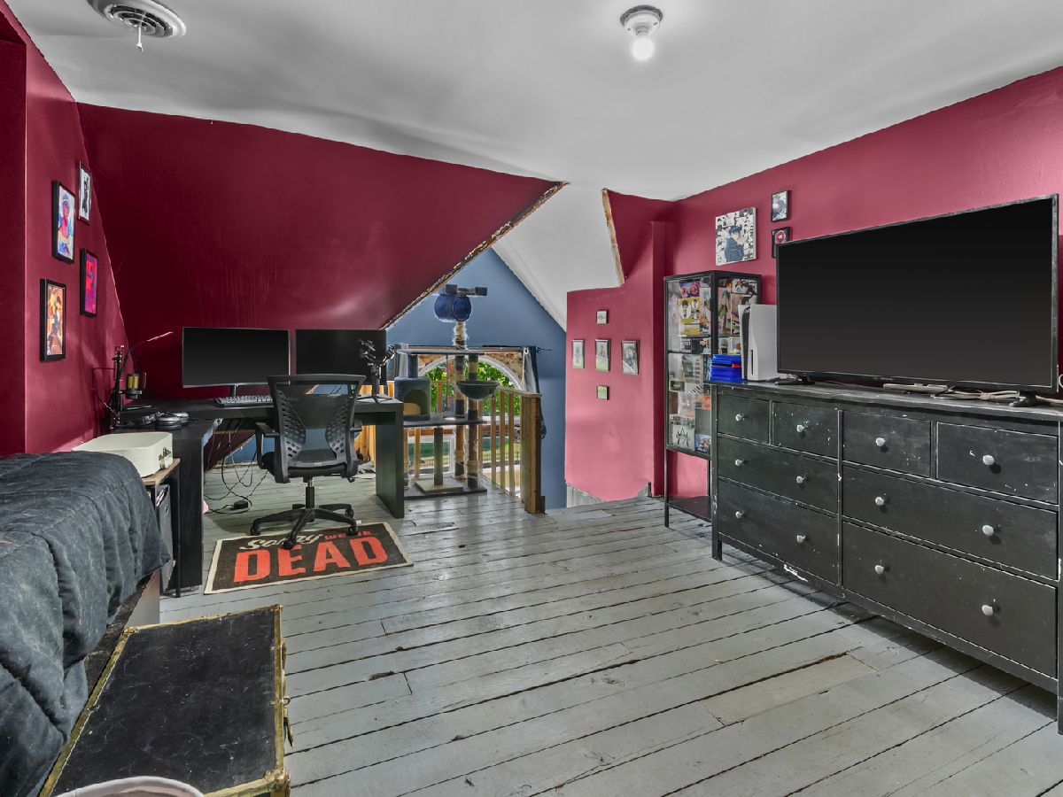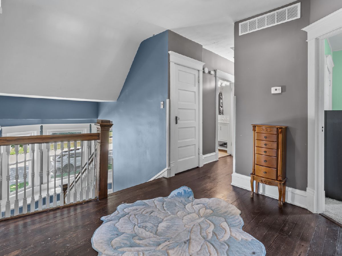 Welcome to this beautifully maintained Victorian home, offering the perfect blend of historic character and modern convenience. With 4 spacious bedrooms and 2 fully renovated bathrooms, this home is filled with timeless charm and functional upgrades throughout. Step onto the inviting front porch-ideal for morning coffee-and through the front door into a grand foyer, complete with a stunning original staircase and a cozy office/library. Hardwood floors flow throughout the main level, where you'll find a formal dining room, kitchen with tile floors, and a bright mudroom with a sliding glass door leading to a new vinyl-fenced yard and freshly built deck. Upstairs features a newly remodeled full bath, generously sized bedrooms-including a custom walk-in closet by Closets by Design in the primary suite-and access to a finished walk-up attic offering added living space perfect for a playroom, studio, or guest suite. The home boasts a long list of thoughtful improvements: 2017: Nearly all new windows with lifetime warranty, electric fireplace with custom tile surround, attic conversion, and more 2018: Full gut/remodel of downstairs bathroom, living room ceiling/drywall/insulation updates, new sliding door and deck, custom closet, and entryway renovation 2019: Beautiful new front landscaping and full upstairs bathroom remodel 2020: Brand-new roof and kitchen sink installation 2022: sump pump and Active radon mitigation system 2025: water heater. The basement provides ample storage and laundry, with optional main-floor laundry hookups already in place behind the mudroom wall. This move-in-ready home combines vintage elegance with the modern touches today's buyers appreciate. Don't miss your chance to own a piece of history-updated for modern living!