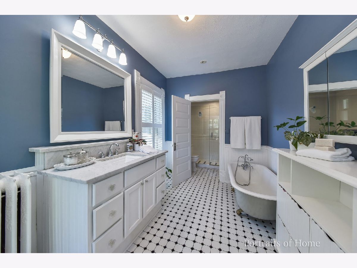 Located in the heart of Wheaton's Historical District, this unique Victorian beauty is a showstopper with its stunning wrap around front porch. Revel at the exquisite original woodwork, sizable pocket doors, towering ceilings, grand staircase, gleaming hardwoods, transom windows, built in cabinetry, and large bedrooms with ample closet space. Boasting unprecedented charm and character, this beautifully maintained historic home offers plenty of sun-filled and generous sized rooms. Enjoy your morning coffee in the inviting sunroom or on the handsome porch! Family room provides the option of being converted into first floor bedroom/ in-law suite. First floor full bathroom is a bonus for this age of house. Master en suite features bay window, walk-in closet and a gorgeous bath complete with clawfoot tub and separate large walk-in shower. Second floor laundry adds convenience to life. Full, walkout partially finished basement features oversized recreation room, sound proof room and storage room. The professionally landscaped, oversized fenced-in yard provides plenty of space to entertain family and friends, barbecue on the brick paver patio or gather around the fire pit. Fantastically located close to downtown Wheaton, Metra, Memorial, Adams and Northside parks. Walking distance to Wheaton's award winning schools - Longfellow Elementary , Franklin Middle and Wheaton North High. Roof, windows, gutters, soffit & fascia completed within the past 7 years. This extraordinary house is waiting for that exceptional new owner who will appreciate the character and location of this vintage gem!