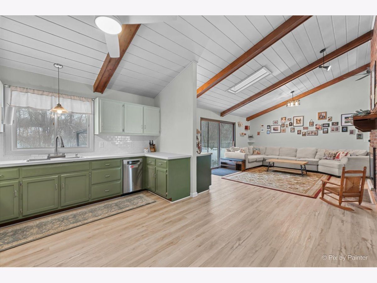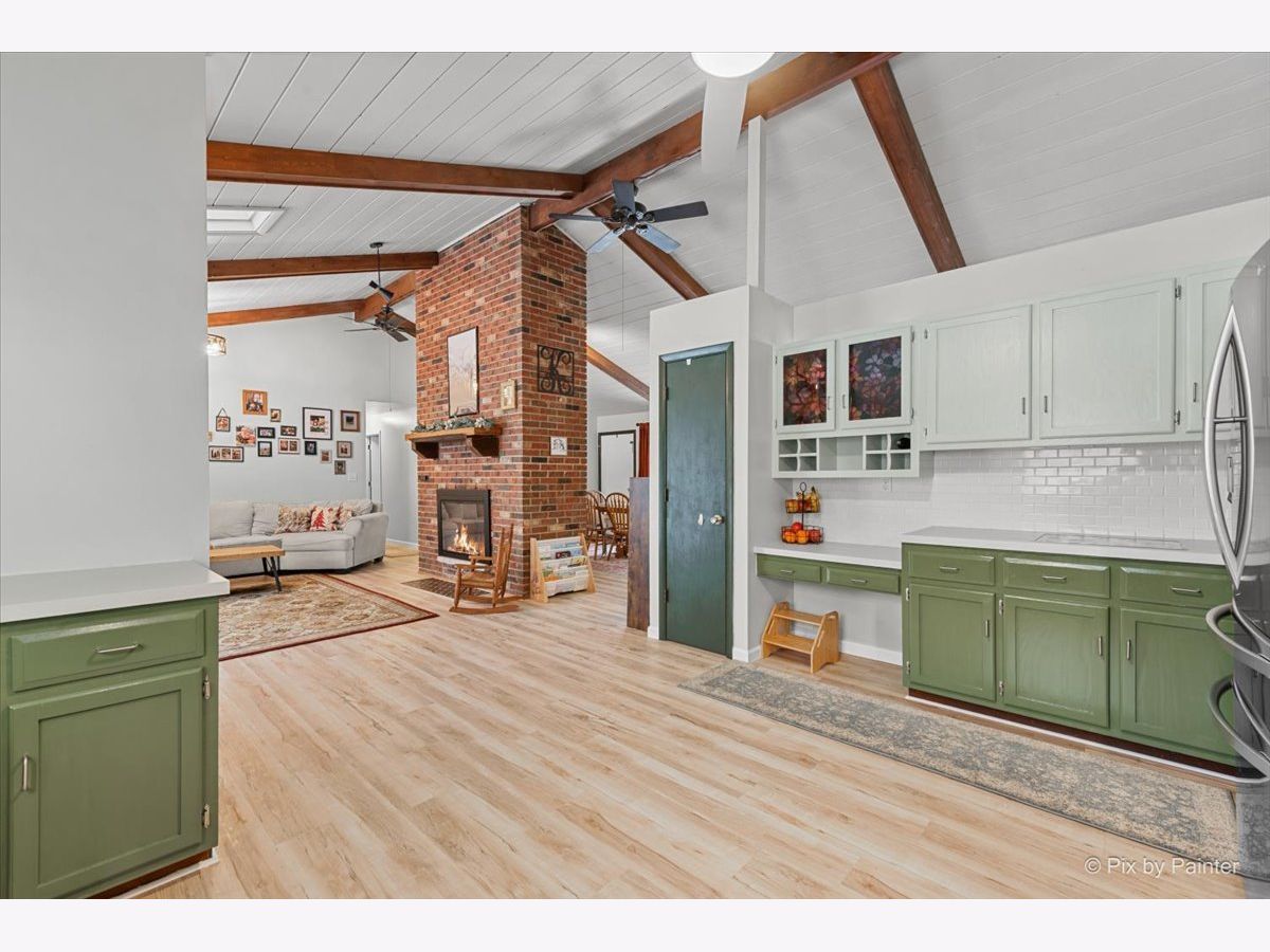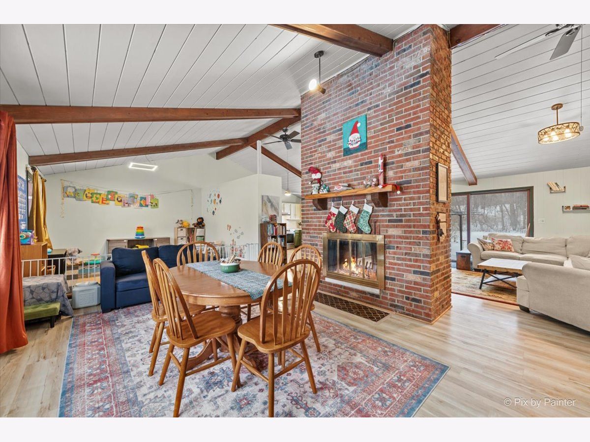A New Home in the New Year! This renovated Mid-Century Modern 3-bed, 2-bath home sits on a little over an acre in the highly sought-after Goose Lake area. The entry highlights a dual-sided fireplace and vaulted wood-beamed ceilings. Updates include new kitchen appliances, refinished cabinets, full interior paint, and LVP flooring throughout. Both bathrooms are updated, a new washer and dryer are installed, and the home features new mini-splits along with updated plumbing, electrical, and ductwork. The layout offers a family room, living room, dining room, and an eat-in kitchen with generous cabinet and counter space. The primary bedroom is en suite. The garage includes a dedicated work area suitable for gardening or home projects. The private country lot provides room for a future greenhouse or pole building. A peaceful retreat in a scenic setting, with full Goose Lake access for year-round recreation; fishing, boating, and relaxing. Golf-cart access makes it easy to enjoy the lakes and all community amenities! New cedar fence, keypad to garage & RO system hooked up to refrigerator! For the Gardner; come spring you will have an already established garden waiting for you to take over! Get ready for sweet peas, butter beans, lettuce, radishes- purple, red, white. Chamomile, calendula, marigolds, nasturtiums, squashes, garlic, walking onions, chives, Italian and Greek oregano, lemon thyme. There are 3 different types of blackberries, multiple raspberries and currants. Strawberries and a fig tree that's currently mulched. Paw paws. The freshly planted trees are apple, pear, two plums, a peach and a nectarine. This is truly special!! Don't miss this! Motivated Seller!!