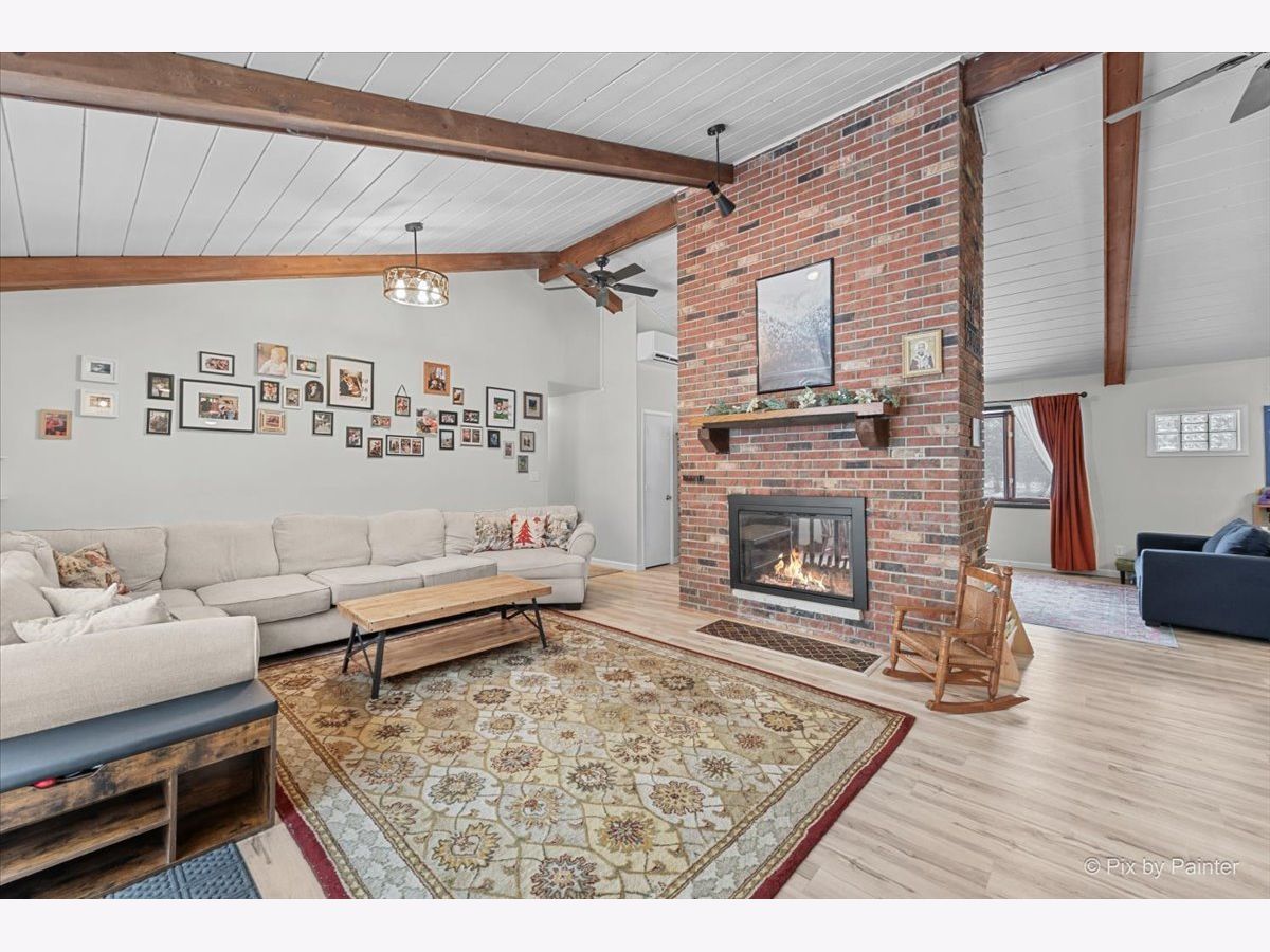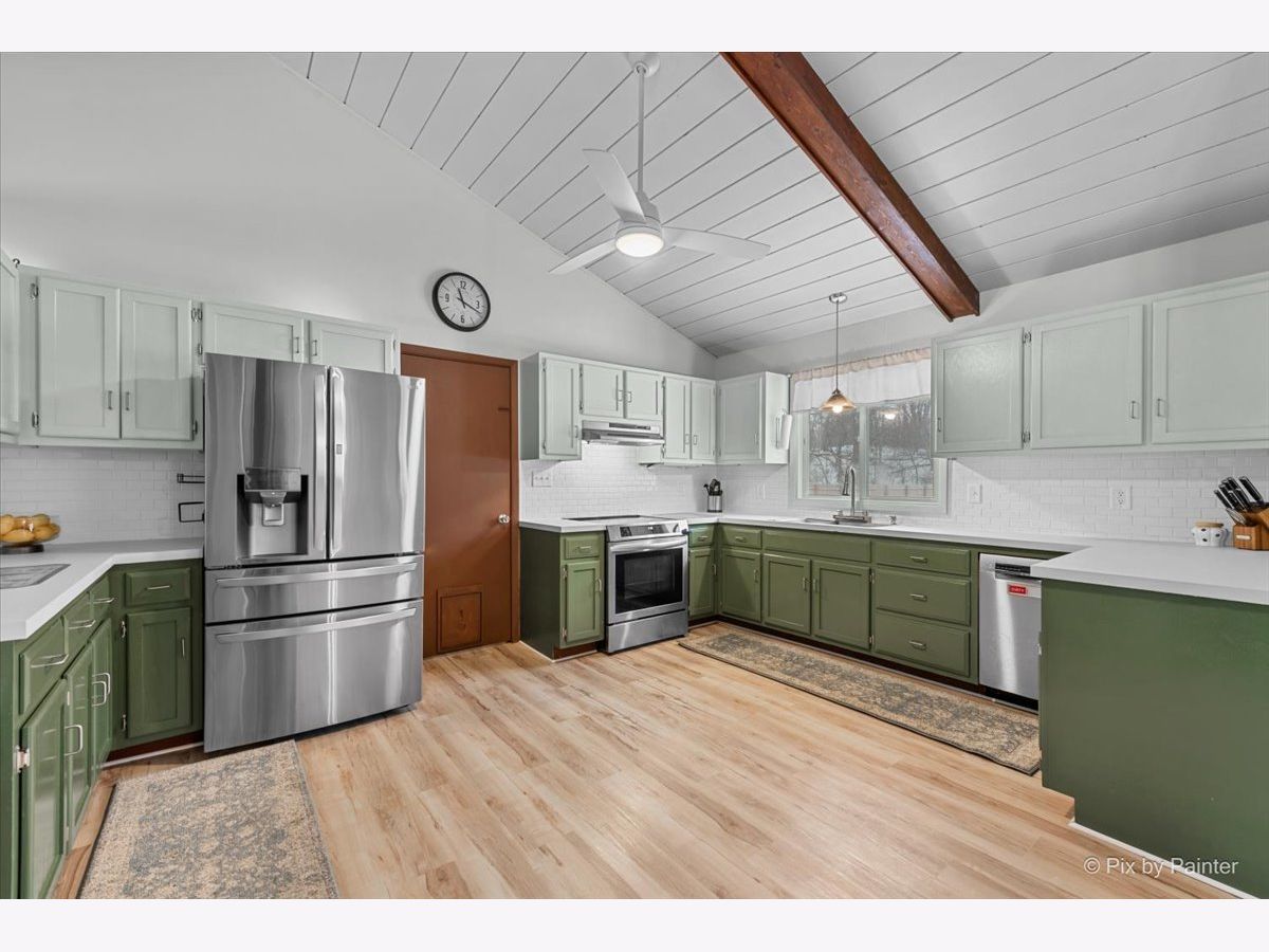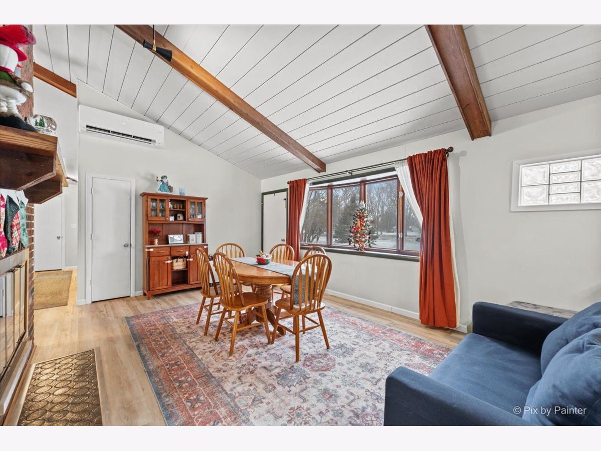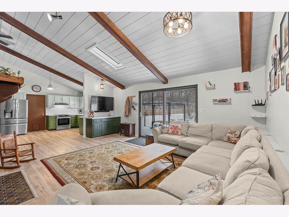 A New Home in the New Year! This renovated Mid-Century Modern 3-bed, 2-bath home sits on a little over an acre in the highly sought-after Goose Lake area. The entry highlights a dual-sided fireplace and vaulted wood-beamed ceilings. Updates include new kitchen appliances, refinished cabinets, full interior paint, and LVP flooring throughout. Both bathrooms are updated, a new washer and dryer are installed, and the home features new mini-splits along with updated plumbing, electrical, and ductwork. The layout offers a family room, living room, dining room, and an eat-in kitchen with generous cabinet and counter space. The primary bedroom is en suite. The garage includes a dedicated work area suitable for gardening or home projects. The private country lot provides room for a future greenhouse or pole building. A peaceful retreat in a scenic setting, with full Goose Lake access for year-round recreation; fishing, boating, and relaxing. Golf-cart access makes it easy to enjoy the lakes and all community amenities! New cedar fence, keypad to garage & RO system hooked up to refrigerator! For the Gardner; come spring you will have an already established garden waiting for you to take over! Get ready for sweet peas, butter beans, lettuce, radishes- purple, red, white. Chamomile, calendula, marigolds, nasturtiums, squashes, garlic, walking onions, chives, Italian and Greek oregano, lemon thyme. There are 3 different types of blackberries, multiple raspberries and currants. Strawberries and a fig tree that's currently mulched. Paw paws. The freshly planted trees are apple, pear, two plums, a peach and a nectarine. This is truly special!! Don't miss this! Motivated Seller!!