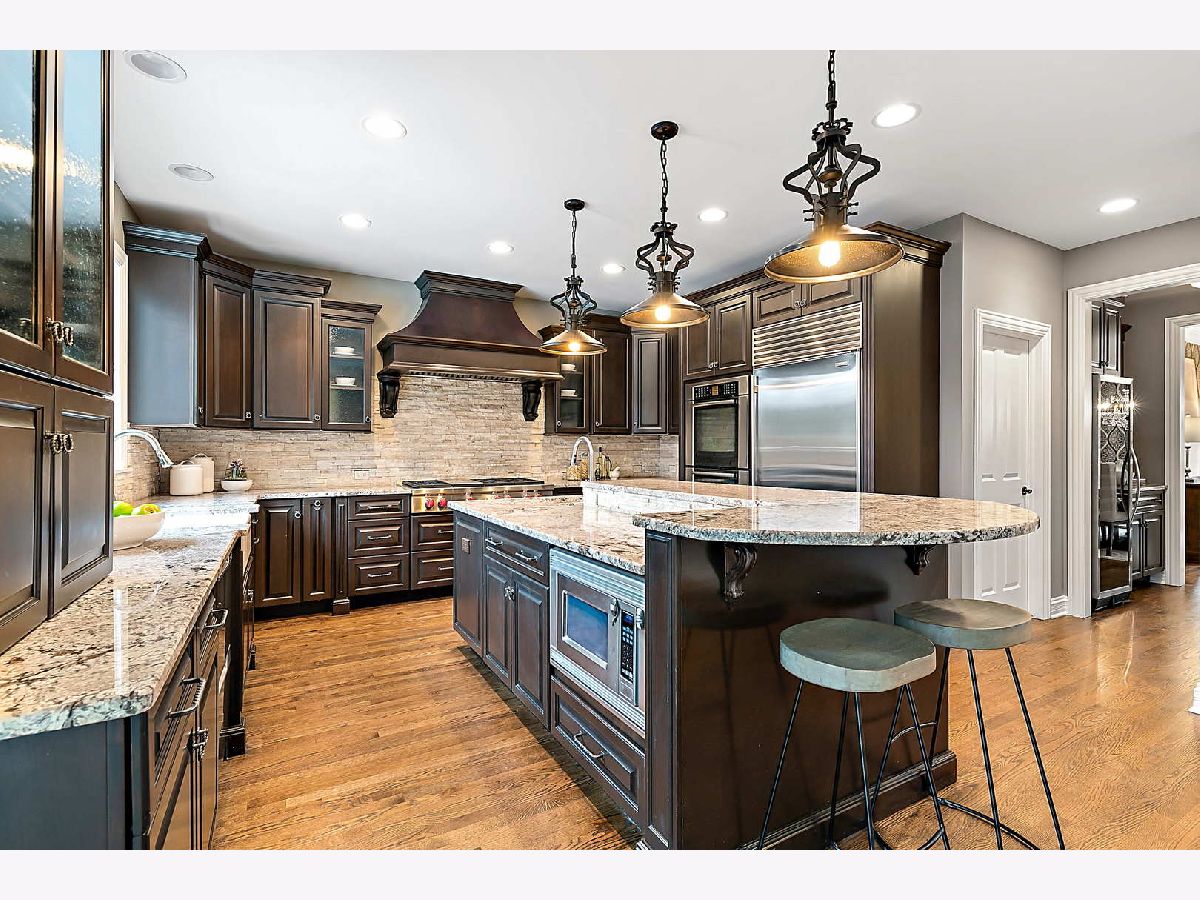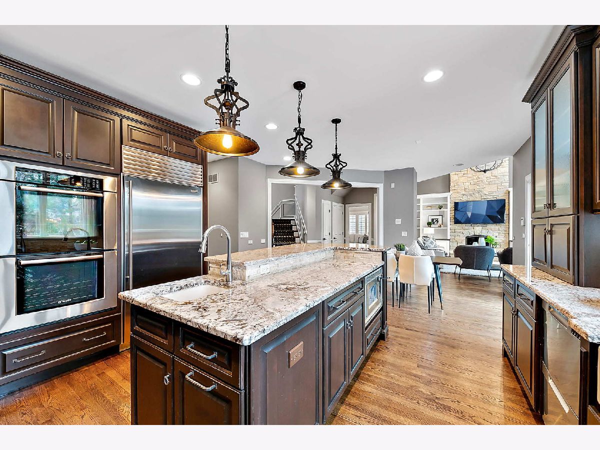 This idyllic setting sets the stage for the ultimate entertainer's home with large and open floorplan, combined with a magnificent outdoor space and a lower entertainment level with a fifth bedroom and kitchen. A stunning residence, it completes the vision of the Hinsdale lifestyle with fine quality craftsmanship throughout. A captivating brick, stone and cedar facade leads to exquisitely designed interiors of nearly 5,000 square feet. The main level living space has been prioritized for entertaining with a welcoming foyer and double-height ceilings leading to a large formal dining room with a butler's pantry/service area and wine fridge. Anchored by a striking floor-to-ceiling stone fireplace and custom built-ins, the brightly lit family room opens up from the breakfast nook and kitchen, and overlooks the picturesque backyard. A private sitting room/playroom and adjoining office/living room offer the flexibility of creating two home offices, if there is a need. As for the kitchen, it's pure luxury with a large island, Normandy Collection cabinets, granite countertops, a Sub-Zero fridge, 2014 Wolf range, Bosch oven and a 2018 Fisher Paykel dish drawer. A sliding door takes you to the private, fenced-in backyard where a professionally landscaped setting awaits with low maintenance artificial turf, a heated salt-water pool, outdoor pool storage, outdoor surround speakers and firepit with gas starter. Entertain guests here or take them to the lower level lounge with a massive rec space/second family room, wet bar and kitchen, plus an extra bedroom for guests and full bath. Upstairs, there are three ensuite bedrooms with walk-in closets, plus a spectacular primary bedroom suite with its dual walk-in closets and sumptuous spa bath with a soaking tub, shower, large vanity and heated porcelain floors. Enhancing the day-to-day experience of the home, there's a Sonos ready sound system, an attached 3-car garage with plenty of storage and other modern-day tech enhancements. Hinsdale living at its finest. (The home is part of the Golfview Hills community, which is situated around a 34-acre lake with multiple parks. The lake provides residents with non-motorized boating and fishing, as well as ice skating in the winter. The lake and parks are a gathering spot for social activities and clubs including bocce and a yacht club.)