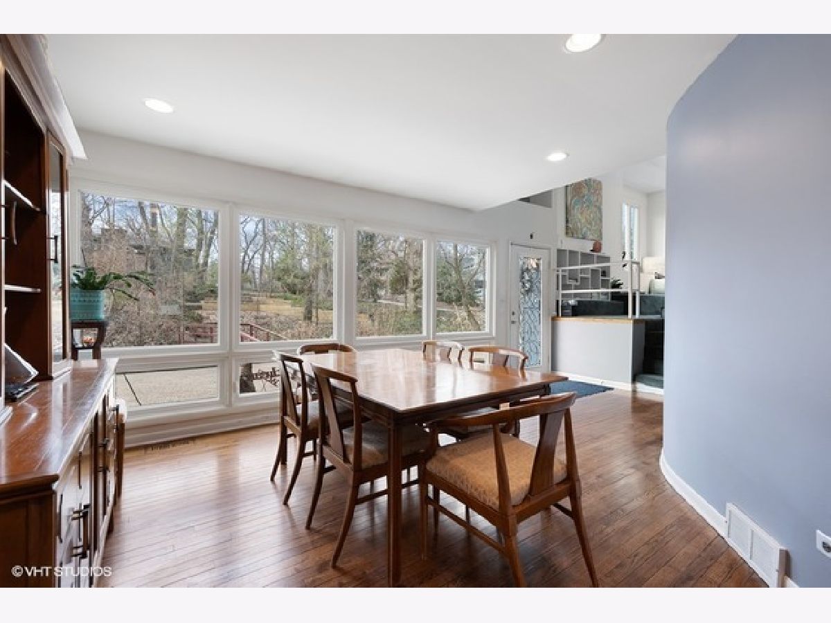 This modern home is sure to impress and is tucked into one of the most private and coveted areas of Glen Ellyn! Its unique architecture brings the outdoors in with large windows, high ceilings and skylights. Enjoy the 1.75 acres of private land and wildlife. This 2 story home with attached 2 car garage has just under 3500 sq ft of open living space. Main floor has living room with built in seating, dining room, family room with fireplace, kitchen, laundry room, 3 season room and half bath. There are 4 bedrooms upstairs with 2 baths. Primary suite has updated bathroom with double sinks and soaking tub as well as custom closets with built in storage. Don't miss the kids bonus hideaway loft that connects over the 2 back bedrooms. Perfect for sleepovers and extra playroom. The 4th bedroom would make a perfect office as it overlooks the rest of the home. The partially finished basement, with new carpet ,makes a perfect Rec Room and offers tons of storage. Enjoy the tranquil outdoors from the attached 3 season room! Deer are frequently spotted sharing the morning sun. You will feel the tranquility while still having all the conveniences of walk to town and school. This is a one of a kind home that offers the best of both worlds. Buy it and make it your dream home! Many updates including: Roof, windows, HVAC, Water Heater and Sump Pump