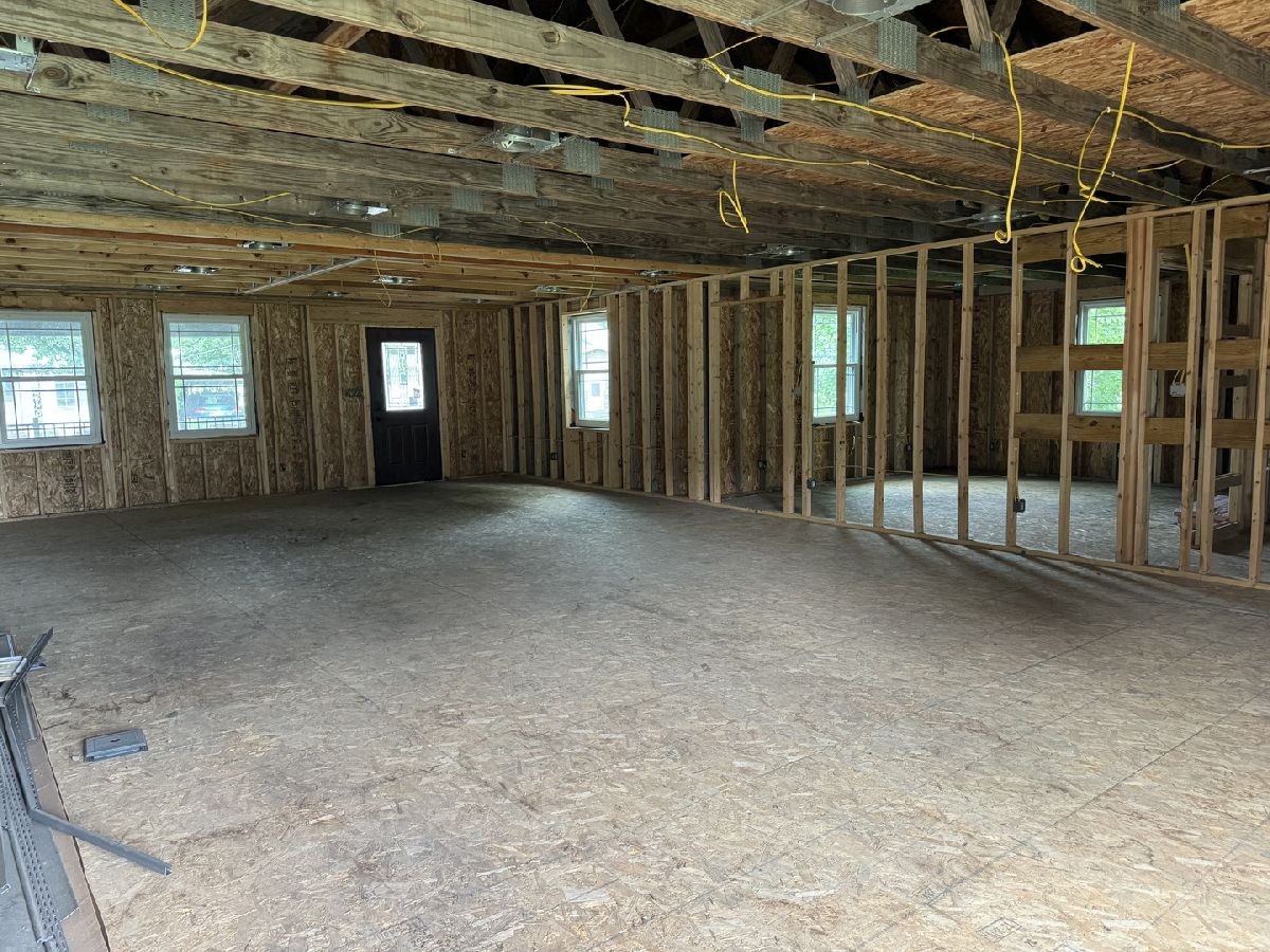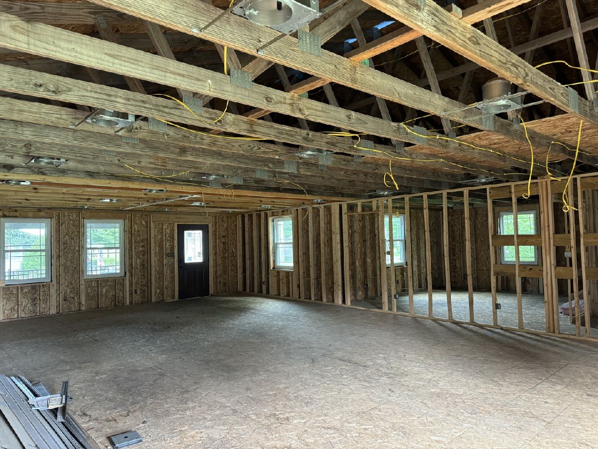 This property presents a unique opportunity to create your dream home! The existing unfinished interior is framed for large main bedroom with main bathroom and walk in closet. Off the new covered porch is a living room with an open floor plan connecting to the kitchen area. There is also a half bathroom off the kitchen, with a doorway that leads to west addition, which could be finished living space. All water lines and drain lines have been updated. All electrical work, including wiring and lighting is new. The roof is new with Owens Coming architectural shingles. All new vinyl siding and aluminum soffit and fascia. All floor joists, beams and subfloor are new. The foundation has been updated with new LVL support beams in the crawlspace. All new windows. The back exterior has potential for additional living space. Once the additions are complete the total square footage of the property will be 2,658. Come transform this blank canvas into your dream home!