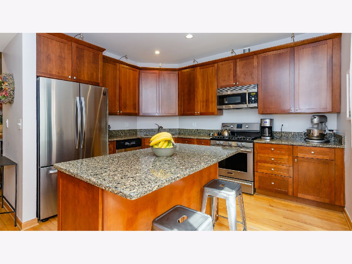 Rarely available townhome on quiet tree lined cul-de-sac in Little Italy's popular Garibaldi Square. True 3 bedroom plus family room plus loft/office with 2.2 baths. First floor family room has a wood burning fireplace, custom lighting, and leads to a beautifully landscaped private patio. The second floor offers a large, open living room/dining room with wood burning fireplace, built-in cabinets, hardwood floors, and a picturesque bay window. Bright and spacious kitchen with 42" cherry cabinets, granite counter tops, island with breakfast bar, stainless steel appliances, and sliding doors to balcony for easy grilling. Separate utility room with full sized side-by-side washer and dryer, tankless water heater, and furnace. Three bedrooms on one floor including primary bedroom with walk-in-closet, vaulted ceilings, and ensuite bathroom with separate whirlpool tub and shower. 4th floor loft/office space with custom built-in desks, skylights, and large adjacent storage room. Many recent updates include zoned heating and central air, tankless water heater, new skylights, new refrigerator, new composite decking on balcony, custom built-in desks in loft, professionally organized closets, and more. Attached one car garage plus parking pad. Assessments include Comcast basic cable and Blast Internet with 200 MBPS. Amazing location: Stem Magnet Academy, Skinner, Andrew Jackson Language Academy, and Whitney Young HS. Arrigo Park, Garibaldi Park and Sheridan Park out your front door. Close to UIC, Rush Medical District, Blue and Pink Line CTA and 290 expressway. Walk to Taylor Street and West Loop dining, shopping, and nightlife.