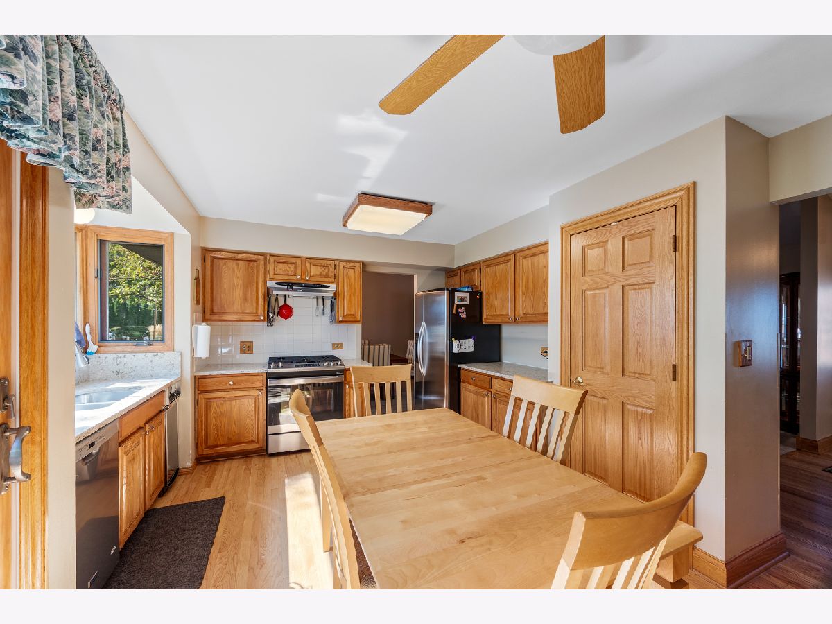 Gorgeous curb appeal welcomes you to this upgraded Salford model split with sub-basement. Entire home was extended by 1 foot on each side (or total of extra 2 feet) of the home on the east & west side. 2 car garage with custom fiberglass door. Hardwood floors in 1 bedroom, stairs & Family Room. Kitchen with hardwood floors, all appliances, pantry and custom build cabinet for plates, glass, pots & pans storage plus granite countertops. Ice maker & water dispenser in Refrigerator. Wooden sliding glass doors to exit to yard. Built out kitchen windows for plenty of lighting. Generously sized master suite with his & hers walk in closet, a second large closet and upgraded full bath and stand-up shower. Two other spacious bedrooms w/ walk-in's closets. Family room w/ roughed in pad for fireplace, build in bar and storage for glasses. Custom triple Pella doors leading to custom cement patio. Custom build shed for extra storage space. Furnace & A/C replaced in 2020. Roof has been replaced. Cement walkway to back yard. Large yard. Mature trees surround the home. Walking distance to September Fest, Art Fair, Prairie Center for the Arts & Summer Breeze Concerts. The beautiful Municipal grounds also include scenic pond & Art Walk. Spring Valley Nature Sanctuary & more! Award winning Schools include Nerge Elementary School, Meade Junior High School, and District 211 J B Conant High school. Minutes to Woodfield & library.