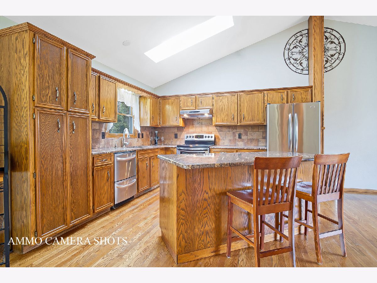 Don't miss this beauty!! Over an acre of land backing to a forest preserve that will have you feeling like you are on vacation. Beautiful hardwood floors run through the main and upper level. This home is made for entertaining inside and out. Large open concept Kitchen boasts tons of cabinets, granite counters, and a breakfast bar that all flows into the living room and dining room. Master bedroom with his and hers closets and a gorgeous master bath. Two other bedrooms and another gorgeous bathroom complete the upstairs. Lower level includes a family room with travertine tile and a wood/gas fireplace, a fourth bedroom and another full bathroom. Bonus recreation room in the basement. Sound system on the main level and family room. Heated 3 car garage. 14 station, 3 head sprinkler system. Whole house filtration system. Reverse osmosis system in the kitchen. Roof 2013. Well pump, ejection pump, and lift pump replaced in 2018. Furnace 2009.
