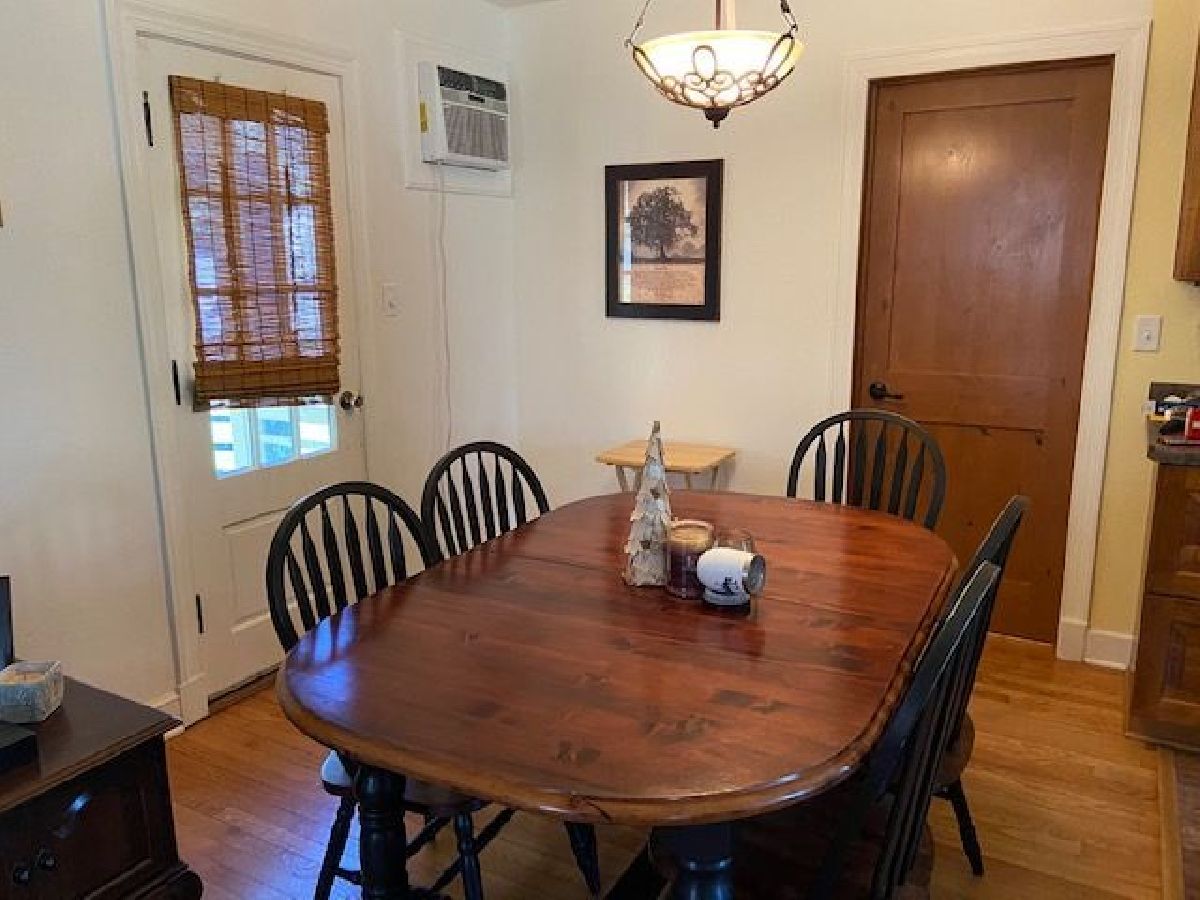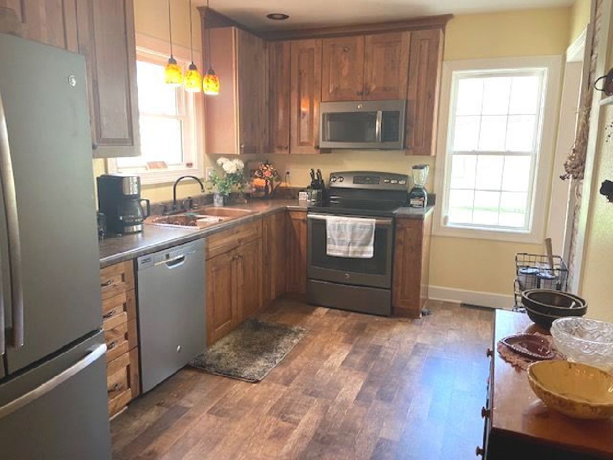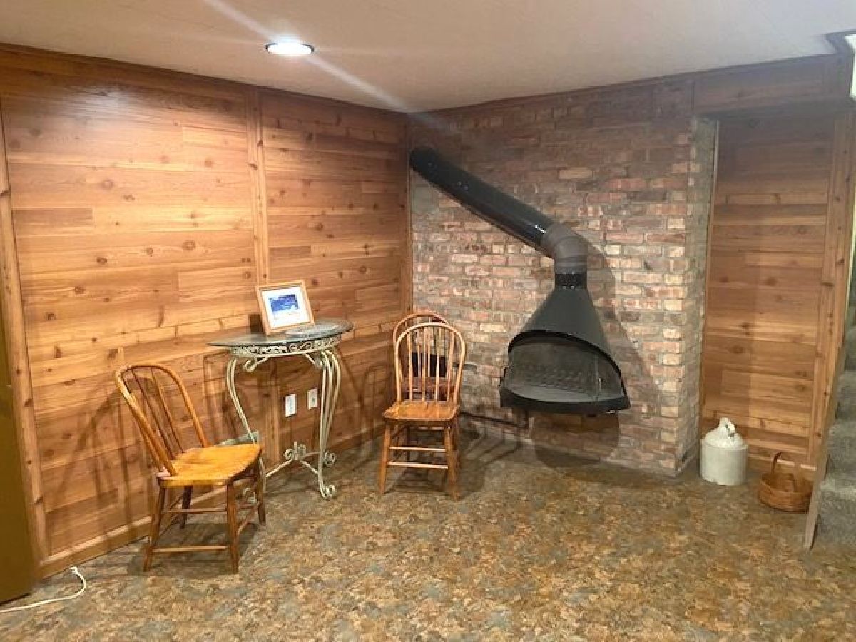 So cute ~ 2 car garage , kitchen, and back room totally replaced in 2014 due to a fire, new sidewalk, stoop, furnace and central air - 3 years,, (wall units were previous to central air being installed) 3 bedrooms upstairs , 4th bedroom/den on main floor with a full bath, finished family room with wood burning stove in basement, fenced back yard.