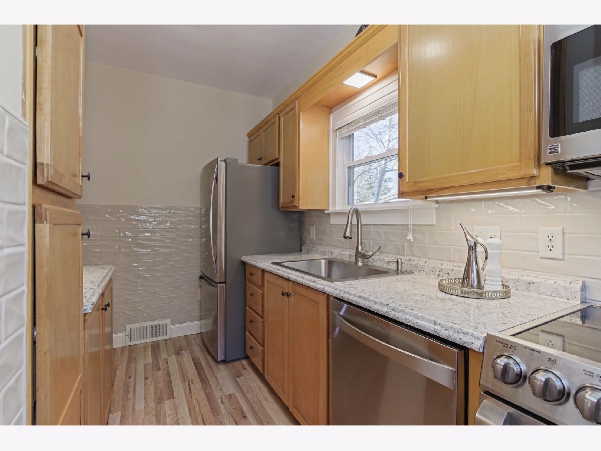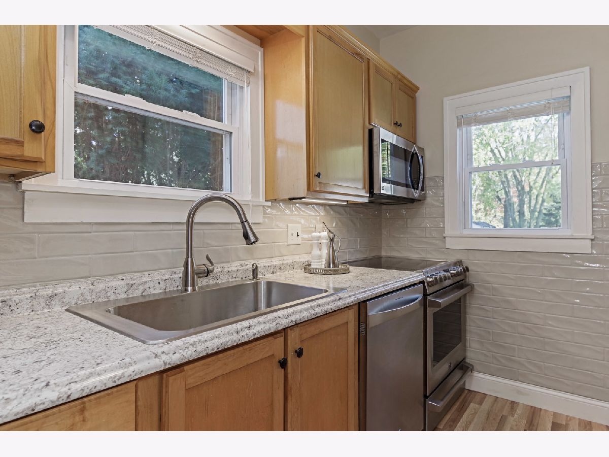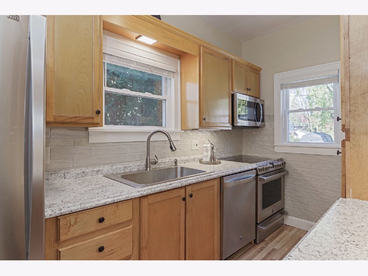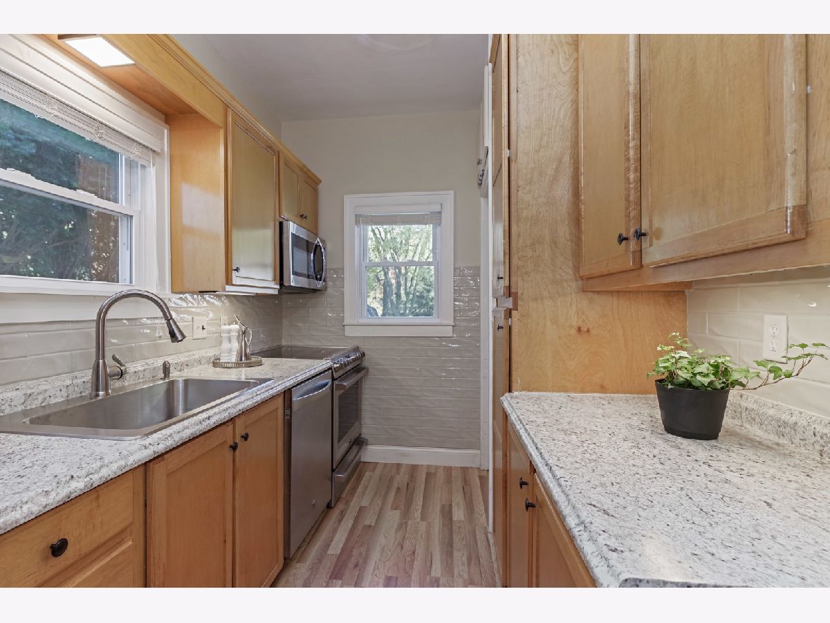 Welcome Home! Character & charm are here for you. Fantastic location so close to Oakland grade school. Updated kitchen and bath up. Kitchen has New countertops, some cabinets, special tile on backsplash & wall and new wood look flooring too. 3 Bedrooms and 2 Baths with a 2 1/2 car garage. Basement is finished with second bath and room used as a bedroom, but no egress. Lux landscaping and extra nice deck refinished too. Front porch is enclosed and is such a special additional room. First floor bedroom is used as a den now with nice shelving. Wood floors and trim accent the home. Pride of ownership shows everywhere.