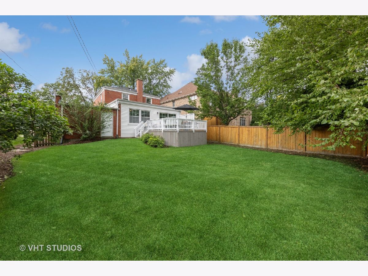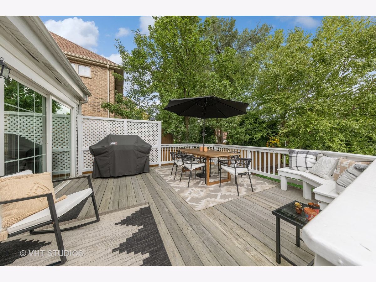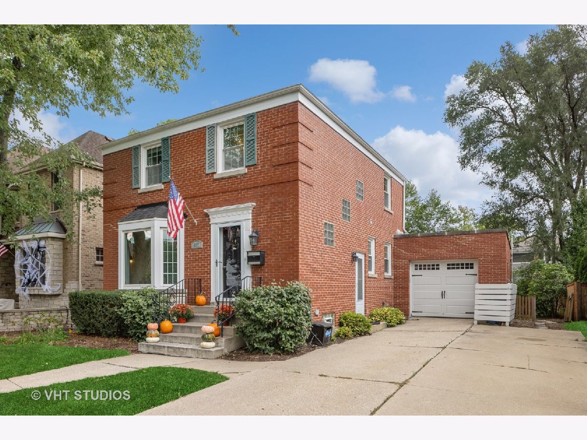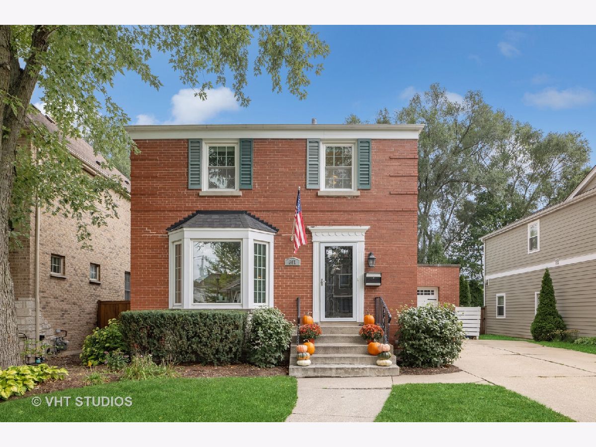 Classic brick Georgian on the best block in town. Step through arched entry into bright and sunny living room with large bay window. Beautiful hardwood floors and architectural details throughout home. Updated kitchen features custom shaker cabinets, quartz countertops, marble backsplash and stainless steel appliances. Huge family room addition opens to back deck and lovely backyard oasis. Three generous bedrooms and a renovated full bath with subway tile. Great closet space. Finished basement makes a perfect playroom, exercise room and office while including ample storage. Dual zone heating & cooling. Ideal location walking distance to Lincoln Elementary school, Prairie Path, Spring Road shops & restaurants, parks, and Elmhurst Farmer's Market!