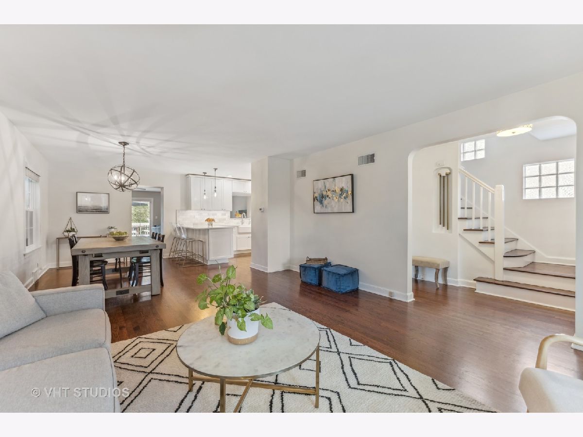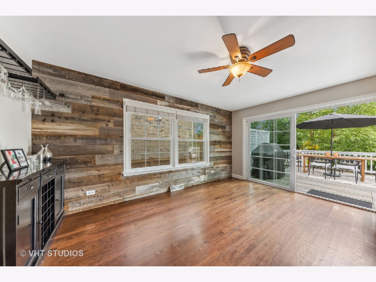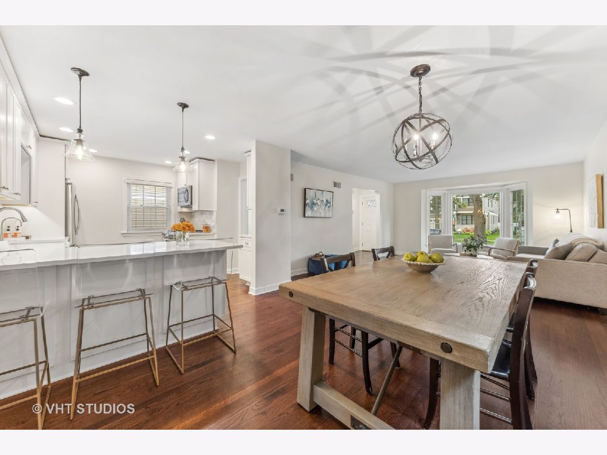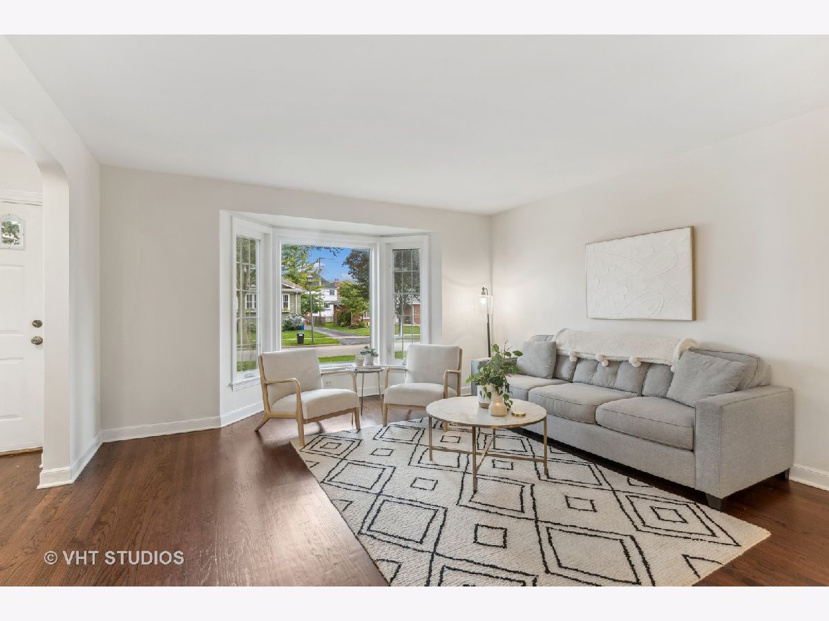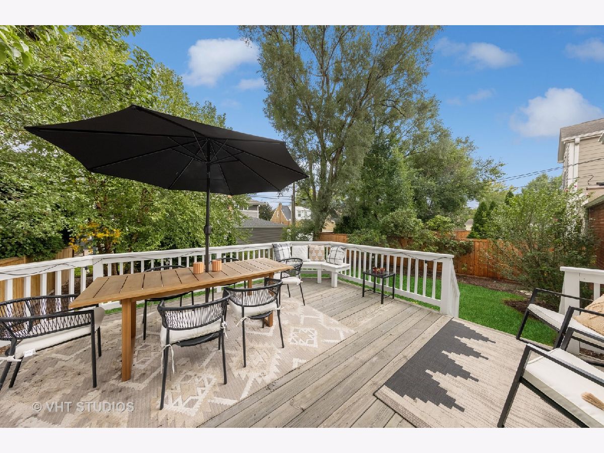 Classic brick Georgian on the best block in town. Step through arched entry into bright and sunny living room with large bay window. Beautiful hardwood floors and architectural details throughout home. Updated kitchen features custom shaker cabinets, quartz countertops, marble backsplash and stainless steel appliances. Huge family room addition opens to back deck and lovely backyard oasis. Three generous bedrooms and a renovated full bath with subway tile. Great closet space. Finished basement makes a perfect playroom, exercise room and office while including ample storage. Dual zone heating & cooling. Ideal location walking distance to Lincoln Elementary school, Prairie Path, Spring Road shops & restaurants, parks, and Elmhurst Farmer's Market!