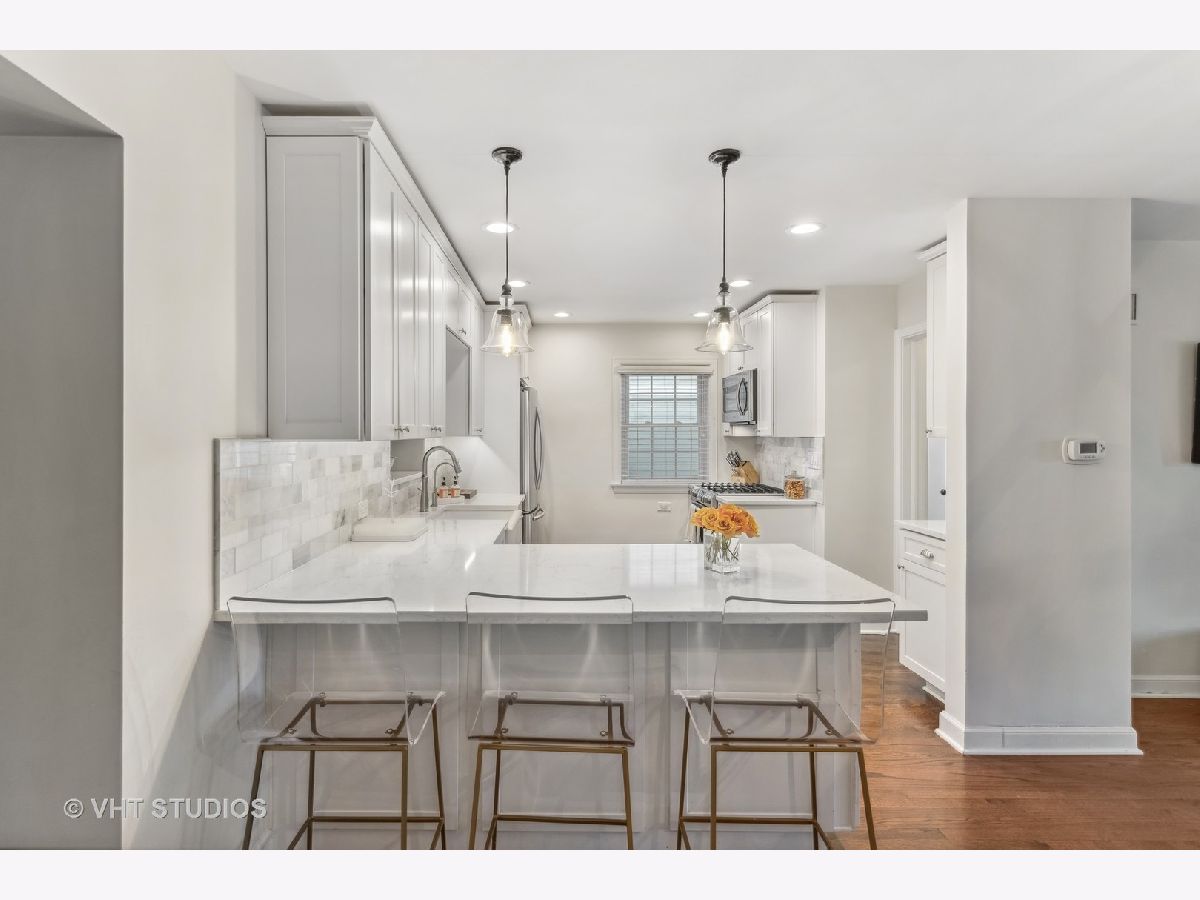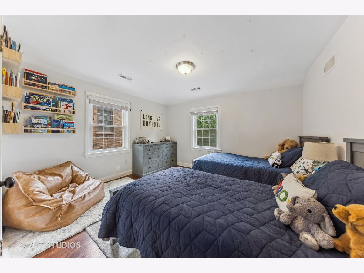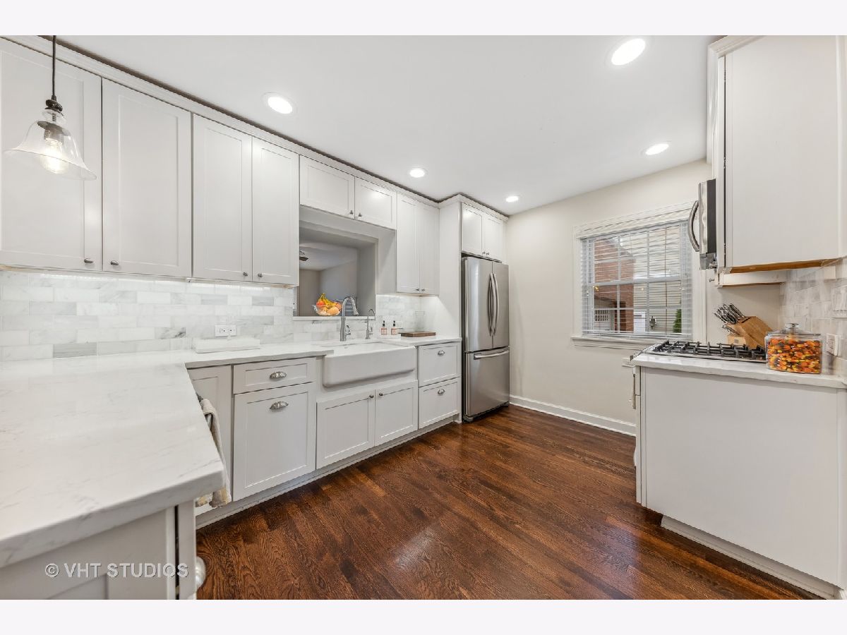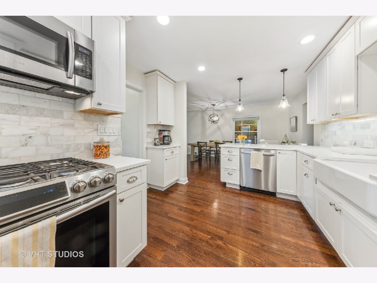 Classic brick Georgian on the best block in town. Step through arched entry into bright and sunny living room with large bay window. Beautiful hardwood floors and architectural details throughout home. Updated kitchen features custom shaker cabinets, quartz countertops, marble backsplash and stainless steel appliances. Huge family room addition opens to back deck and lovely backyard oasis. Three generous bedrooms and a renovated full bath with subway tile. Great closet space. Finished basement makes a perfect playroom, exercise room and office while including ample storage. Dual zone heating & cooling. Ideal location walking distance to Lincoln Elementary school, Prairie Path, Spring Road shops & restaurants, parks, and Elmhurst Farmer's Market!