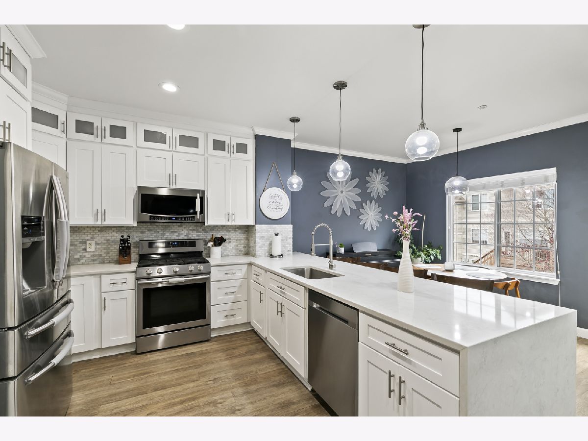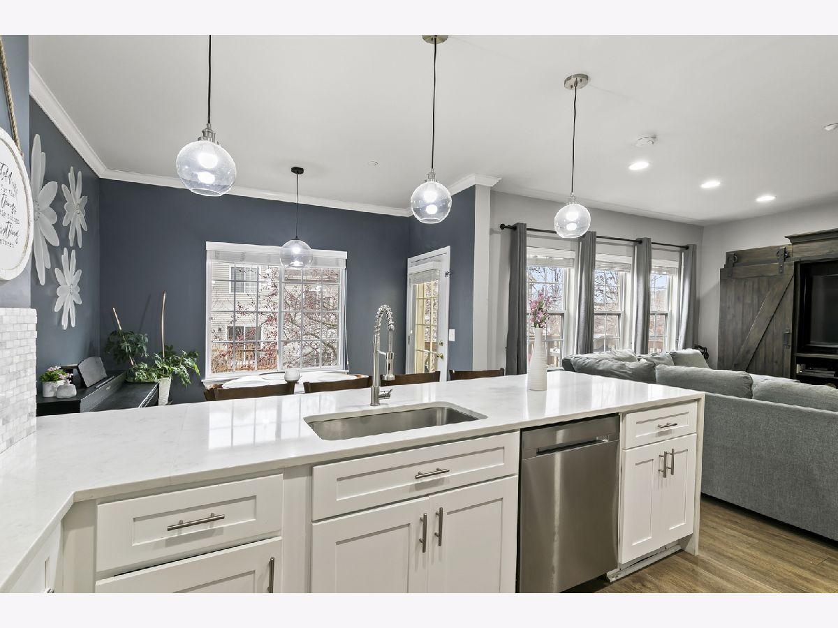 Welcome home to this beautifully updated 3 bedroom 3 and a half bath townhome in Canterbury Fields. Enjoy multiple levels of living in this spacious and airy home. The main level has a completely updated kitchen with stainless steel appliances, quartz countertops with waterfall peninsula and marble mini-subway tile backsplash. The open-concept Kitchen is open to the front rooms and adjacent to the dining area that flows out onto the porch. Such a great layout for entertaining and great natural light with the high ceilings and full wall of windows. The Main level also has luxury vinyl plank flooring and recessed lighting. The primary suite is on the next level up and it does not share the level with any of the other bedrooms. It has a walk-in closet, vaulted ceilings and bathroom en-suite with separate tub and shower. The top level has 2 more bedrooms and another full bath. The newly updated finished basement has a full bath and laundry room and also a sliding glass door walk-out to the back yard. Lower level could easily be built out to be a 4th bedroom/in-law arrangement. This move-in ready home has easy highway access in a great subdivision and super well maintained/updated - Schedule your private viewing today!:)