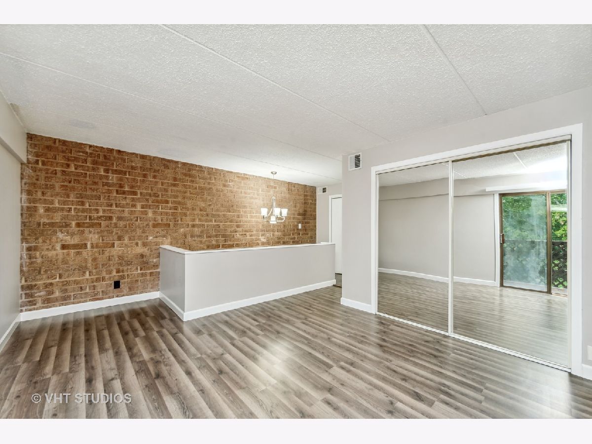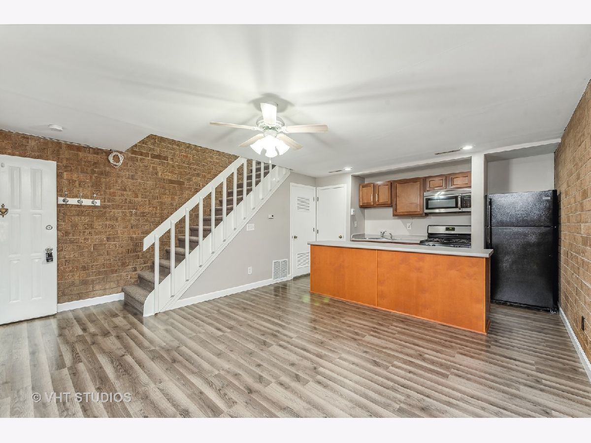 MULTIPLE OFFERS Highest and best due 5:00 PM October 20. Beautiful updated 1 bedroom 1 bath two story townhome in Kennington Square located in the back of the 600 building with views of wooded nature space. No neighbors in your view from any windows or from your private outdoor court yard. Two story condo with brick accent walls, wood burning fireplace, in unit stacked washer/dryer, second floor bedroom with private balcony. Amazing 1064 square feet that is move in ready. Hip urban feel but in the burbs! Kitchen remodel and bath 2021. Appliances and mechanicals less than 10 years. Designated owner parking space. Investor friendly and quick close possible