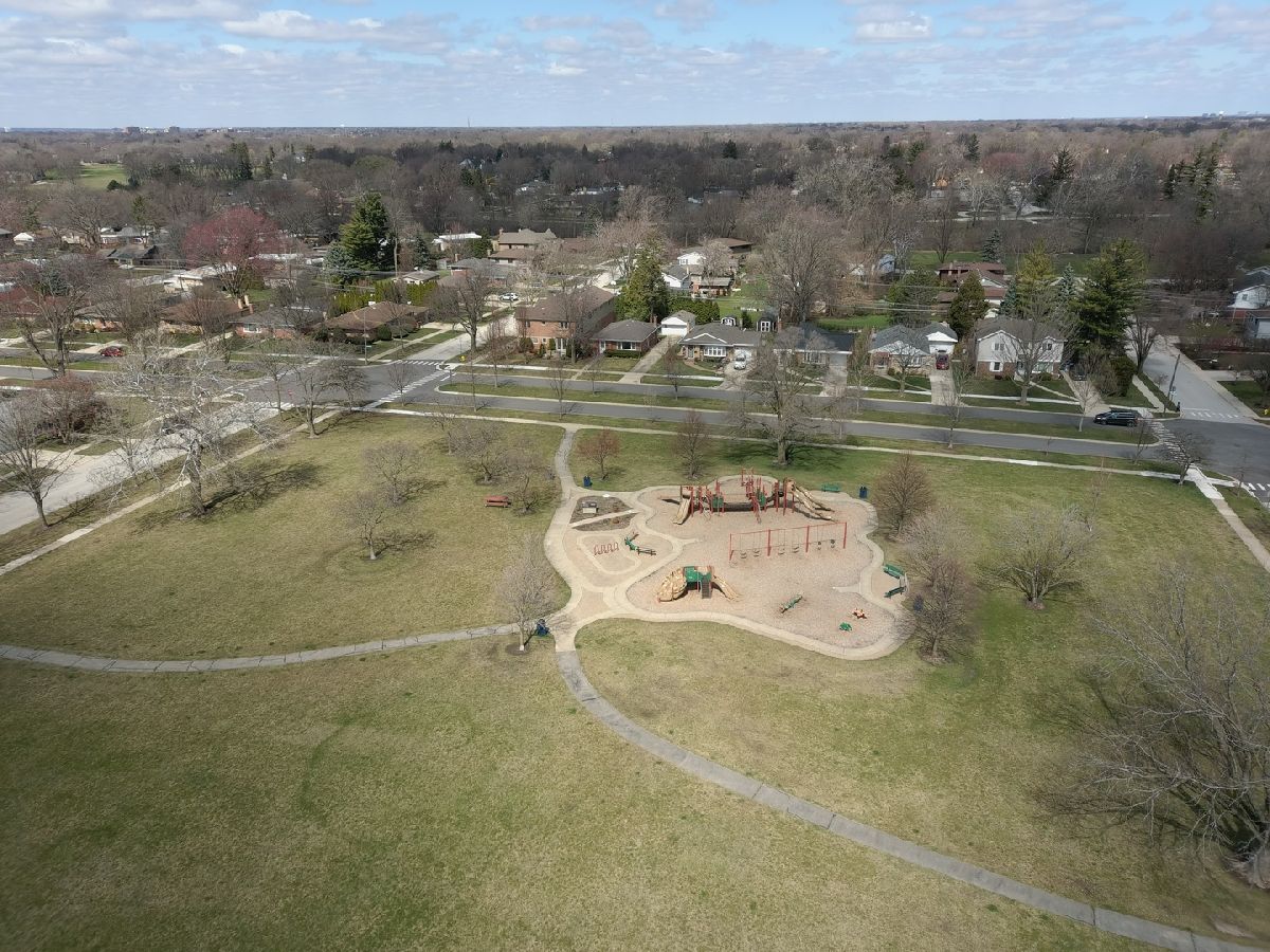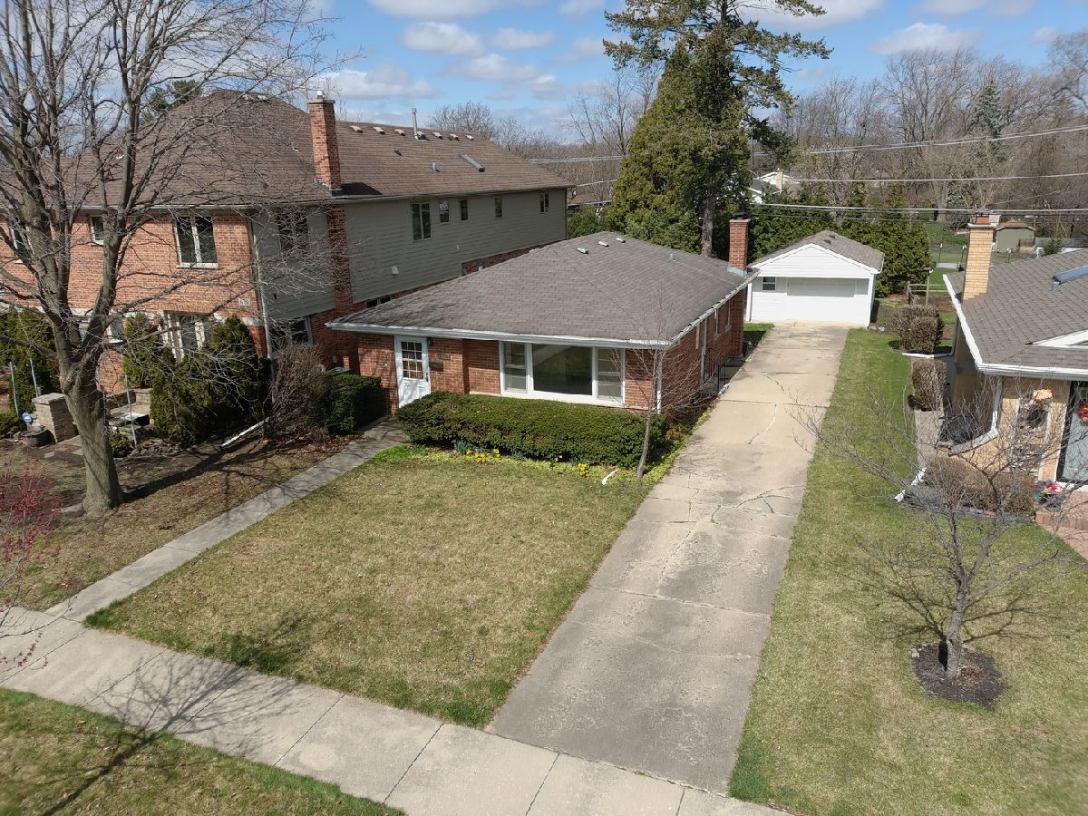 Brick ranch on 50x150 lot directly across from Sunset Park - playground and on boulevard street. Home being sold "as-is" although a solid red brick house offers hardwood floors, full basement with dry-walled finishes, overhead sewer includes sump pump/battery back up. Office room - guest bedroom in basement too. Garage is 1.5 detached - newly insulated interior walls and drywalled (just finished - taping next). Great starter - perfect for remodel resale - location to take on 2nd floor expansion in the future. Great location on boulevard street - 3 blocks to Mt Prospect Golf Course/Clubhouse restaurant, close enough to Metra station and downtown fun. Lions Park/Lincoln Middle/Prospect HS Schools.