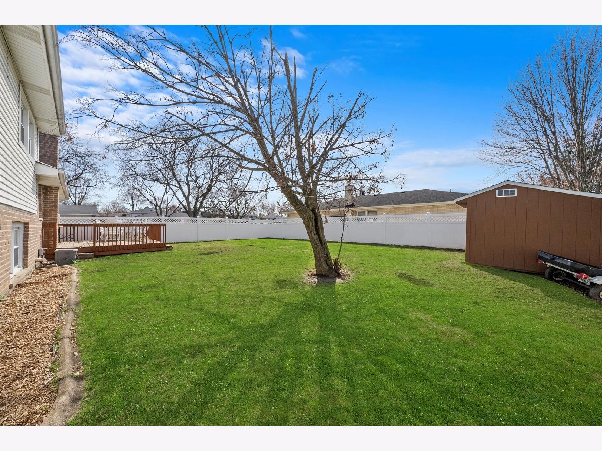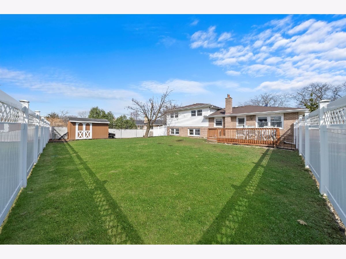 Nestled on a spacious corner lot, this inviting 3-bedroom, 2-bathroom home offers a perfect blend of comfort and style. Featuring separate living and dining areas with beautiful hardwood floors, the large front bay window fills the home with natural light. The kitchen remodeled in 2018 is a chef's dream, complete with custom Epoxy countertops and stainless steel appliances, making meal preparation a breeze. The primary bedroom has a new ceiling fan. The generous family room boasts built-in shelves and plantation shutters, new laminate flooring leveled with concrete and new carpet on stairs creating the ideal space for gatherings and relaxation. Additionally, the home offers a new waterproof sub-basement for extra storage. Step outside to enjoy the fully fenced (new in 2018 w/new post solar lamps in 2024) yard with a deck and shed (just repainted in 2024), perfect for outdoor entertaining. A concrete patio at the front of the home adds to the charm and curb appeal. The flag pole has a new rope and clips with new solar lamp and eagle. The A/C is updated with a new capacitator. A new drainage system was installed through a city offered program in 2021. The electrical panel was recently updated in 2024 to code along with a new hot water tank. 2 car garage has new springs and dolly. The fridge in the garage works and is staying. New outdoor lights on timer. Located in a top-rated school district and conveniently close to parks, shopping, and expressways, this home offers the ideal combination of comfort, convenience, and community.