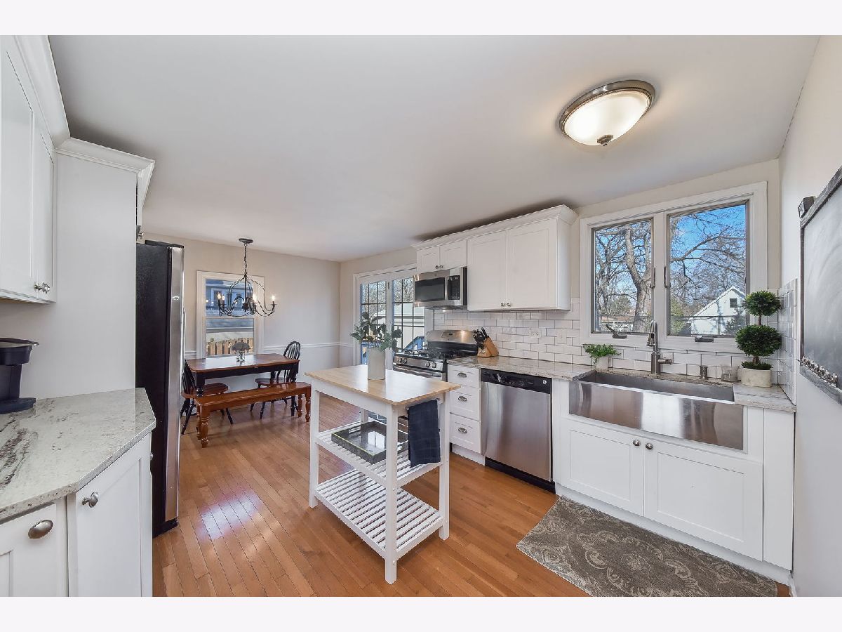 Enjoy downtown Wheaton living in this beautifully updated farmhouse-style home! Tastefully selected features throughout. This home includes an updated eat-in kitchen (2017) with new cabinets, granite countertops and subway tile backsplash, a charming formal dining room, an updated bathroom (2017), a spacious living room with picture window overlooking large front yard, and a family room with wood-burning fireplace. Gleaming hardwood floors on the first floor and carpet in the three bedrooms. Two bedrooms are located on the second floor and one bedroom is located on the first floor which can alternatively serve as the perfect home office. This property also boasts an extra large front and back yard, a beautiful back deck, a generous-size two car garage, and gorgeous landscaping including Limelight and Annabelle hydrangeas, Winter Gem boxwoods, and more. The home has a new furnace (2019), many new windows (2017), and a newer roof (2013). Laundry closet conveniently located on first floor. The home sits on a quiet street that is a short walk to Wheaton shops and restaurants, the College Avenue Metra station, Saturday's French Market, the Illinois Prairie Path, Mariano's, the library, Lowell Elementary School, and Wheaton College! All rooms have been freshly painted. Welcome home! (The home is broker owned.)