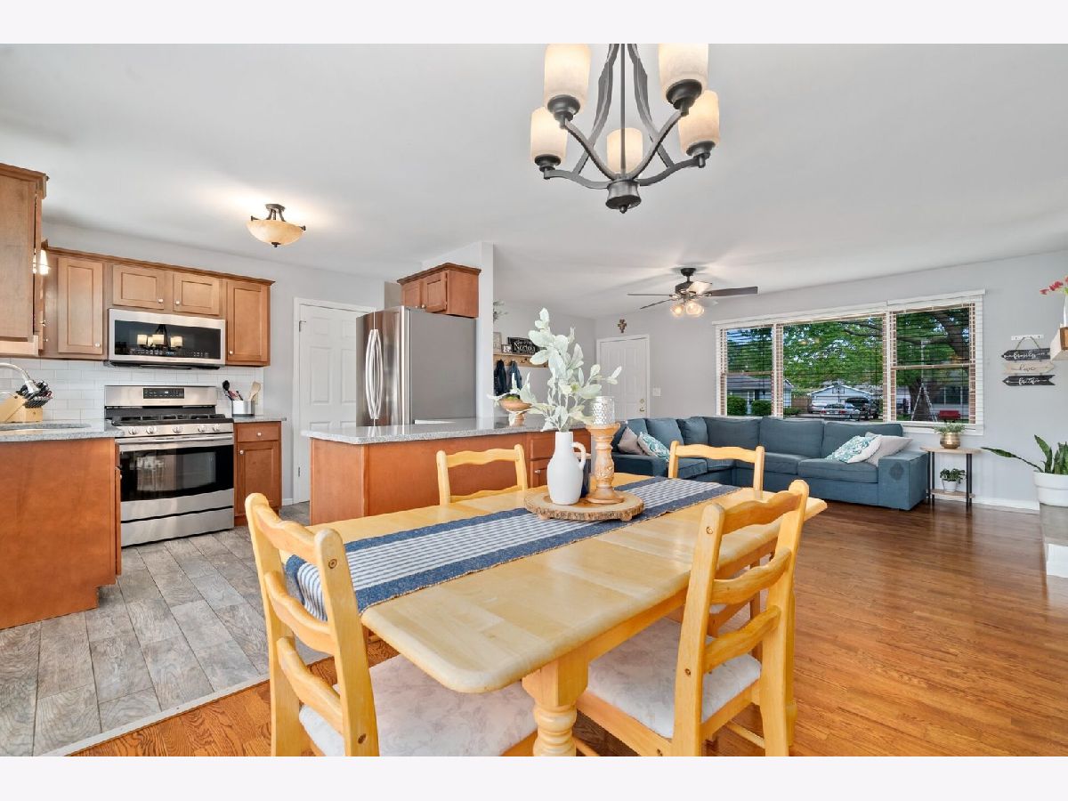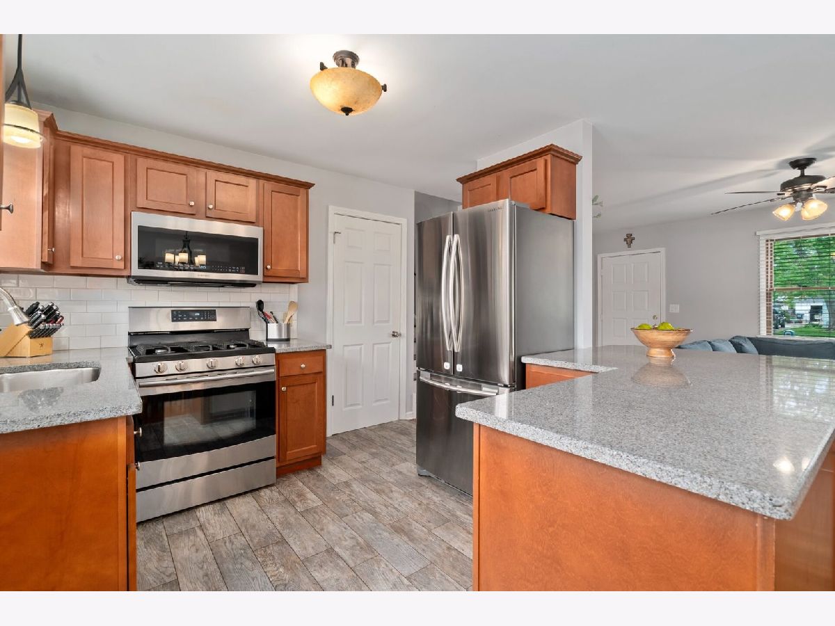 Absolutely Charming 3 Bedroom / 2 Bathroom Tri-Level located on a quiet tree lined street, offered for sale! Open floor plan includes a beautiful updated kitchen featuring newer maple cabinets, granite counter tops, and granite breakfast bar with subway tile back splash! Newer stainless steel (Samsung) appliances. Living room features built-in cabinets with new electric fireplace. Refinished oak hardwood flooring flows throughout the living & dining rooms and all the bedrooms. All newer light fixtures and ceiling fans. Updated ceramic tile bathrooms with new upgraded vanities and tops. Lower level offers additional family room with recessed lighting and bonus room that is perfect for an office or 4th bedroom! Newer ceramic flooring throughout lower level. Pella replacement windows. New roof in 2017! Huge fully fenced backyard with deck! Large 2 car detached garage. Located within a mile to the train, the New Lenox Commons, Library and walking trails! Desirable, quiet & mature setting! Low Taxes! Come see this home today, it will not disappoint!