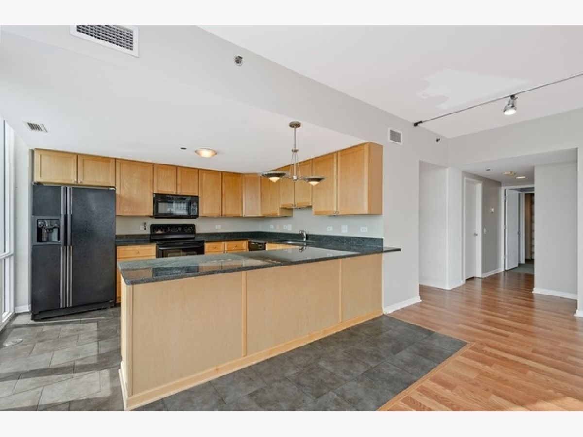 Enjoy dramatic southeast skyline city views from this prime corner Burnham Station South Loop location. This 2 bed/2 bath light filled condo has entry hall sided with closets which then opens to living/dining combo,east facing balcony for grilling,and open kitchen with breakfast bar,oak cabinets,granite countertops. Floor to ceiling windows throughout. Living/dining/kitchen windows replaced in 2019. Primary ensuite bedroom with walk in closet. 2nd bedroom and 2nd full bath. In unit w/d. Extra assigned storage cage. Deeded parking space #69 $20,000 extra. Just 3 blocks south of Roosevelt Rd shopping dining and a short walk to Marianos and Cottontail Park. A quiet oasis in the popular,vibrant South Loop!